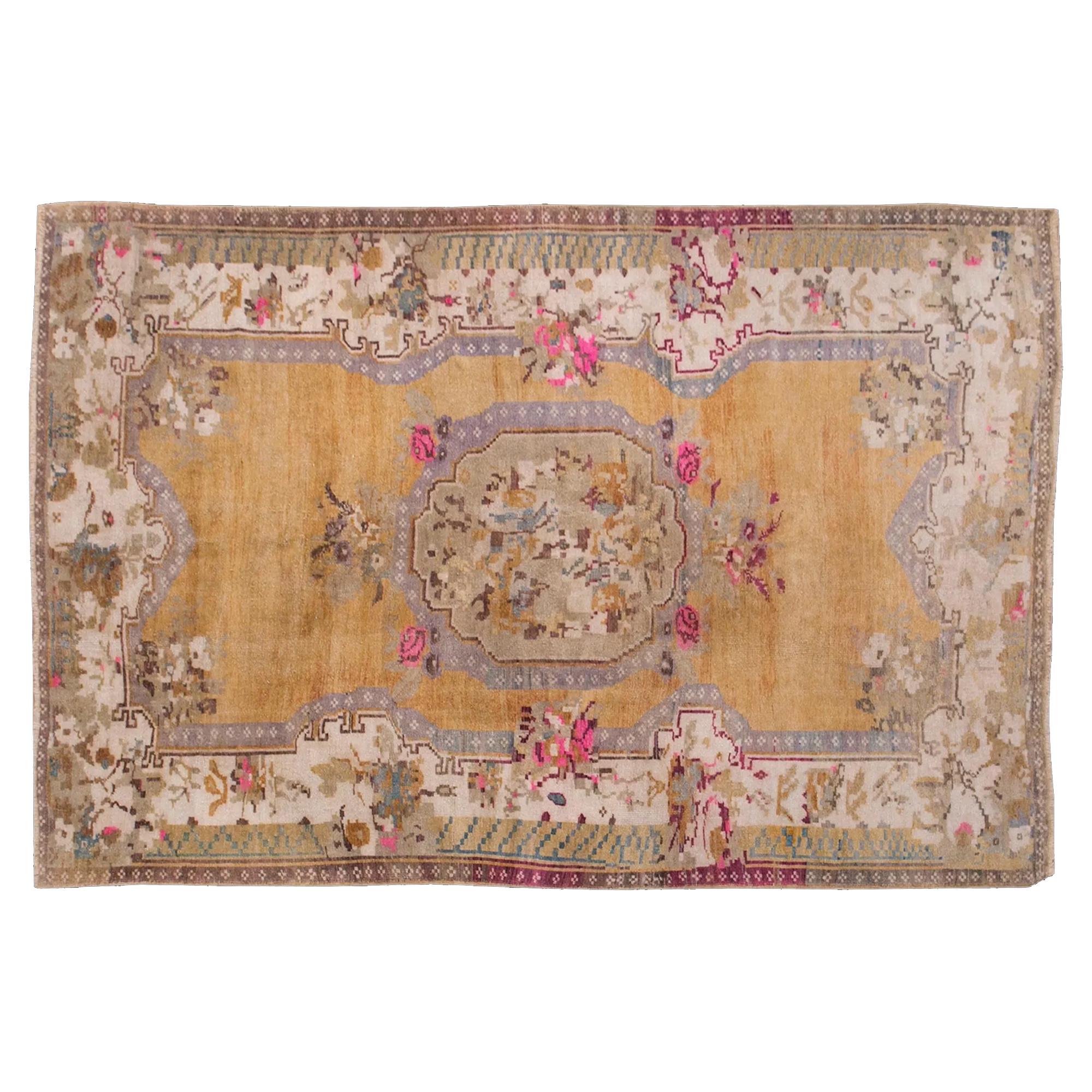 Vintage and Nomadic Turkish Oushak Rug, Interior Design, Decorative Rug, Interior Design Rug