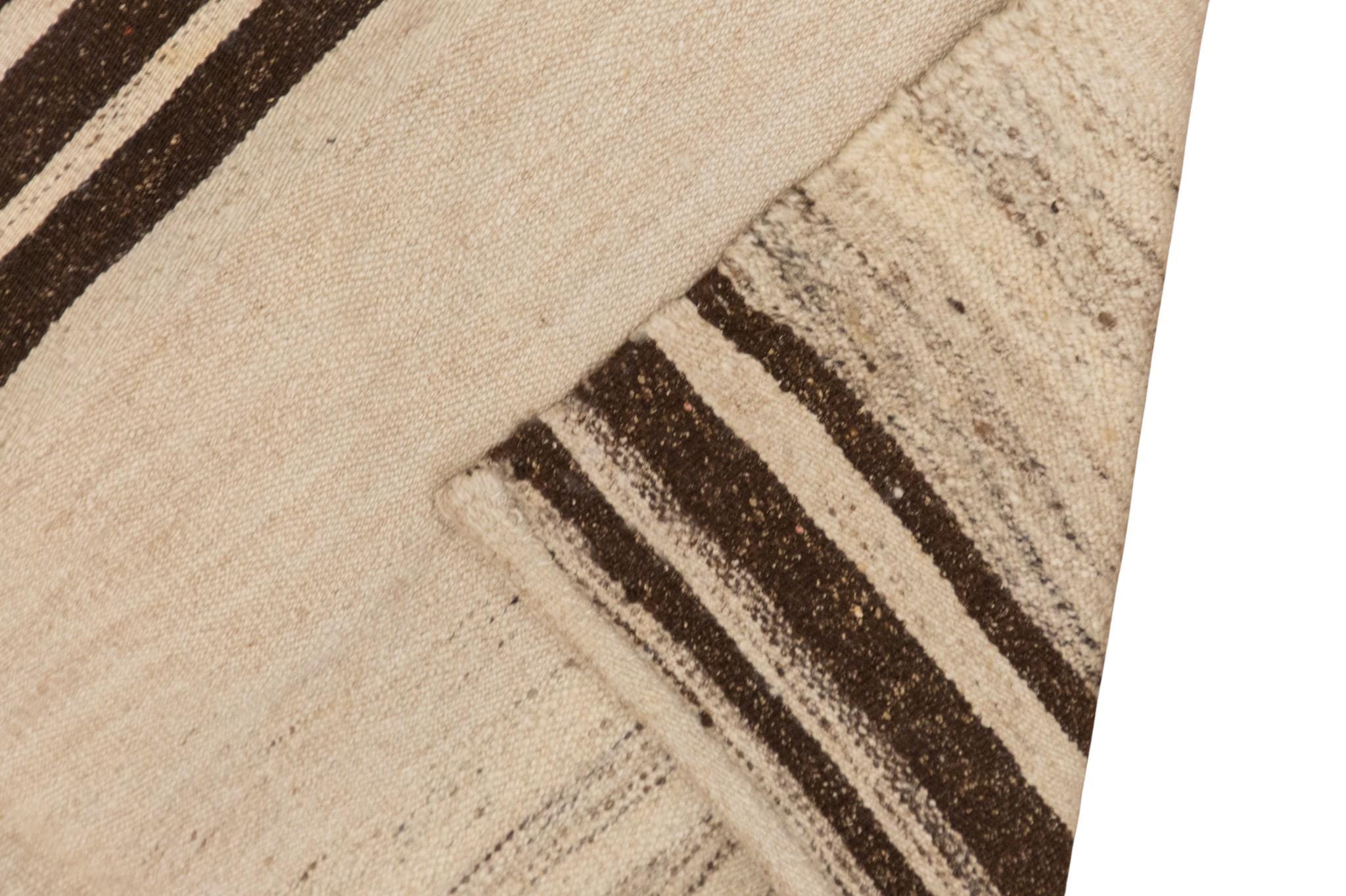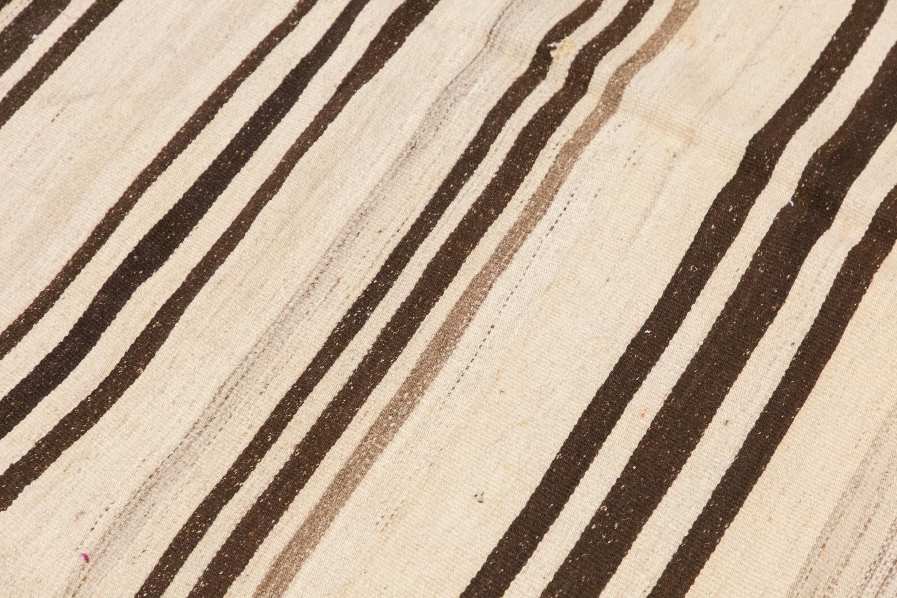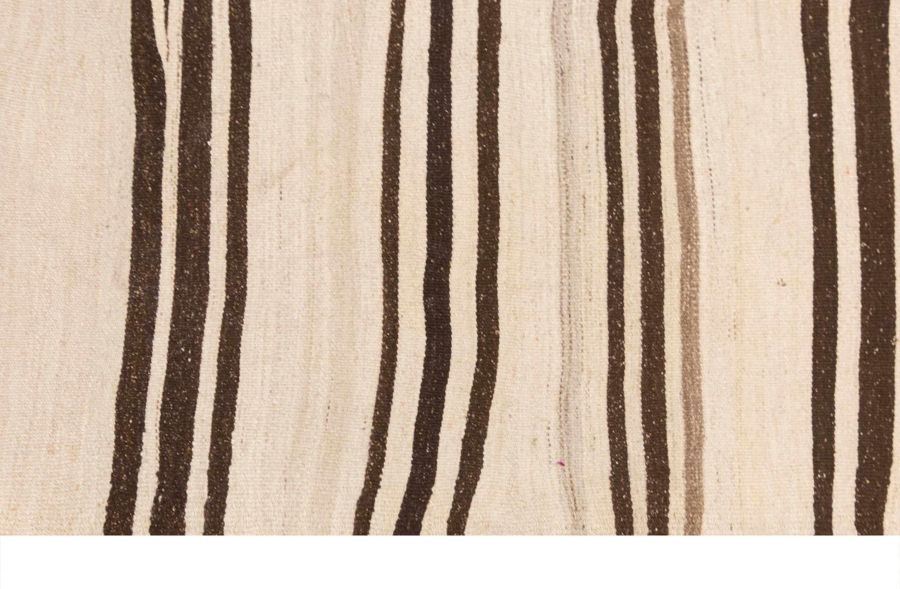 ✨ A stunning 60+ year-old handmade Turkish Kilim rug, crafted in the 1960s using 100% organic cotton and naturally dyed with plant-based pigments. This authentic Anatolian flatweave features calm, earthy tones and minimalist stripes — a perfect blend of vintage soul and modern simplicity. Professionally cleaned and ready to use.