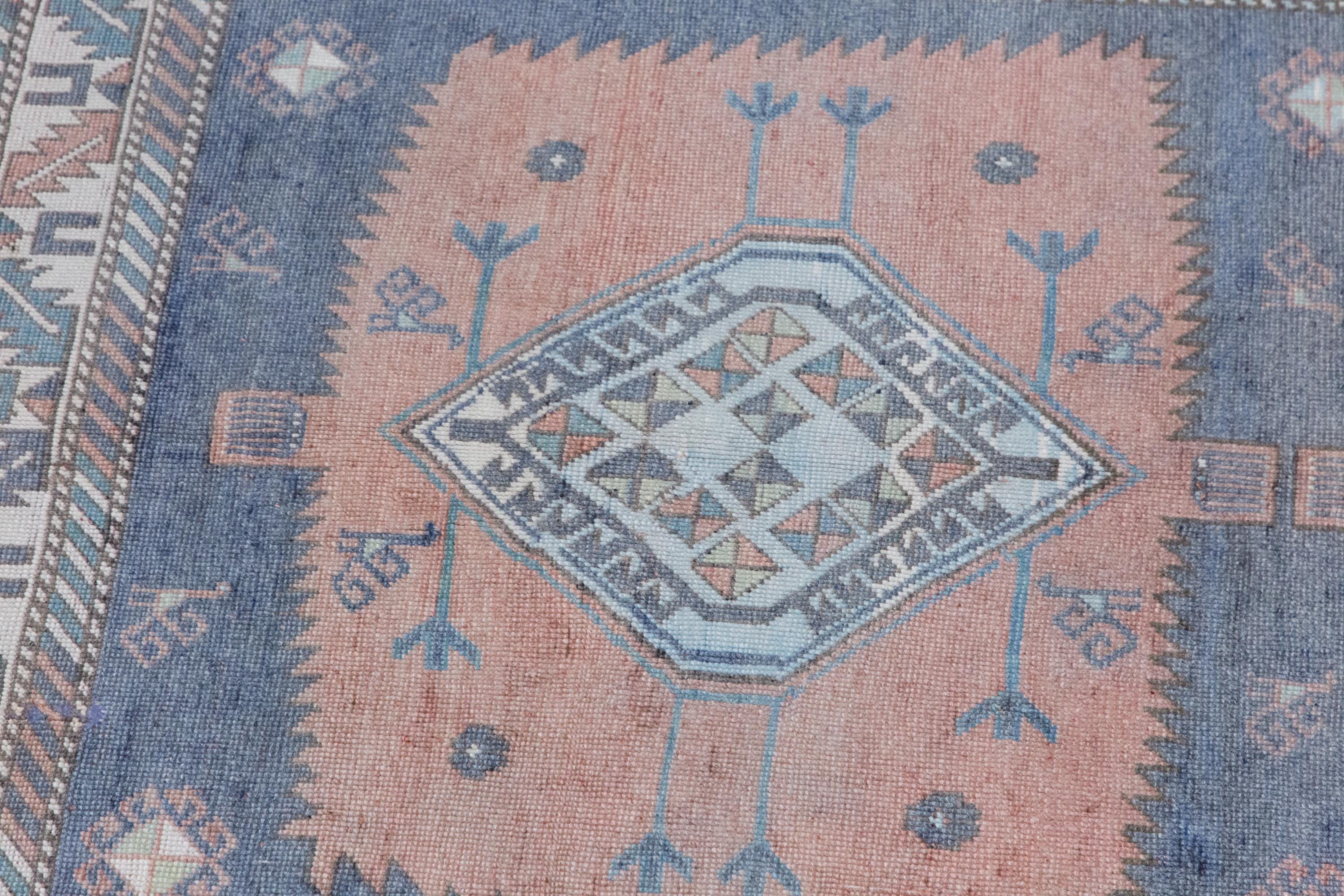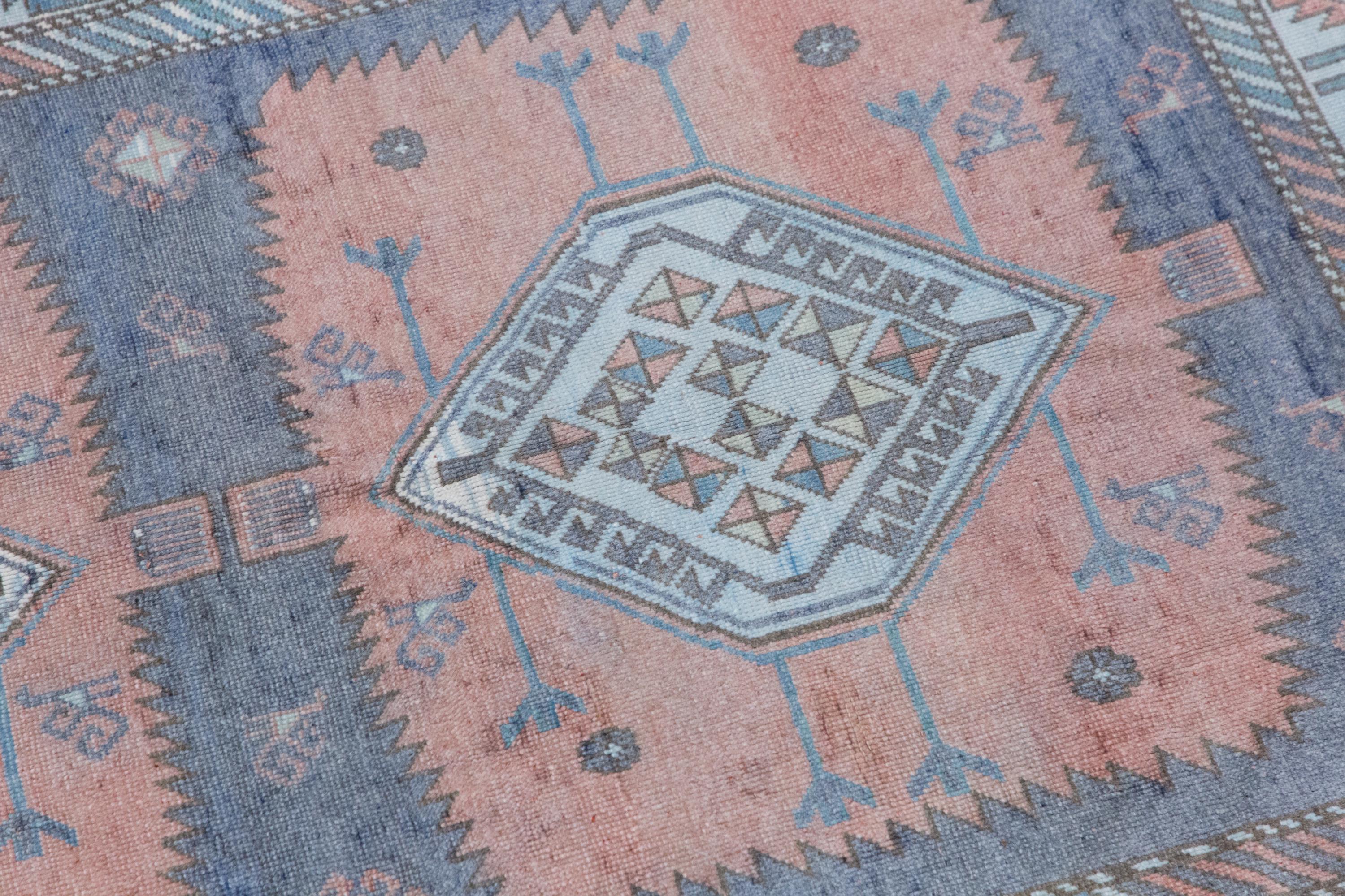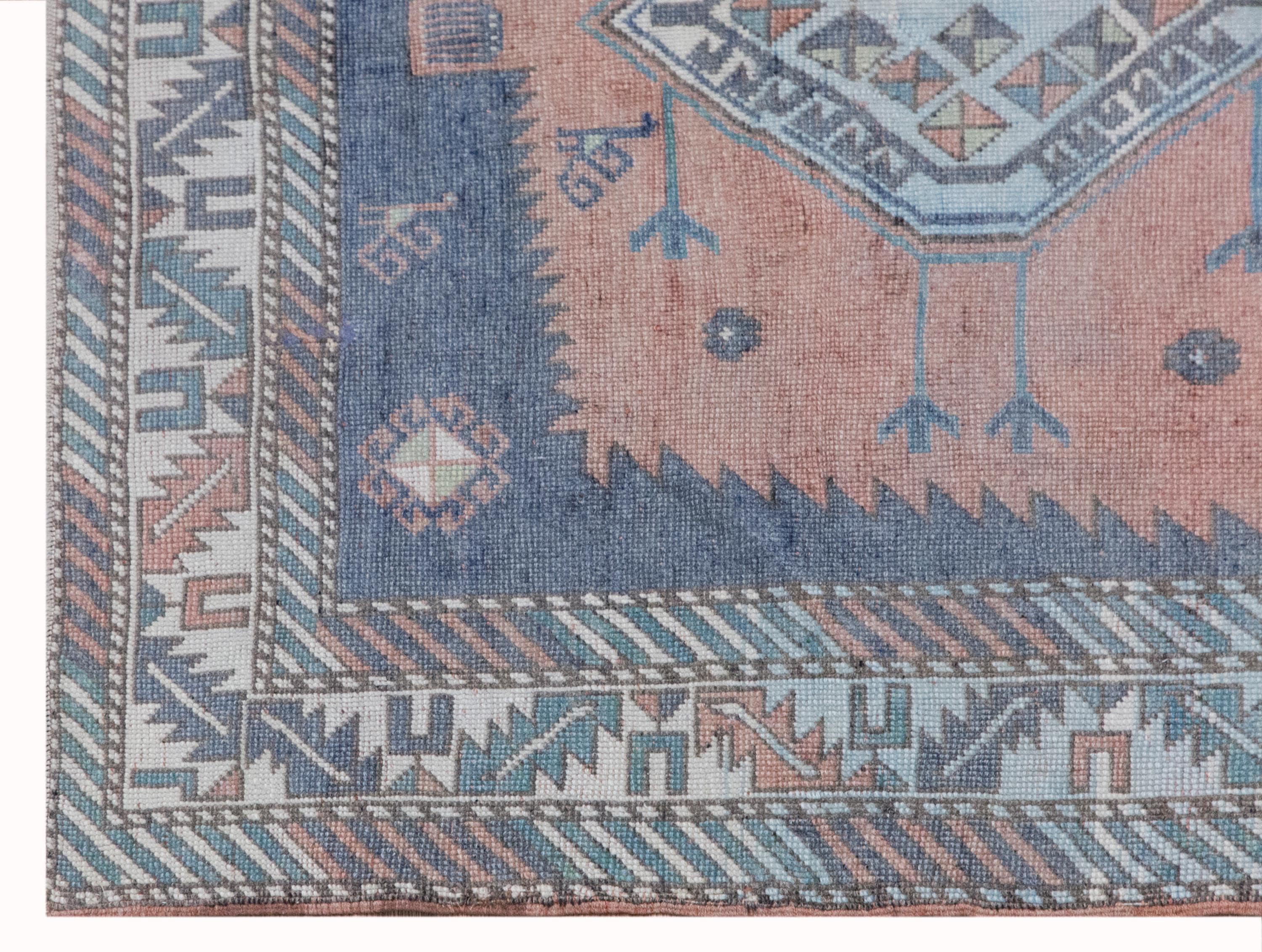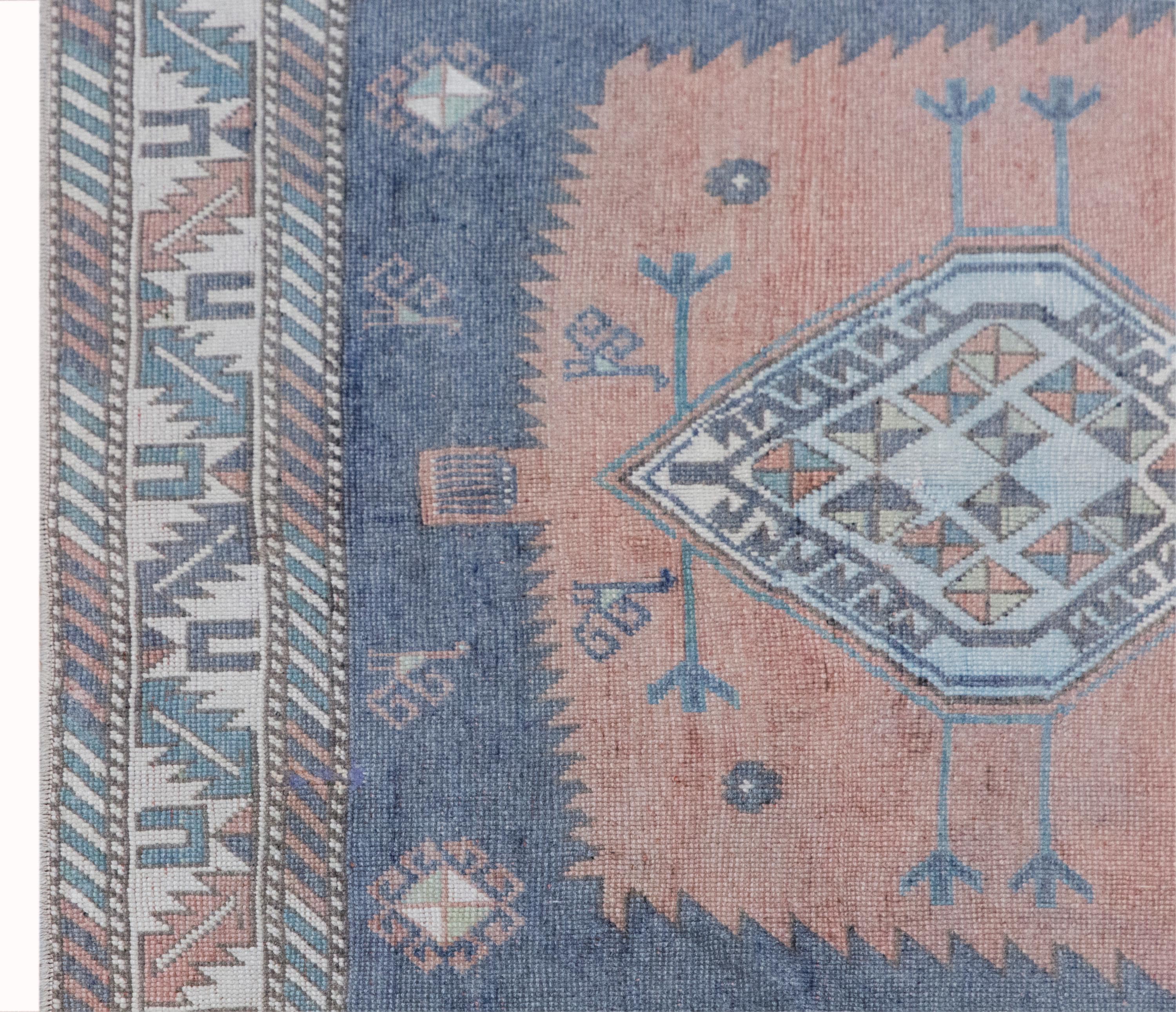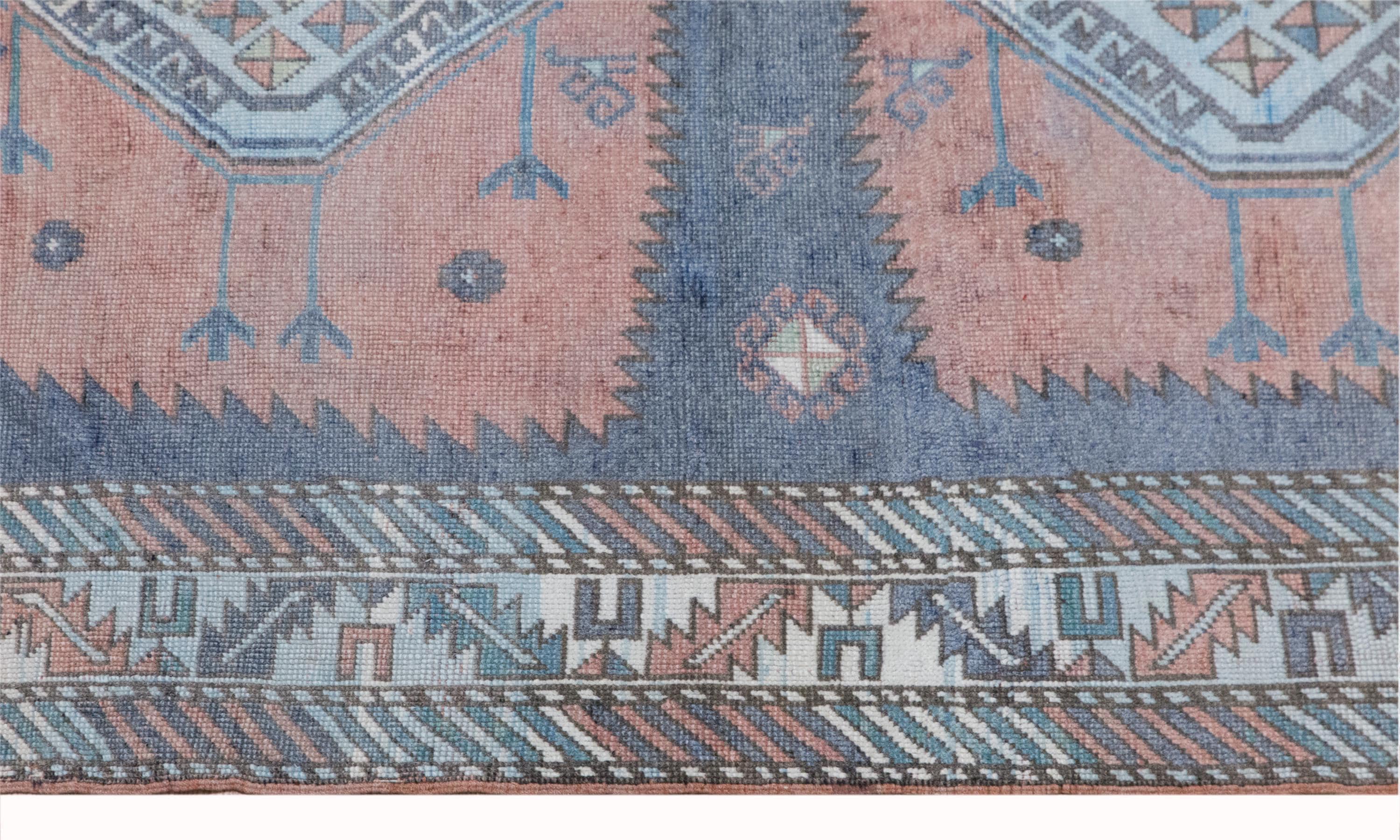 Its softly aged, muted tones and delicate geometric patterns reflect the authentic character of classic Oushak rugs. Originally made for traditional homes, this piece now brings warmth, elegance, and a refined vintage touch into modern interiors.
