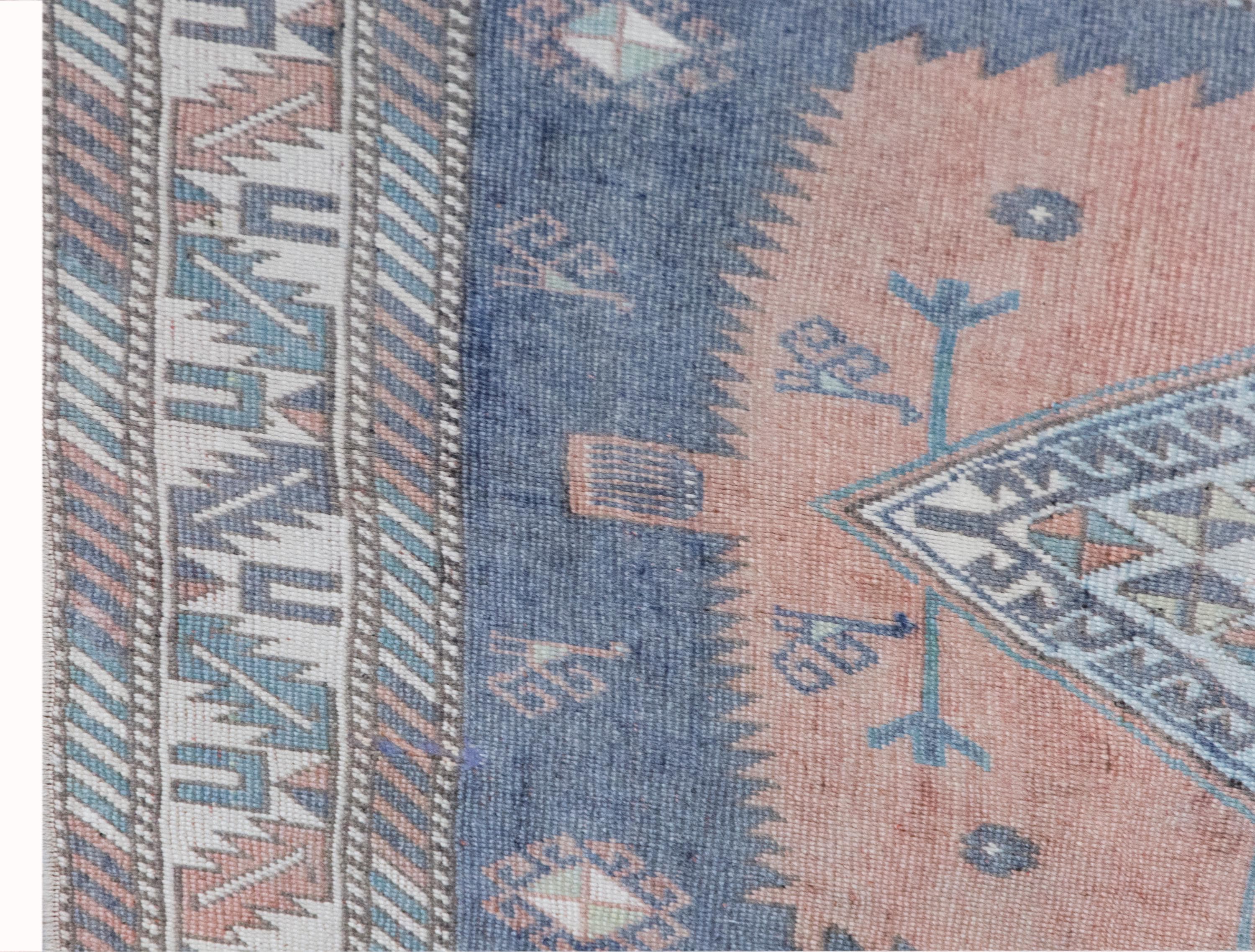 This elegant vintage Oushak rug was handwoven in the 1960s by skilled Anatolian artisans using traditional weaving methods passed down through generations. Crafted from hand-spun wool and dyed with natural plant-based pigments, it carries a strong sense of heritage, craftsmanship, and timeless design.