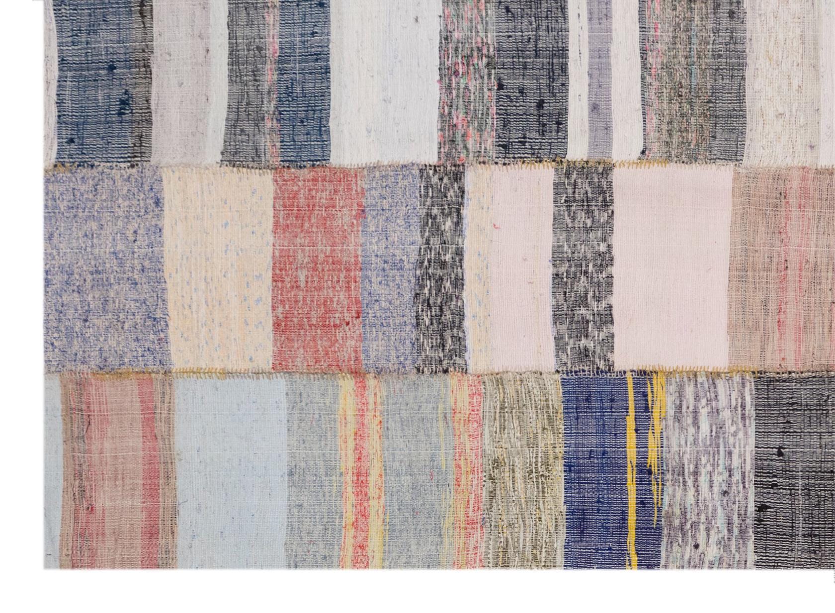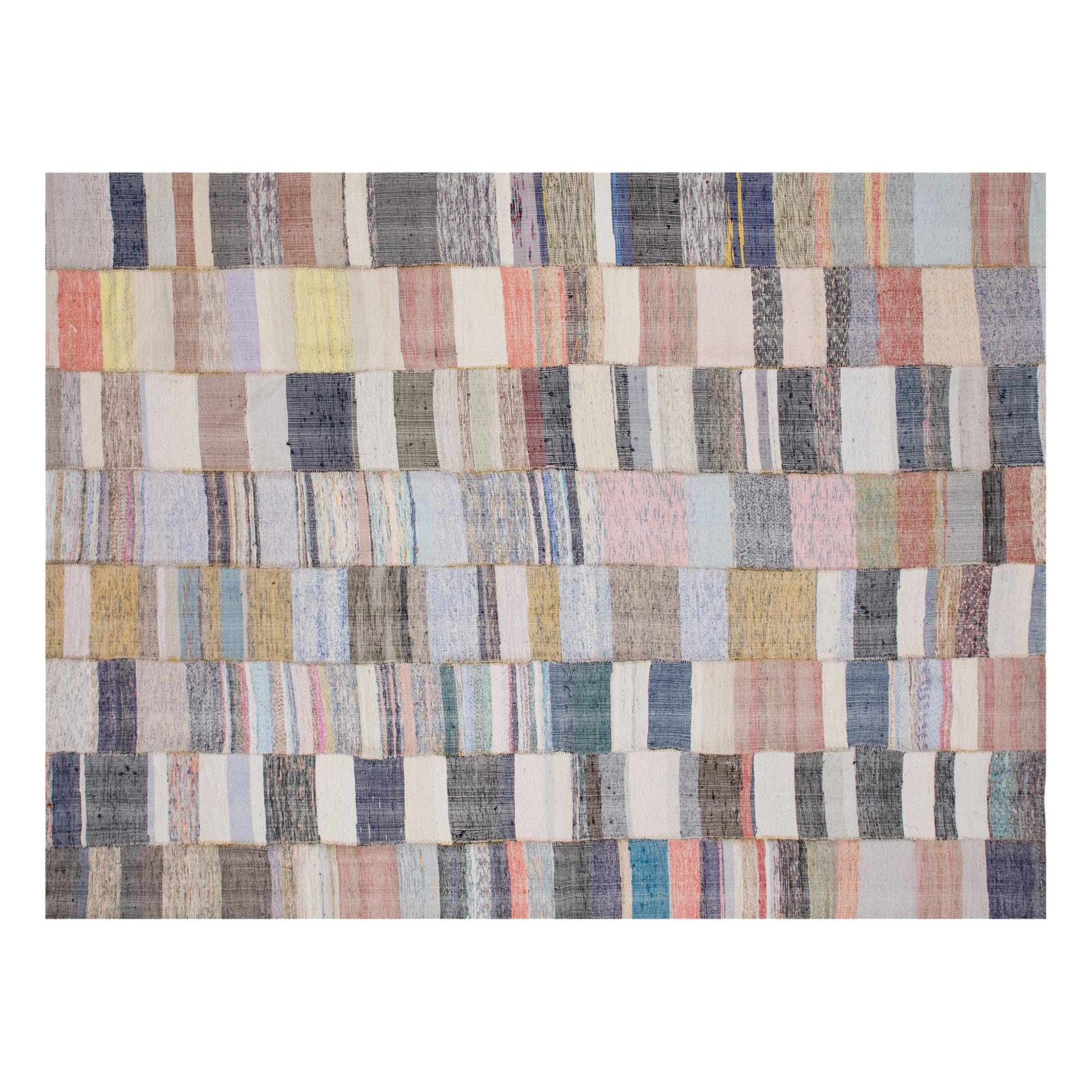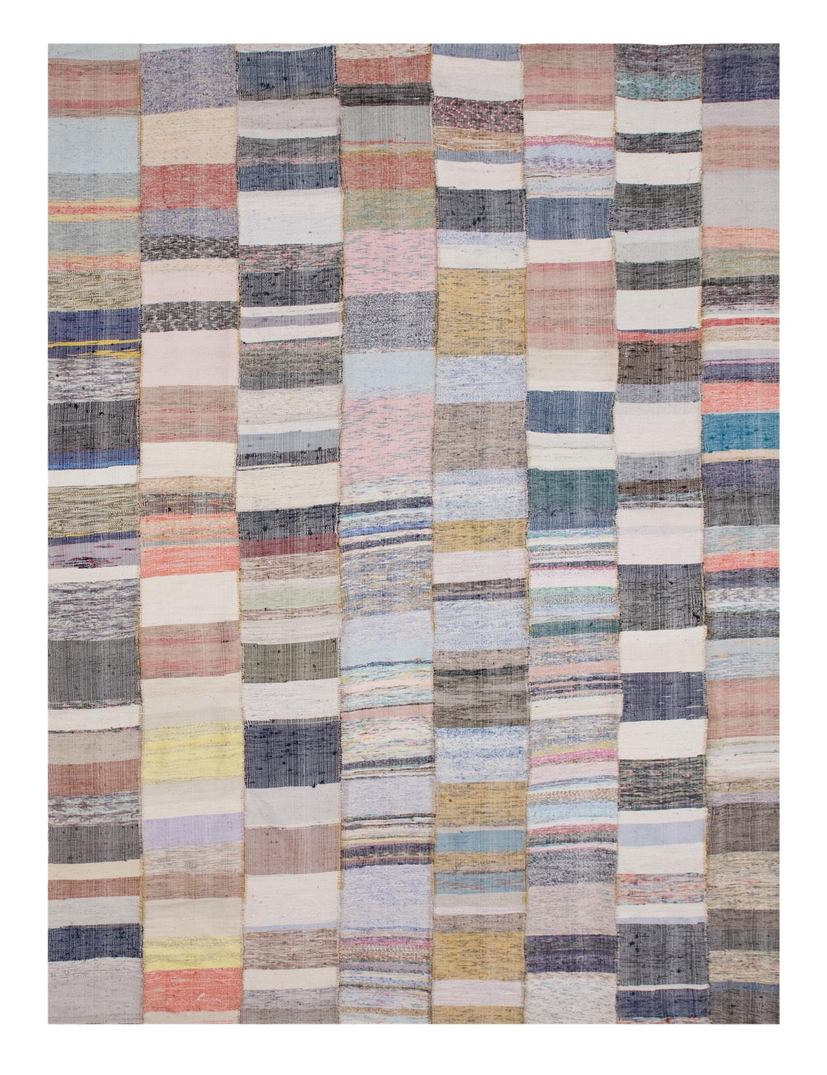 ✨ A rare 60+ year-old handmade Turkish Kilim, crafted in the 1960s from 100% organic cotton and naturally dyed with plant-based pigments. Its neutral earthy tones and minimalist stripes make it a timeless centerpiece for living rooms, dining areas, or any large space. Professionally cleaned and ready to use.