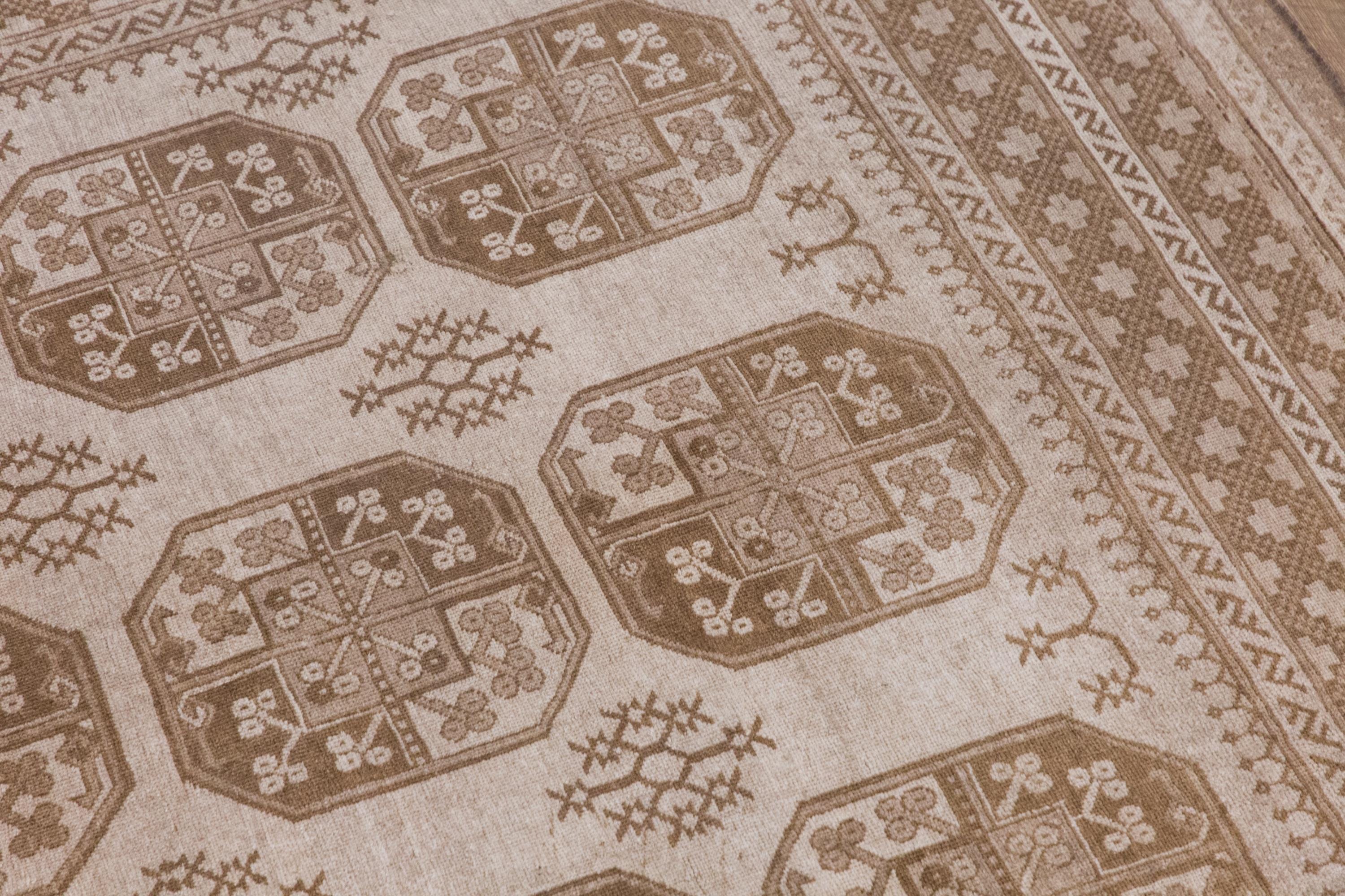 • Elegant faded Oushak motifs with soft antique patina