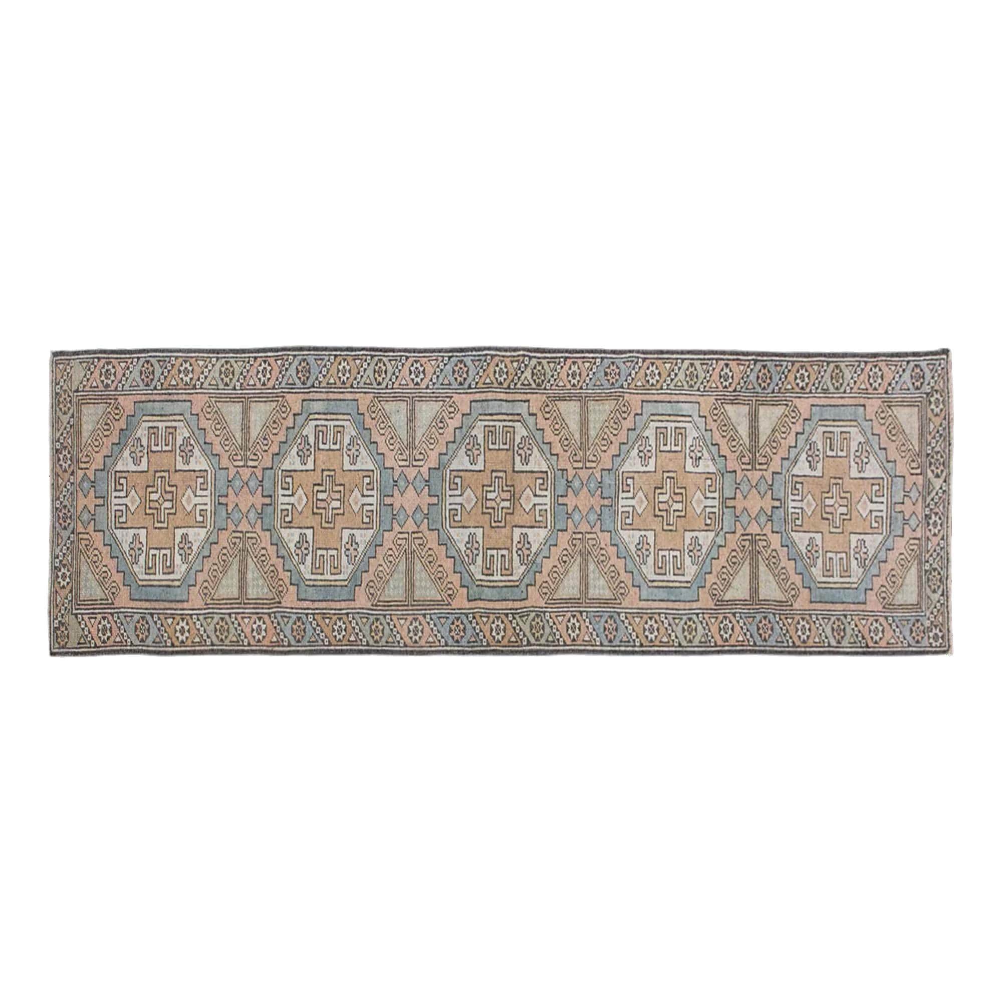 This beautiful vintage Oushak runner rug was handwoven in the 1960s in the heart of Anatolia using organic wool and natural plant-based dyes. Known for its soft muted tones and minimalist elegance, this piece is ideal for hallways, kitchens, entryways, or narrow living spaces.