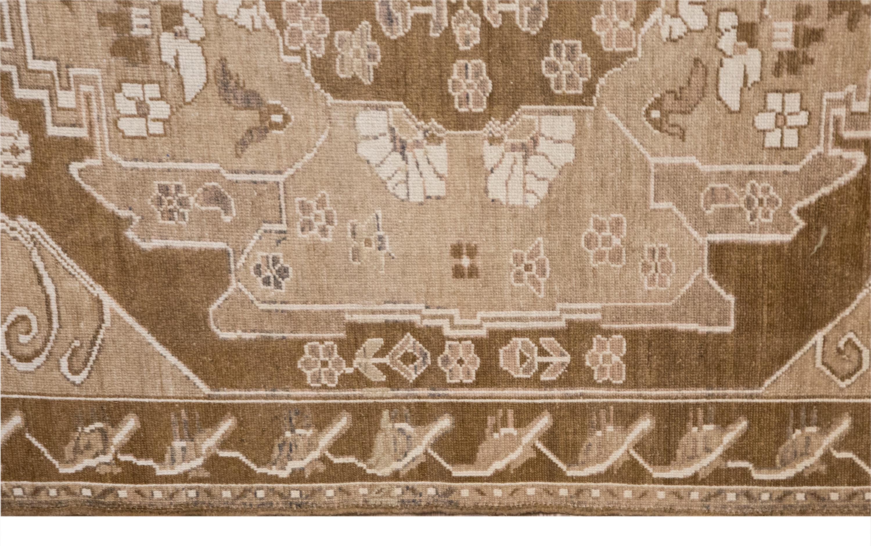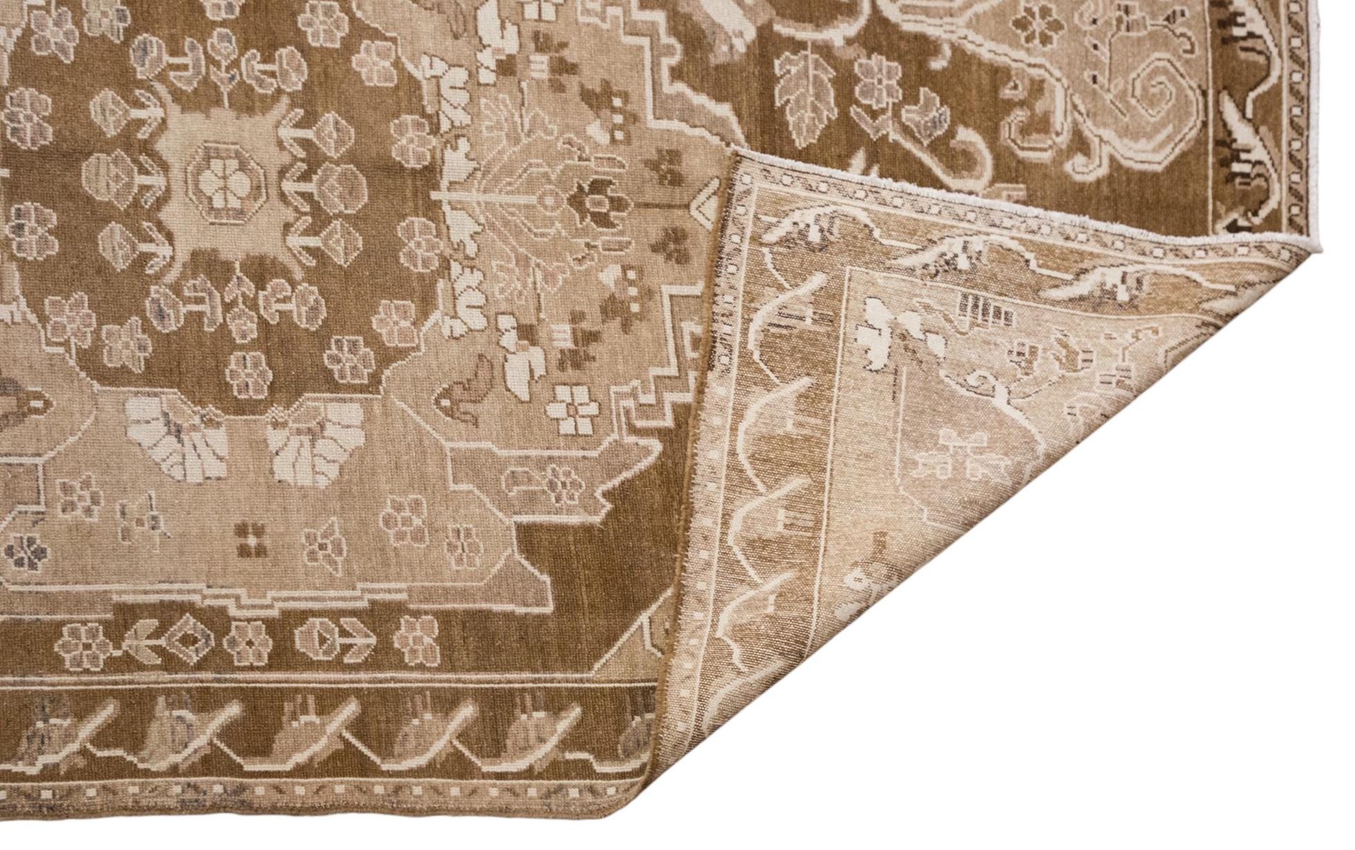 Woven over six decades ago by Anatolian artisans, this Oushak rug reflects authentic Turkish craftsmanship and traditional village artistry. Its generous size makes it perfect for living rooms, dining areas, or layered boho interiors.
