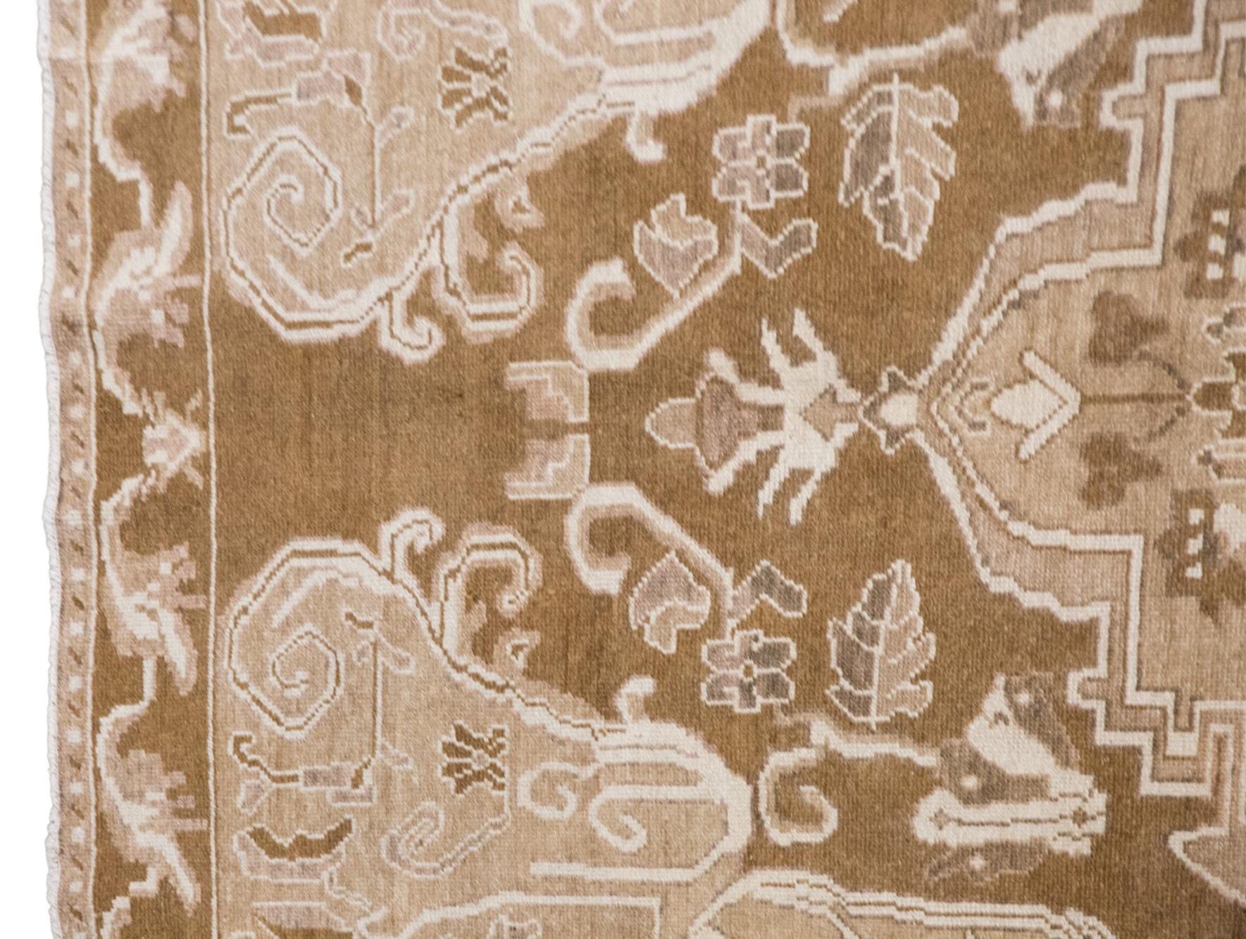 A stunning vintage Turkish Oushak rug with soft muted tones, intricate handwoven patterns, and authentic artisan craftsmanship—professionally washed & ready for your home.