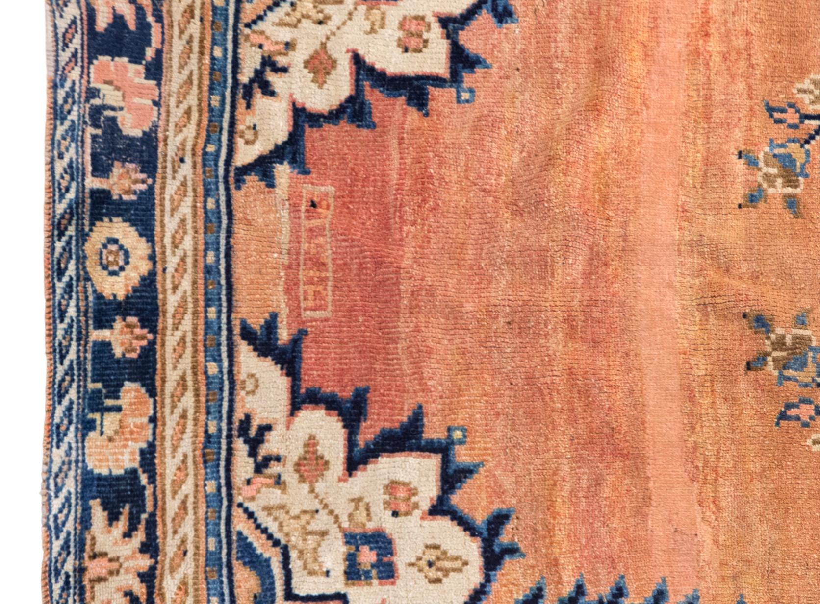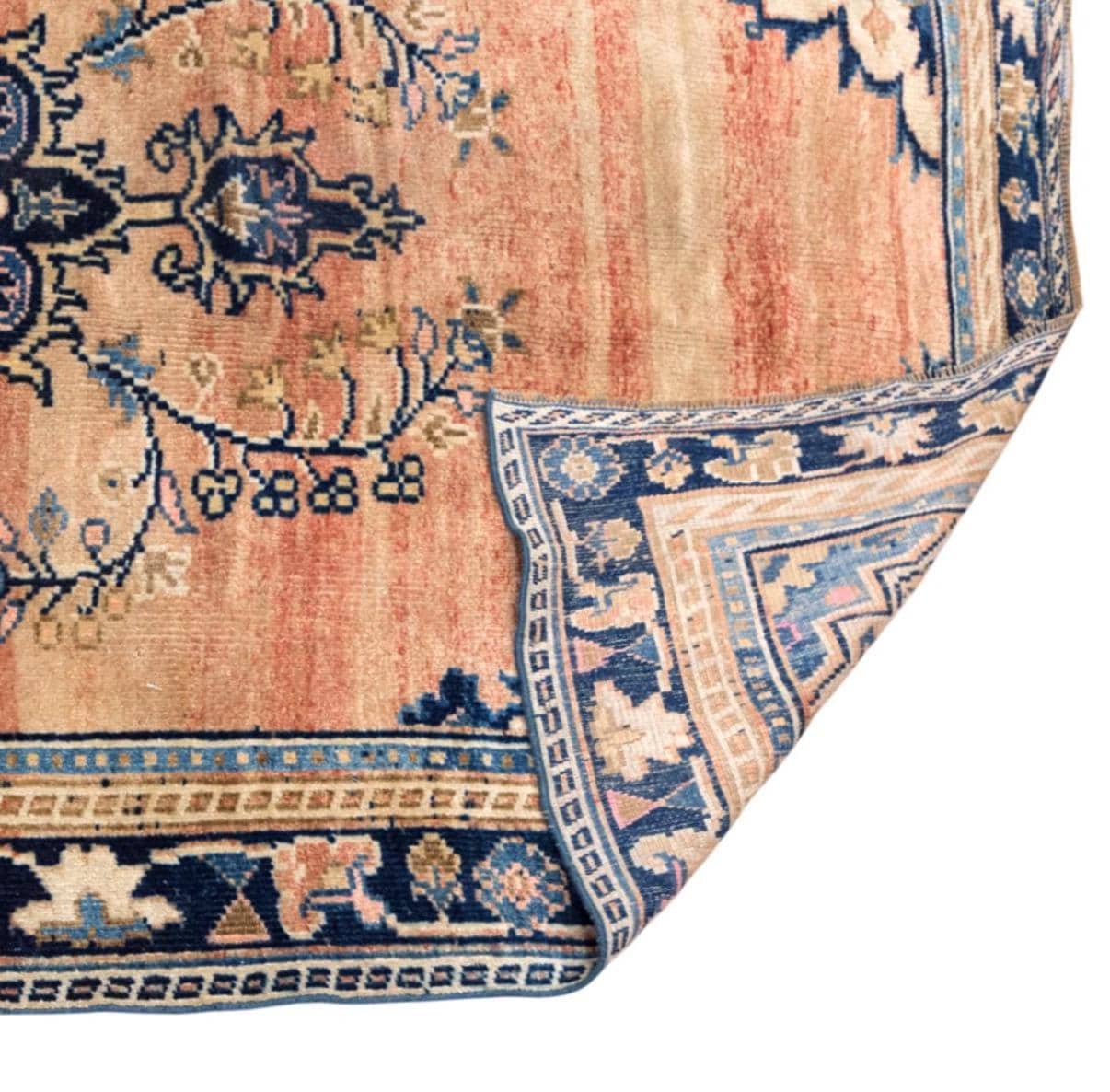 This vintage Oushak rug, woven over six decades ago, reflects the heritage of Turkish village craftsmanship. Its large, soft design makes it perfect for living rooms, dining areas, or layered boho interiors, blending tradition with timeless décor.