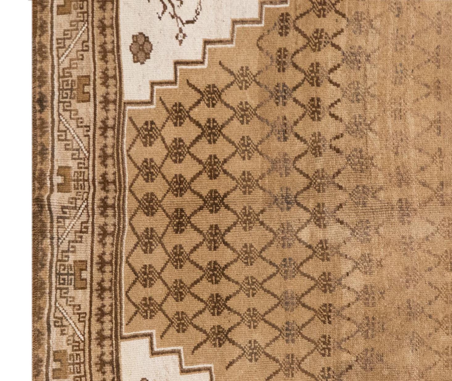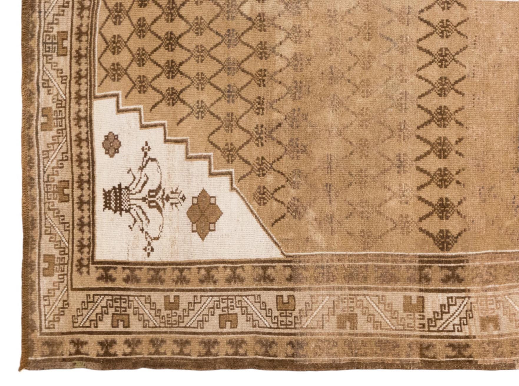Woven over six decades ago, this Oushak rug embodies authentic Turkish craftsmanship and traditional village artistry. Its generous size makes it ideal for living rooms, dining areas, or layered boho interiors.