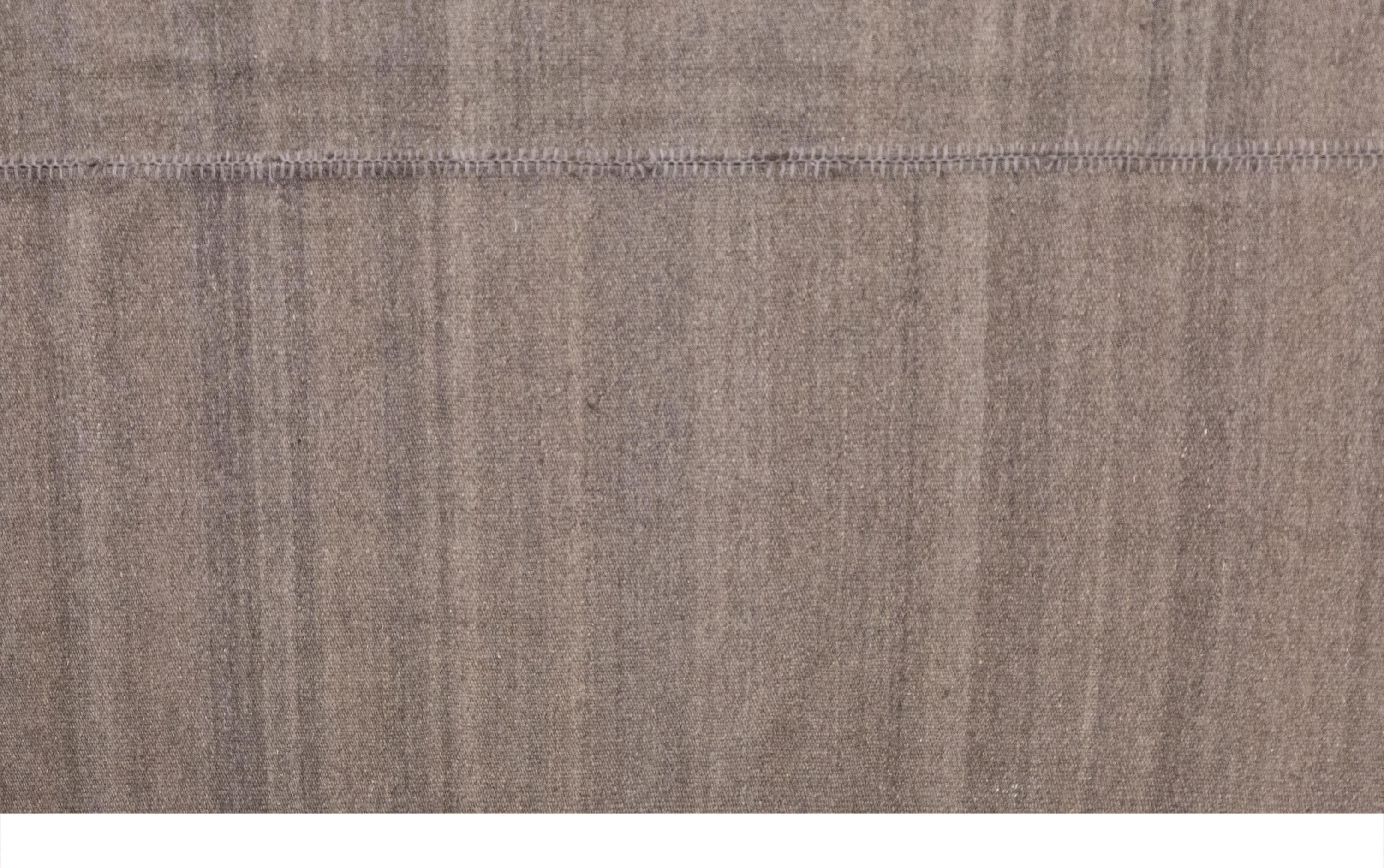A 60+ years old handwoven Turkish Kilim rug with muted stripes, expertly crafted from goat hair in Anatolian villages. Professionally washed and ready to use, its minimalist design brings elegance and warmth to any space.