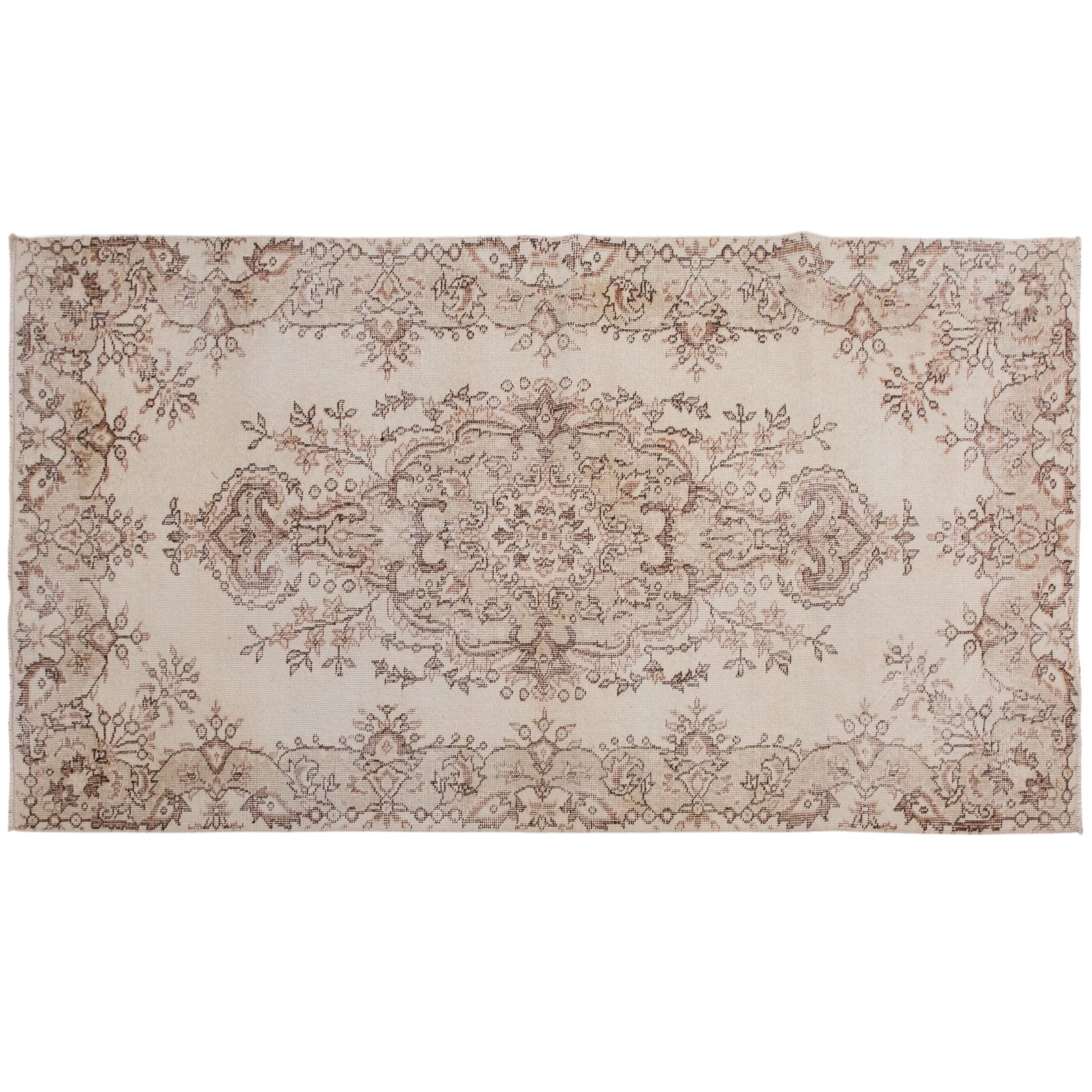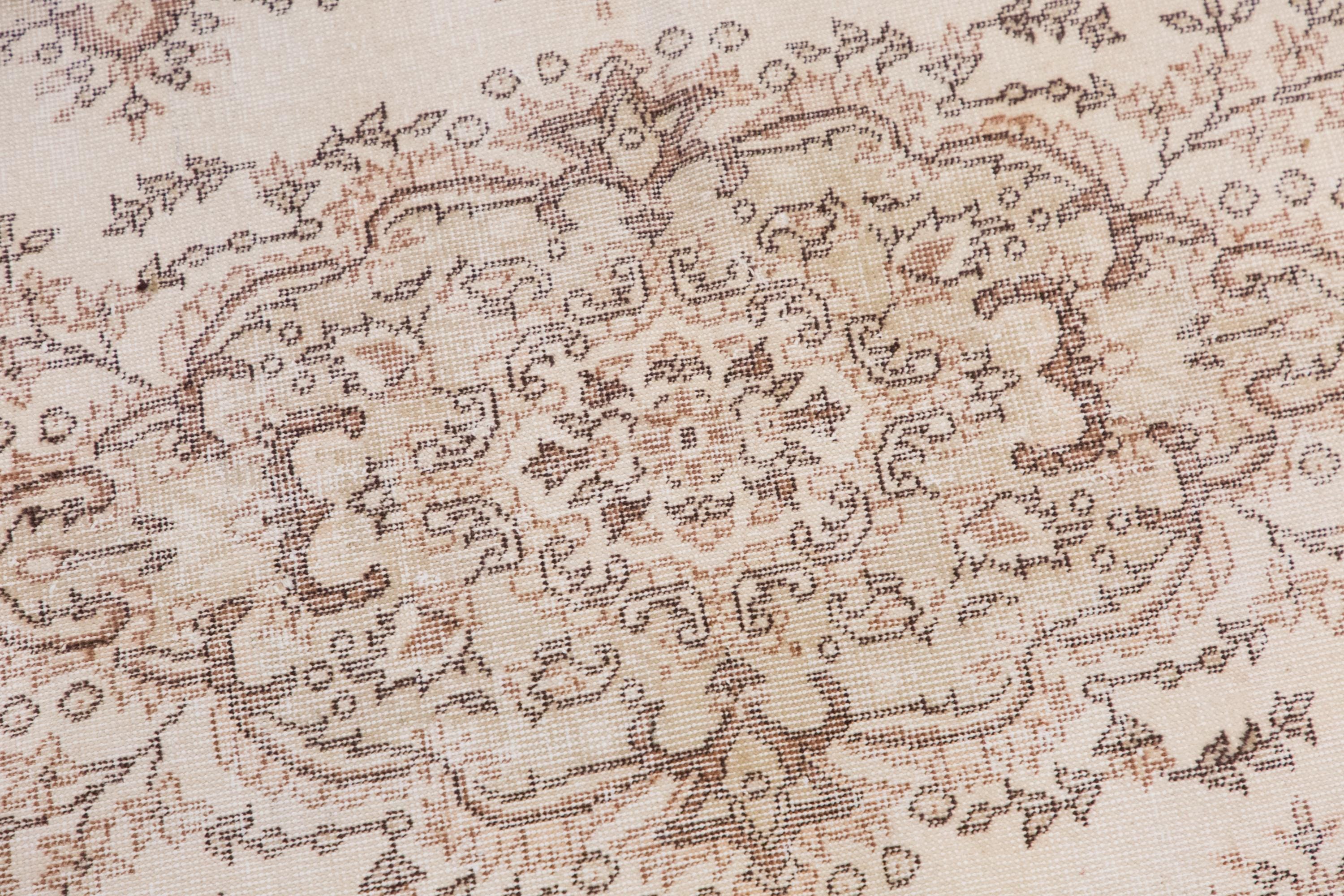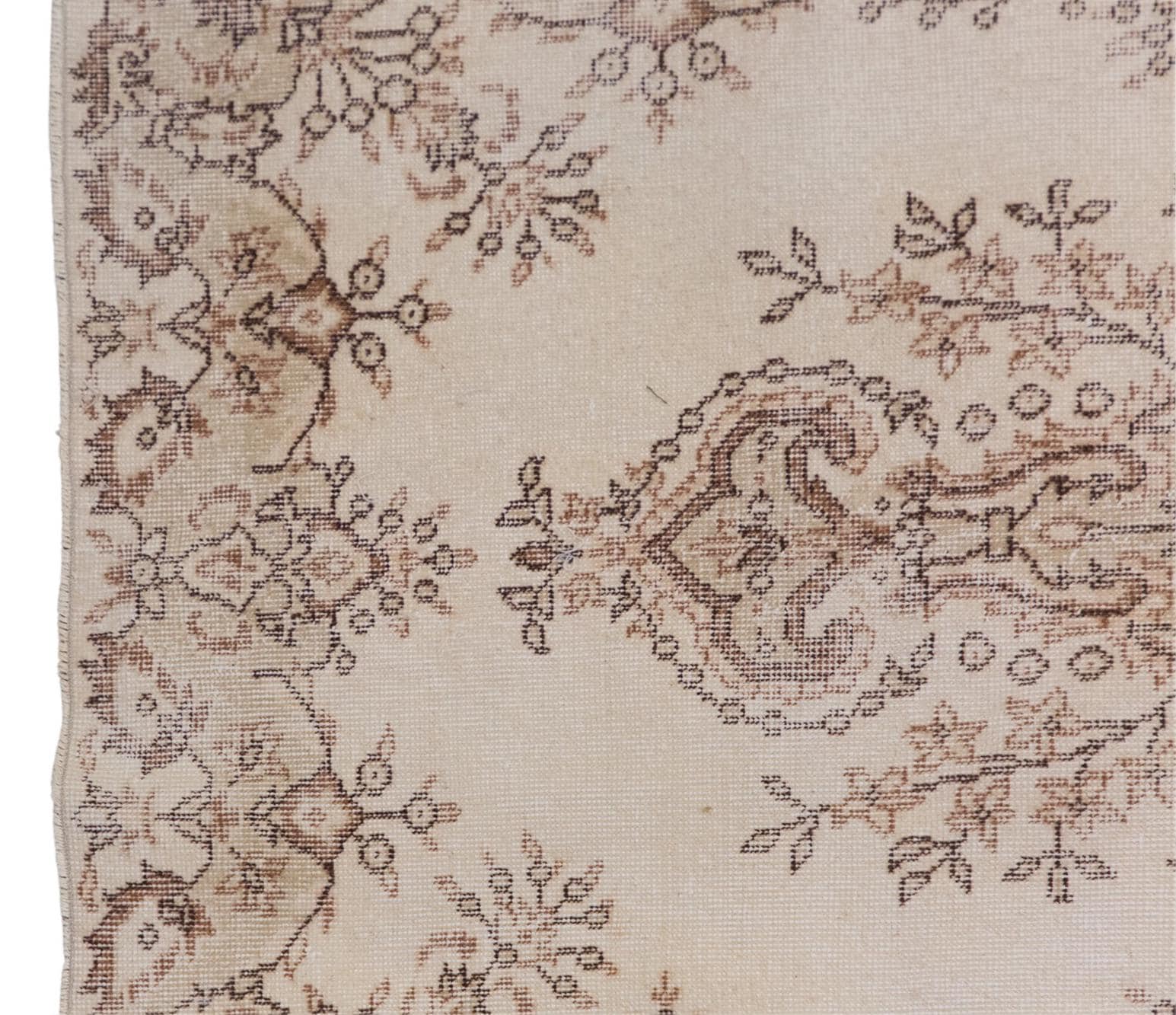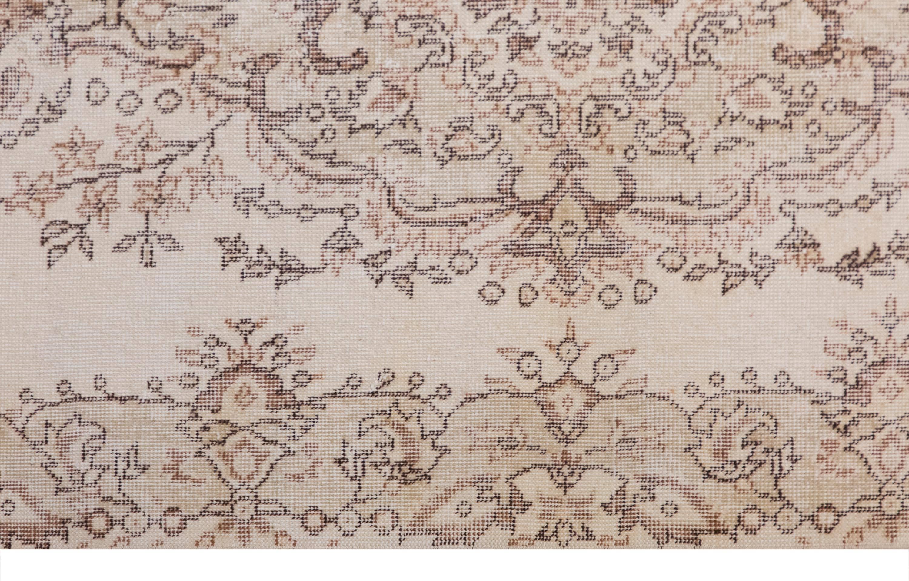 This beautiful handwoven wool rug was crafted in the 1960s by nomadic Turkish artisans. Made from 100% hand-spun wool and naturally dyed with plant-based pigments, it reflects decades of tradition and craftsmanship. Its muted tones and traditional Oushak motifs bring warmth, texture, and timeless character to any room.