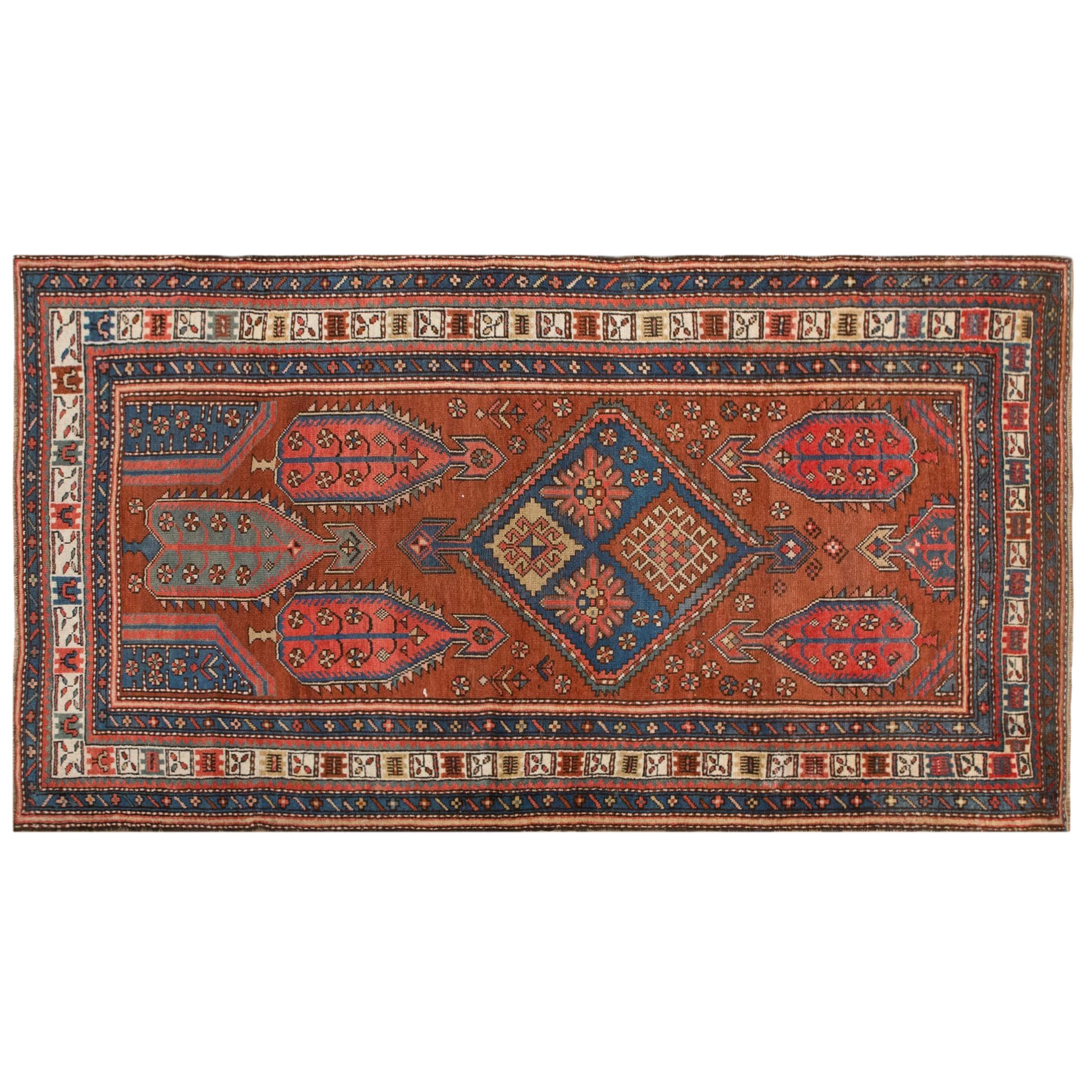 This beautiful handwoven wool rug was created in the 1920s by nomadic Turkish artisans. Made from 100% hand-spun wool and naturally dyed with plant-based pigments, it reflects decades of tradition and craftsmanship. The muted earth tones and bohemian motifs bring warmth, texture, and a timeless story to any space.