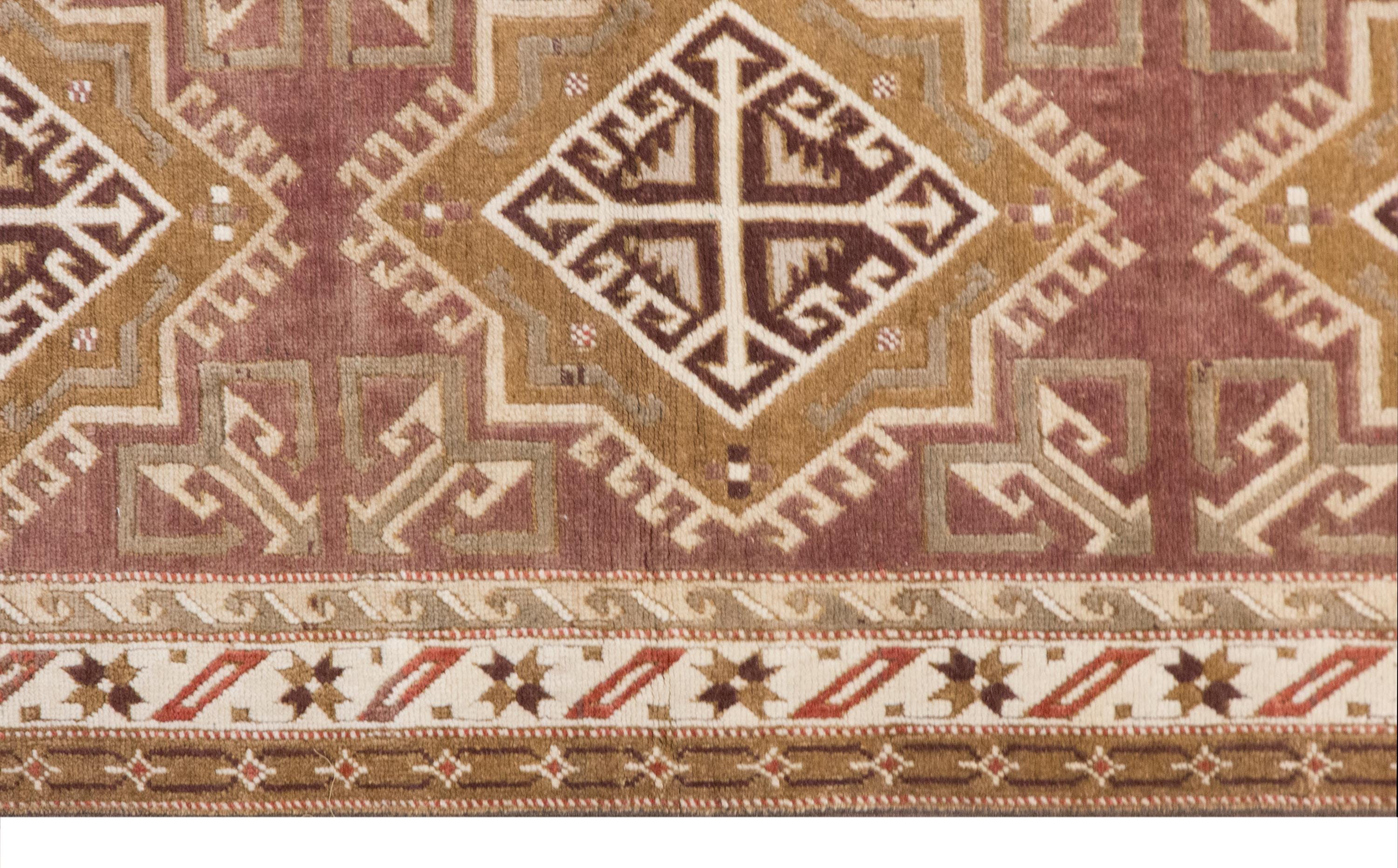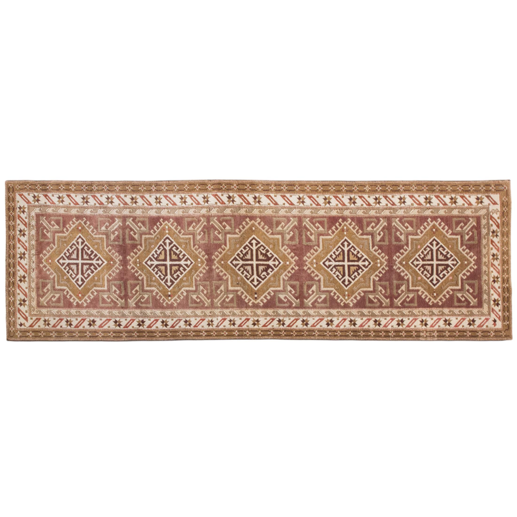 Handwoven by skilled nomadic Turkish artisans over 60 years ago, this runner reflects decades of tradition and craftsmanship. Made from 100% organic hand-spun wool dyed with natural plant pigments, each knot tells a story of heritage. Its soft faded colors give it a warm, authentic vintage character, making it ideal for both classic and contemporary interiors.