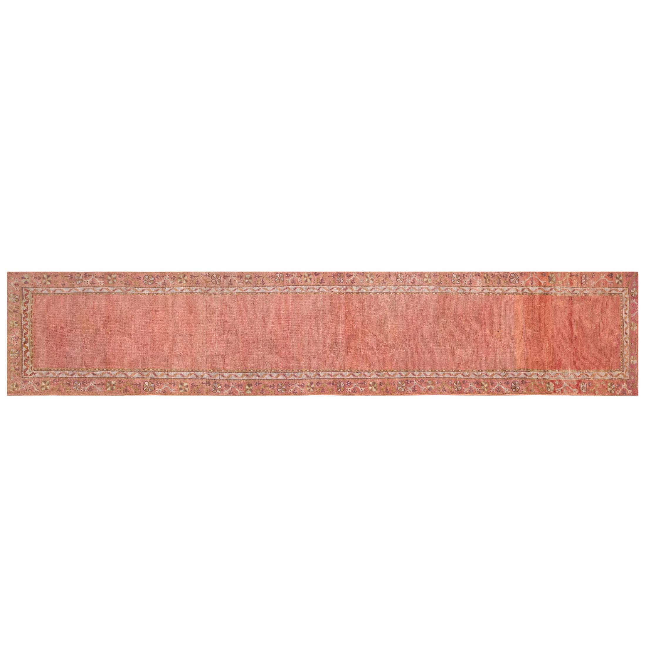 Bring authentic Turkish craftsmanship to your hallway or long narrow space with this handwoven vintage Oushak rug runner, featuring muted tones and timeless Anatolian artistry. Perfect for hallways, entryways, or any long narrow area needing a statement vintage piece.