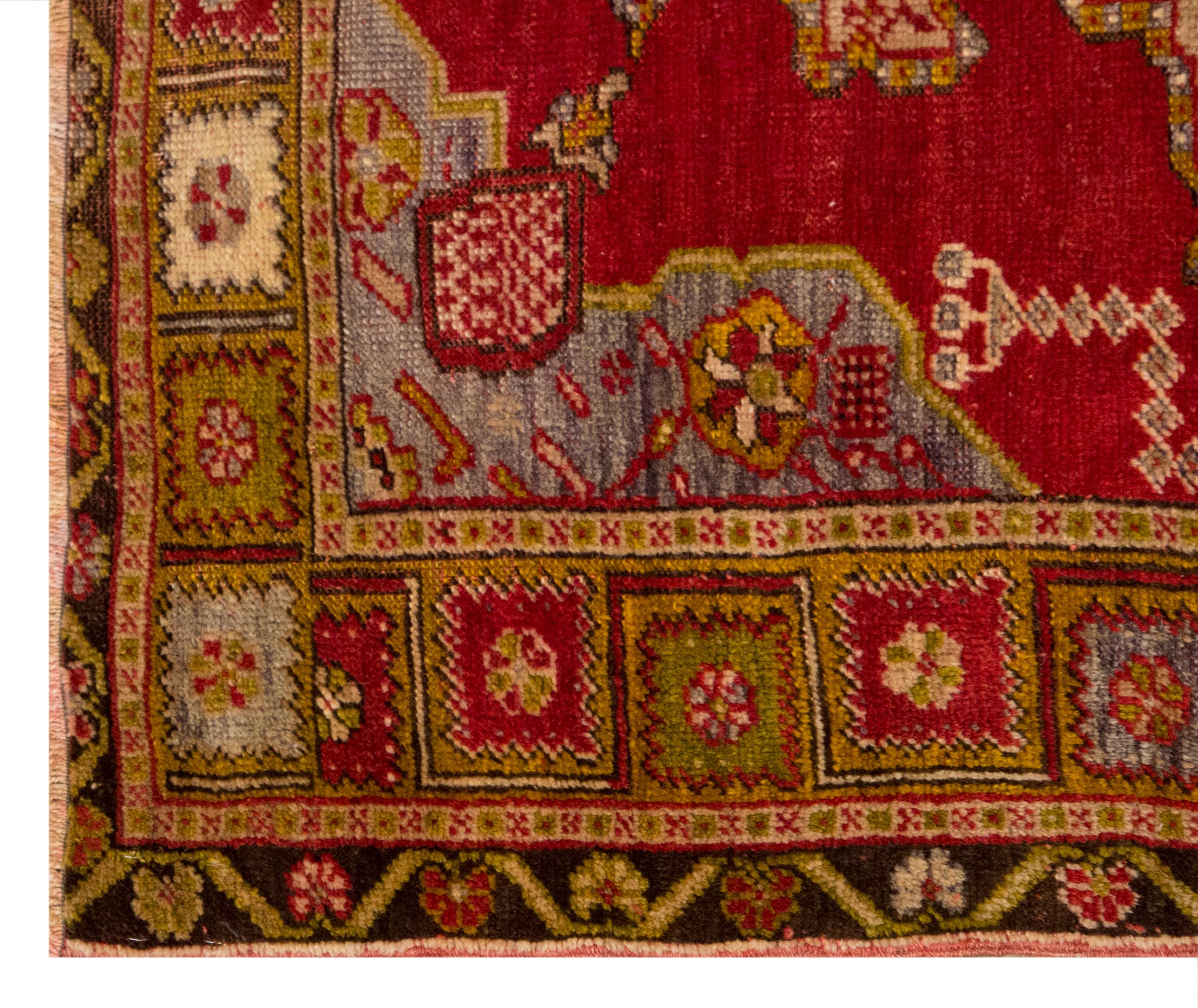 This rug carries the soul of Anatolia. Woven decades ago by skilled village artisans, each knot tells a story of family, tradition, and rural life. The natural dyes, derived from roots, plants, and flowers, give the rug its warm, authentic palette. Carefully preserved and washed, it showcases a soft patina and time-worn beauty, making it a genuine artisan heirloom.