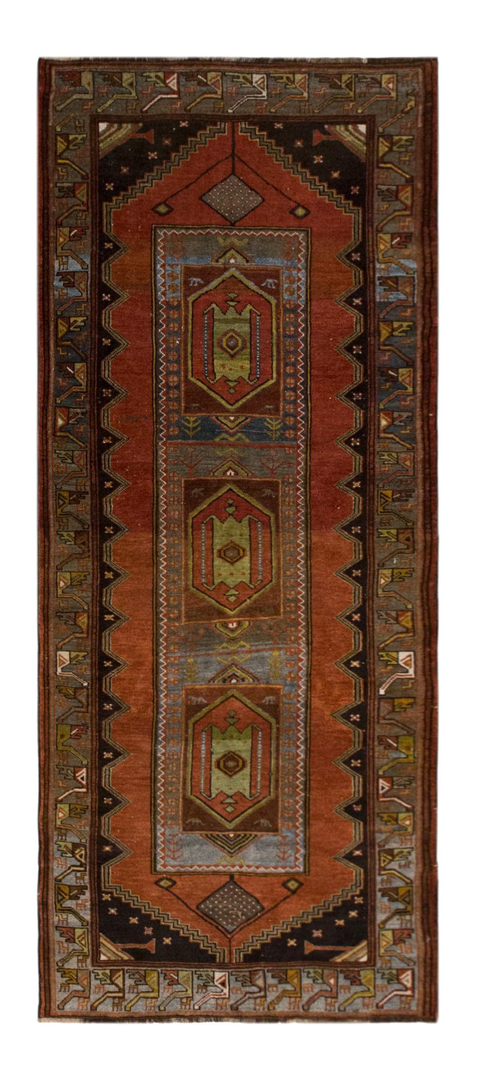 🌟 60+ Year-Old Antique Turkish Runner Rug – Handwoven Wool, Faded Muted Colors, 130x300 cm / 4.3x9.8 ft 🌟