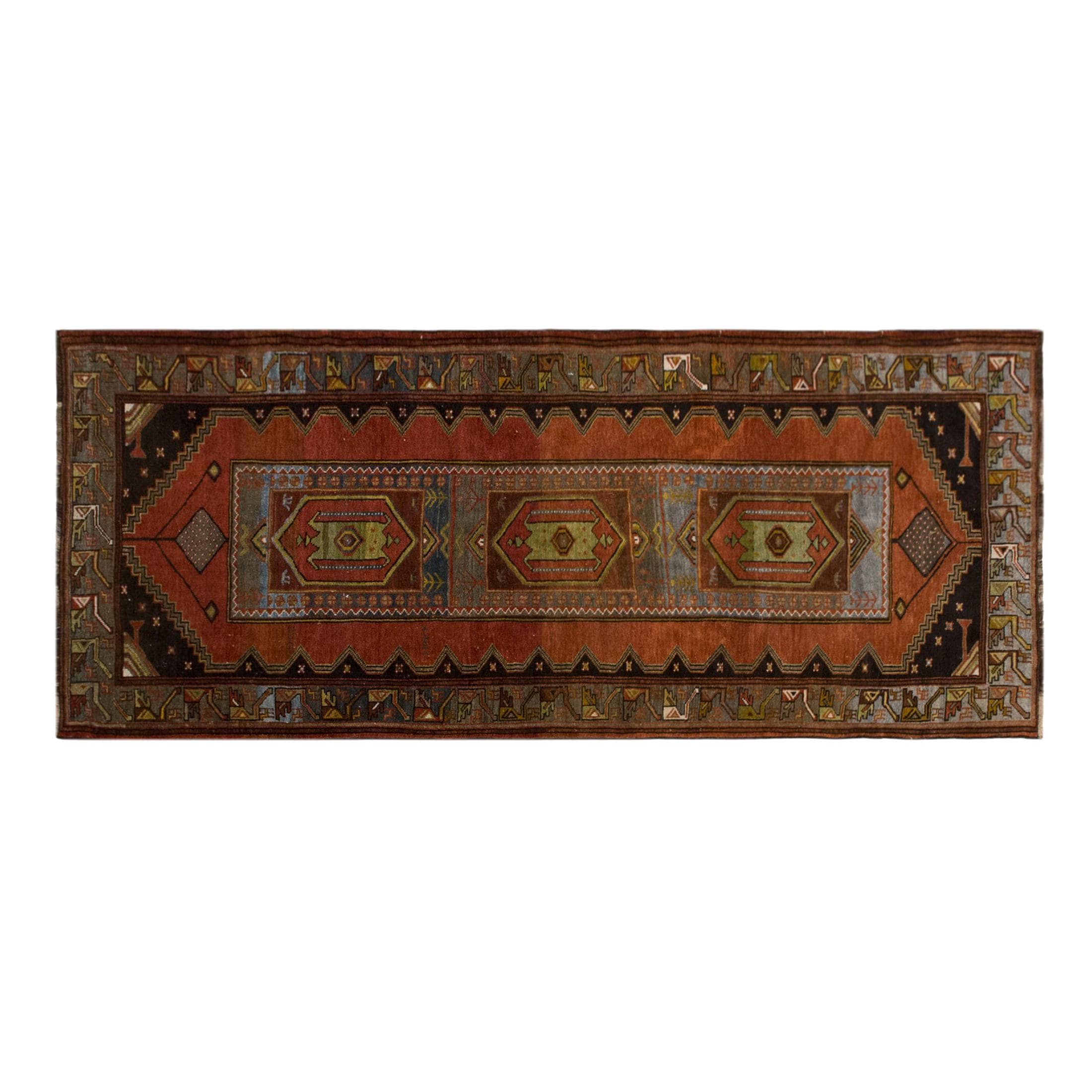 This rare 60+ year-old Turkish runner is handwoven by skilled Anatolian artisans using 100% organic wool and naturally dyed with plants. Its muted, earthy colors and soft patina create a timeless, elegant look—perfect for hallways, living rooms, or designer interiors. Every knot tells a story of heritage, craft, and tradition, making this rug a unique artisan heirloom.