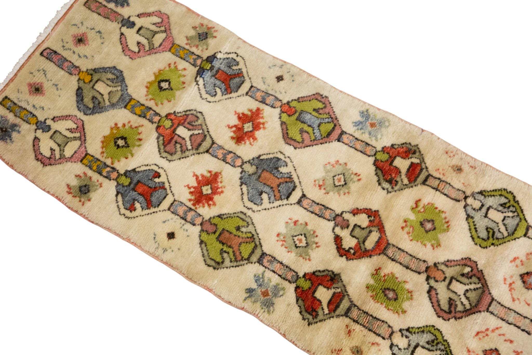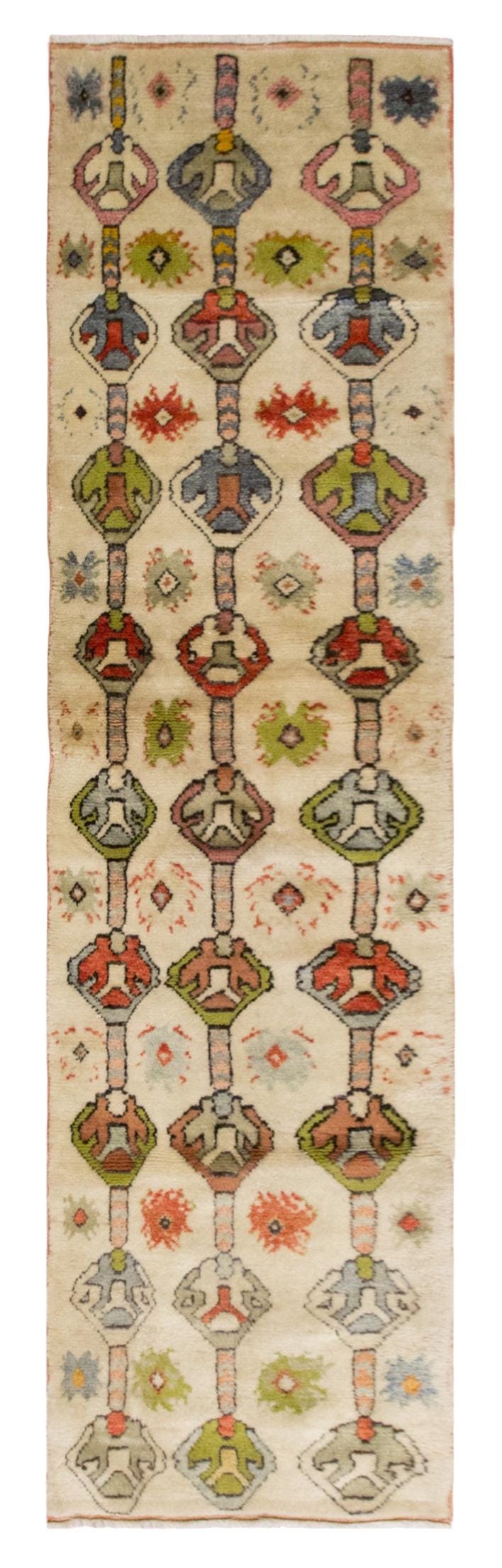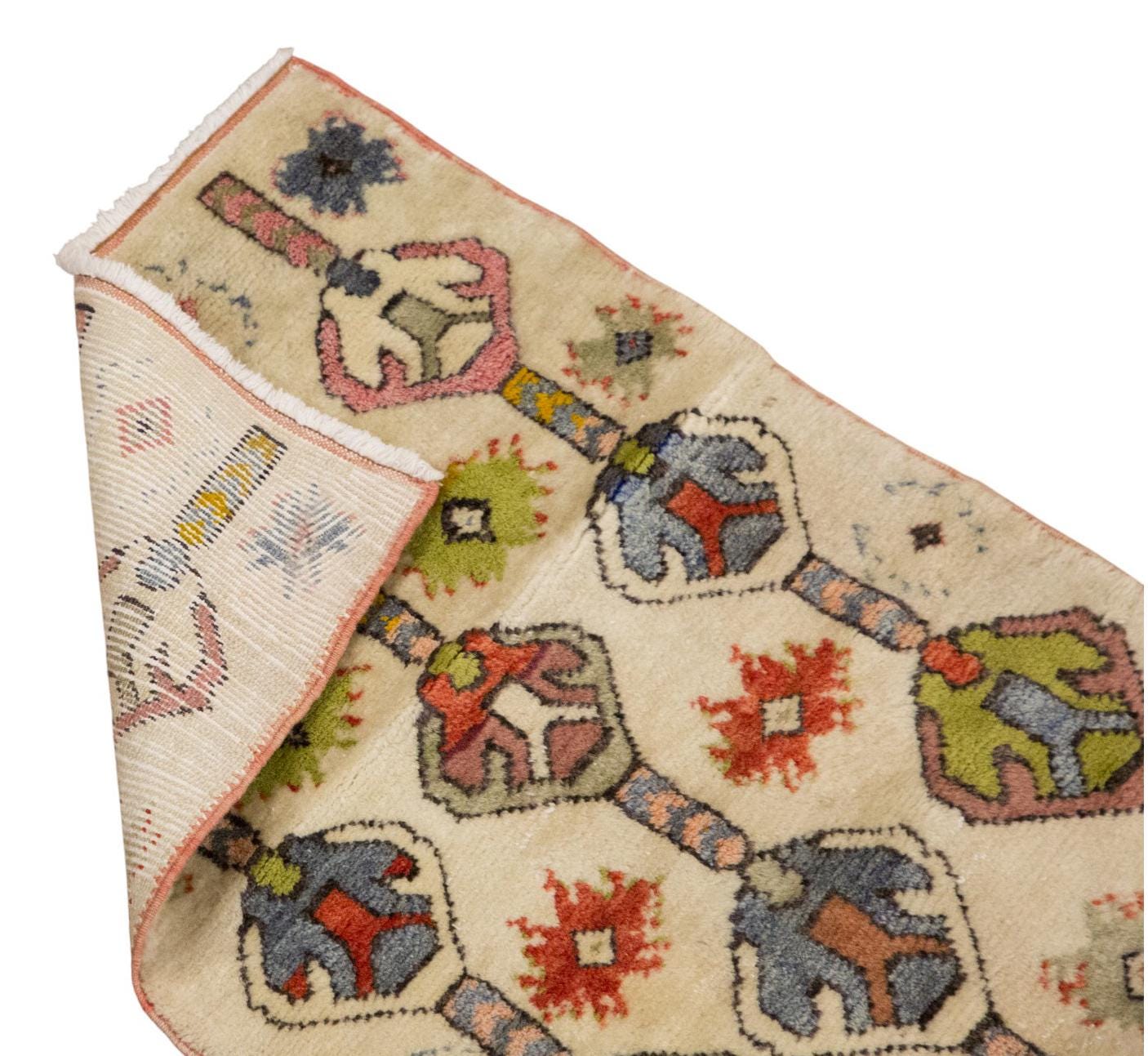 Over six decades old, this runner reflects antique Anatolian weaving traditions. Its soft patina, subtle color variations, and artisan craftsmanship make it a functional piece of art and a statement for any interior style—vintage, bohemian, or contemporary.