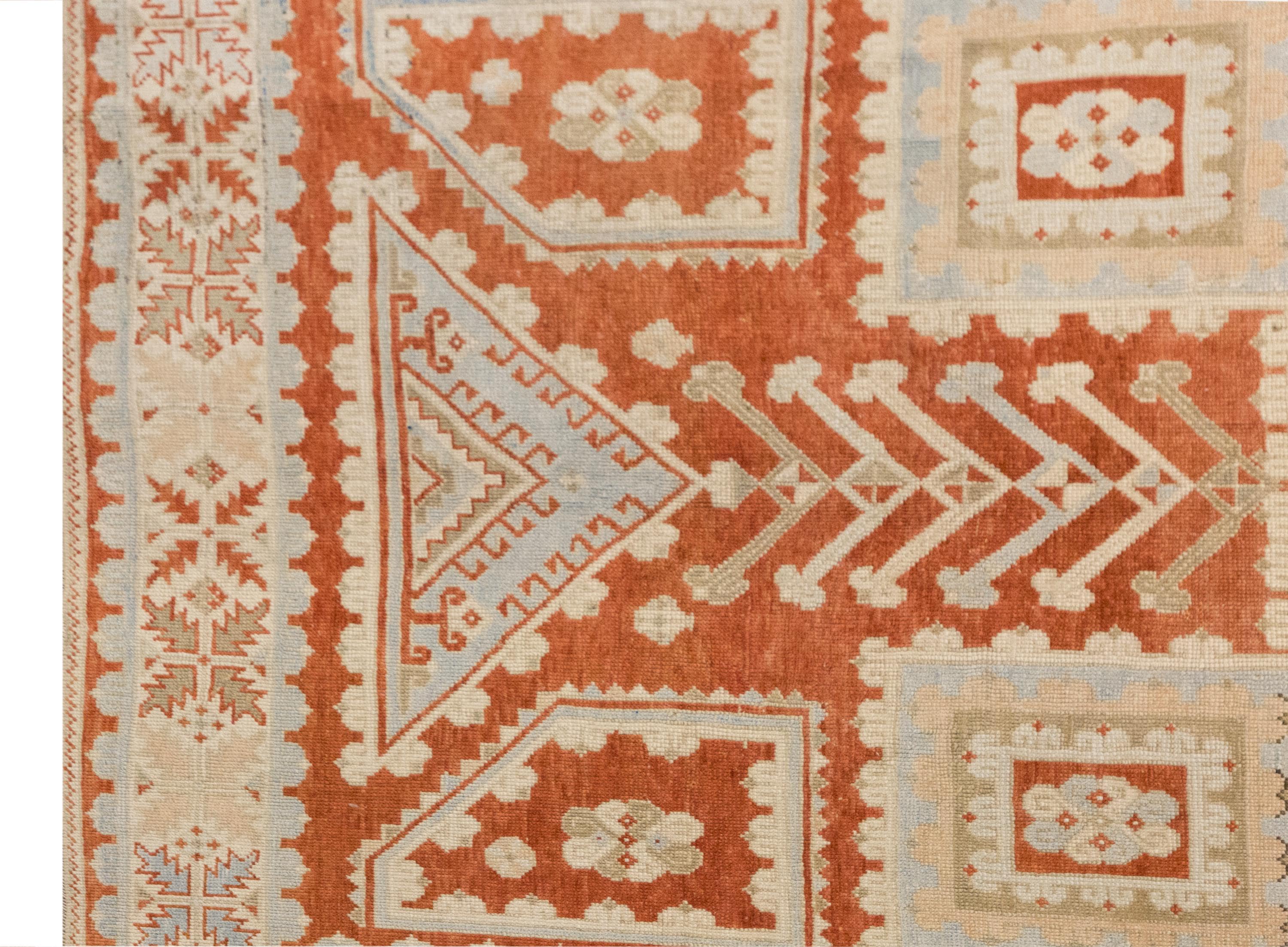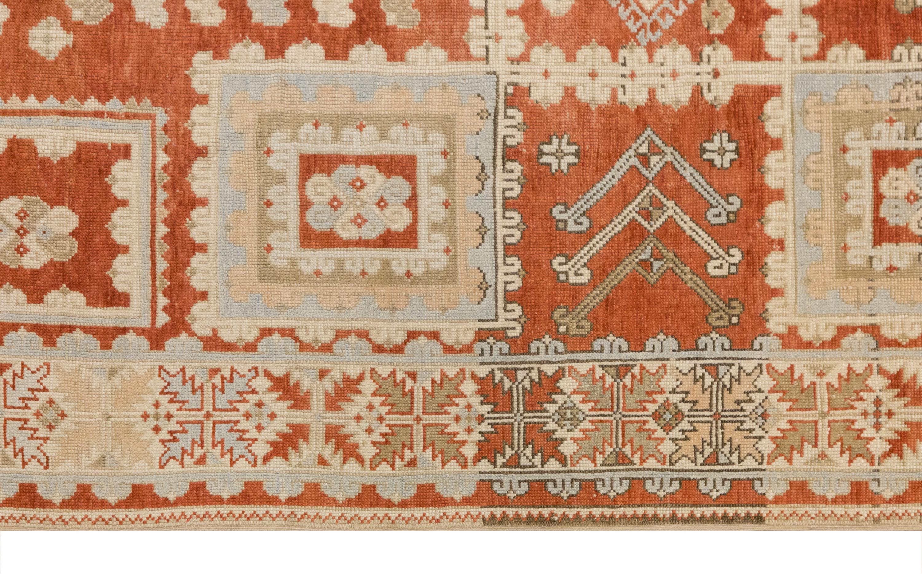This vintage Oushak rug captures the heritage and artistry of Anatolian weavers. Each knot tells a story of decades of skill and tradition, making it perfect for living rooms, bedrooms, or boho-inspired interiors.