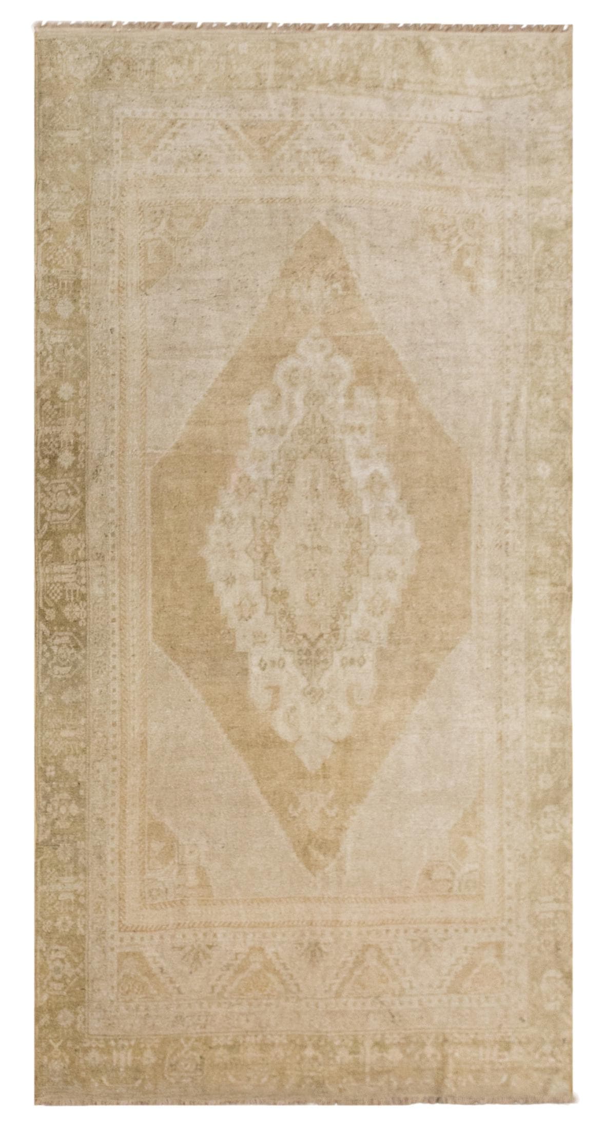 A rare 60+ year-old handwoven Turkish Oushak rug! Measuring 142x280 cm (4.6x9.2 ft), this vintage piece showcases authentic nomadic craftsmanship, soft muted tones, and timeless bohemian elegance. Professionally washed & ready for immediate use.
