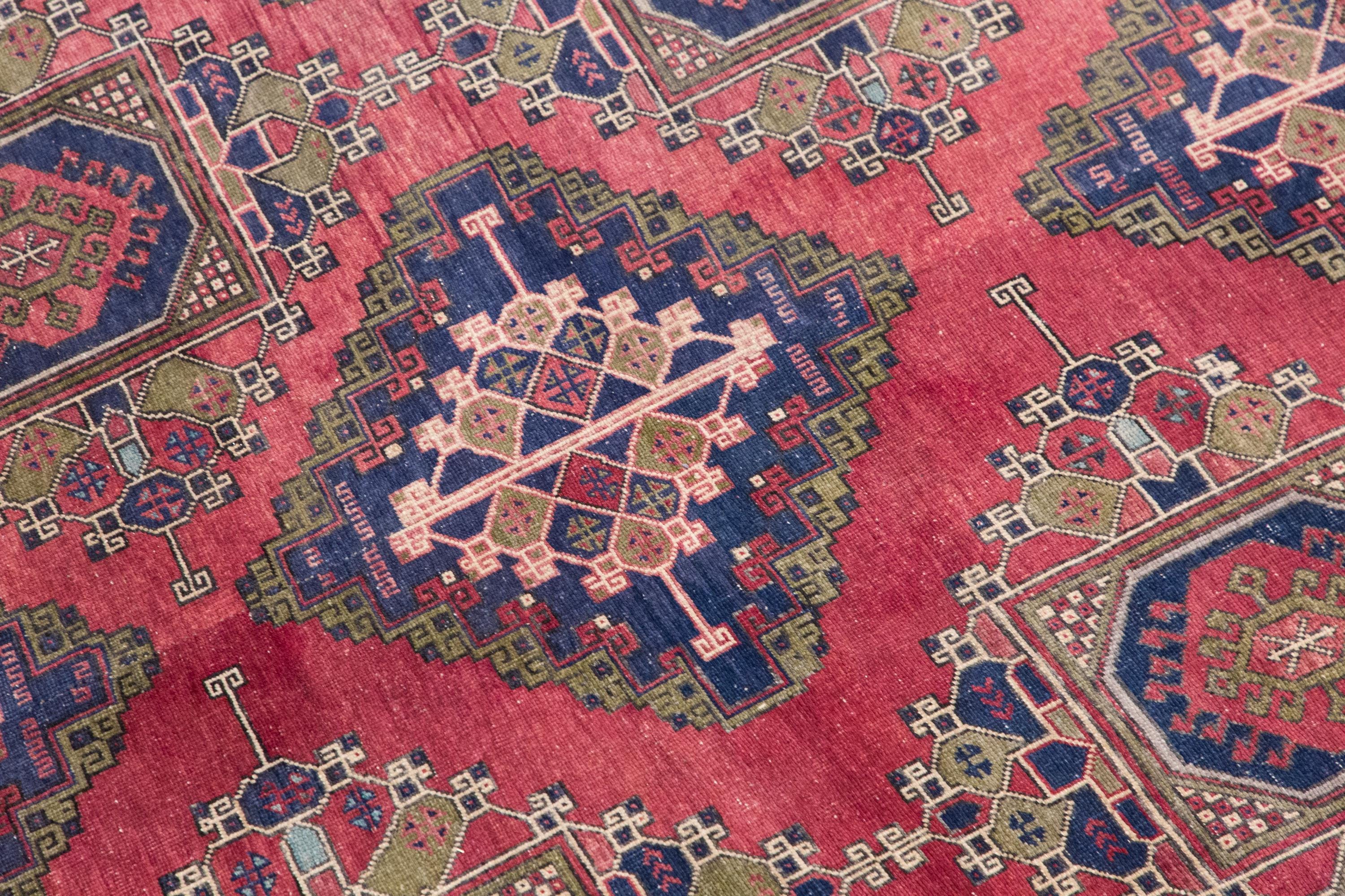 A rare 60+ year-old handwoven Turkish Oushak rug, crafted by nomadic artisans from 100% hand-spun wool. Naturally dyed with muted earthy tones, this rug features traditional Caucasian & Bohemian designs and a soft vintage patina. Professionally washed and ready to use.