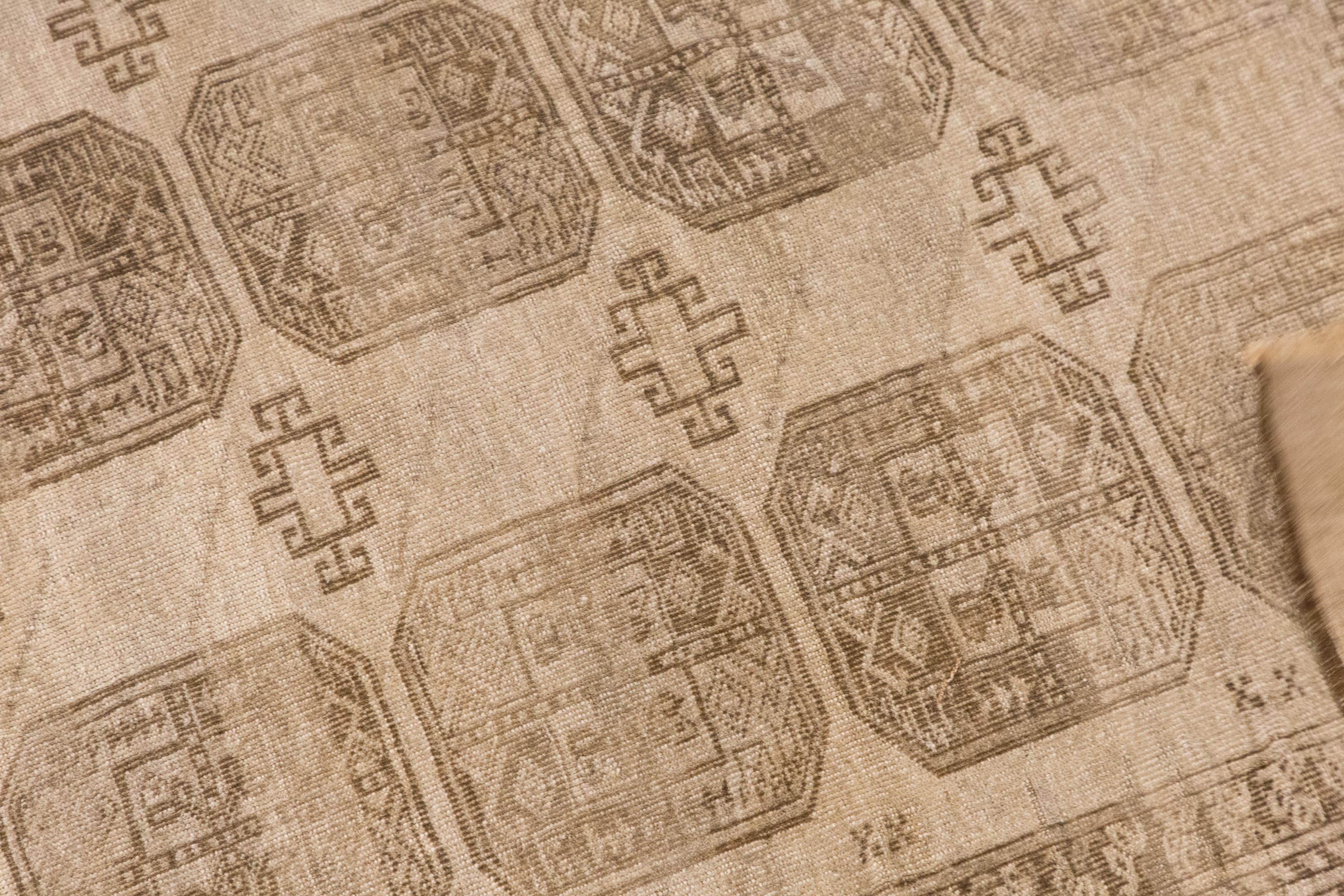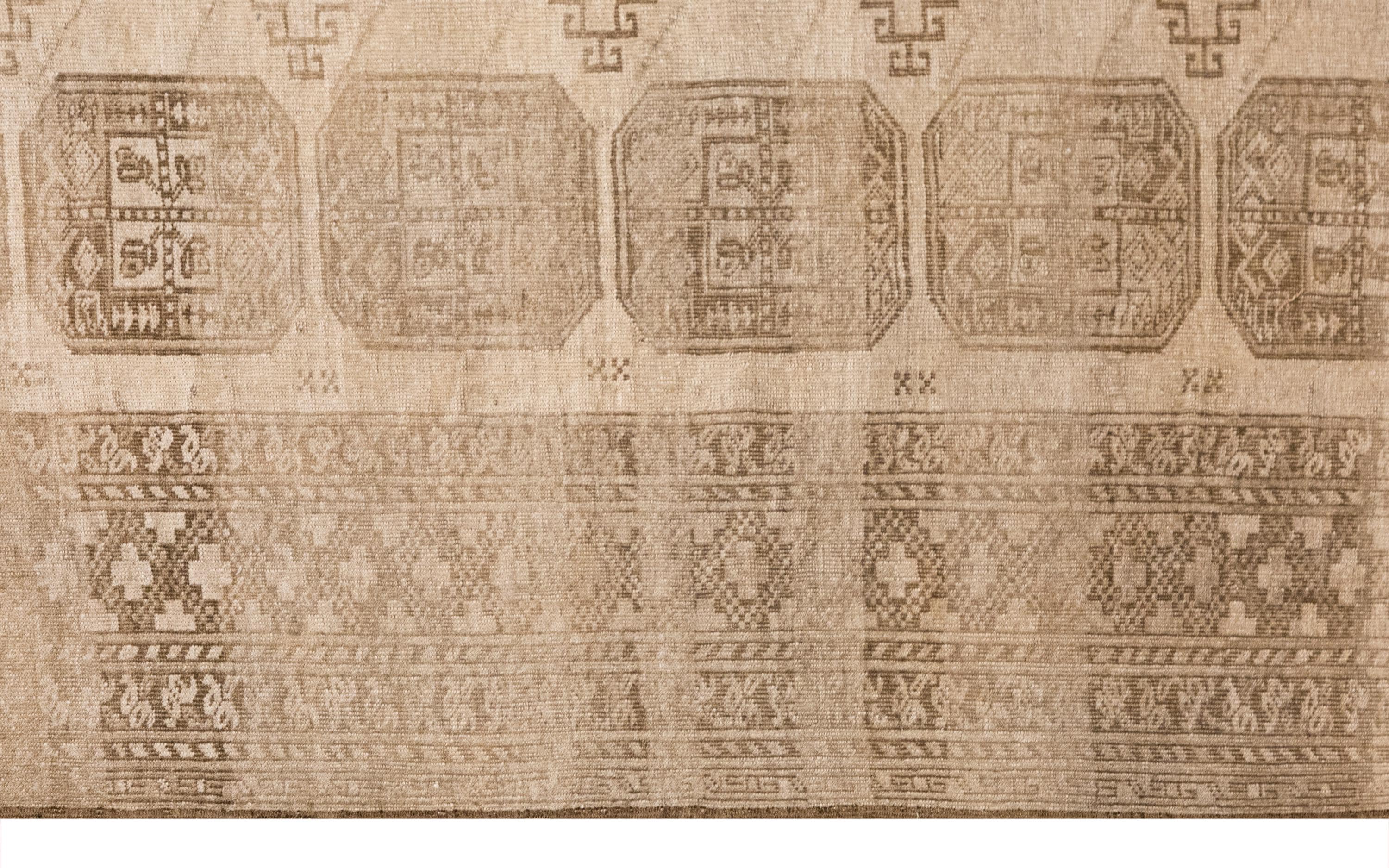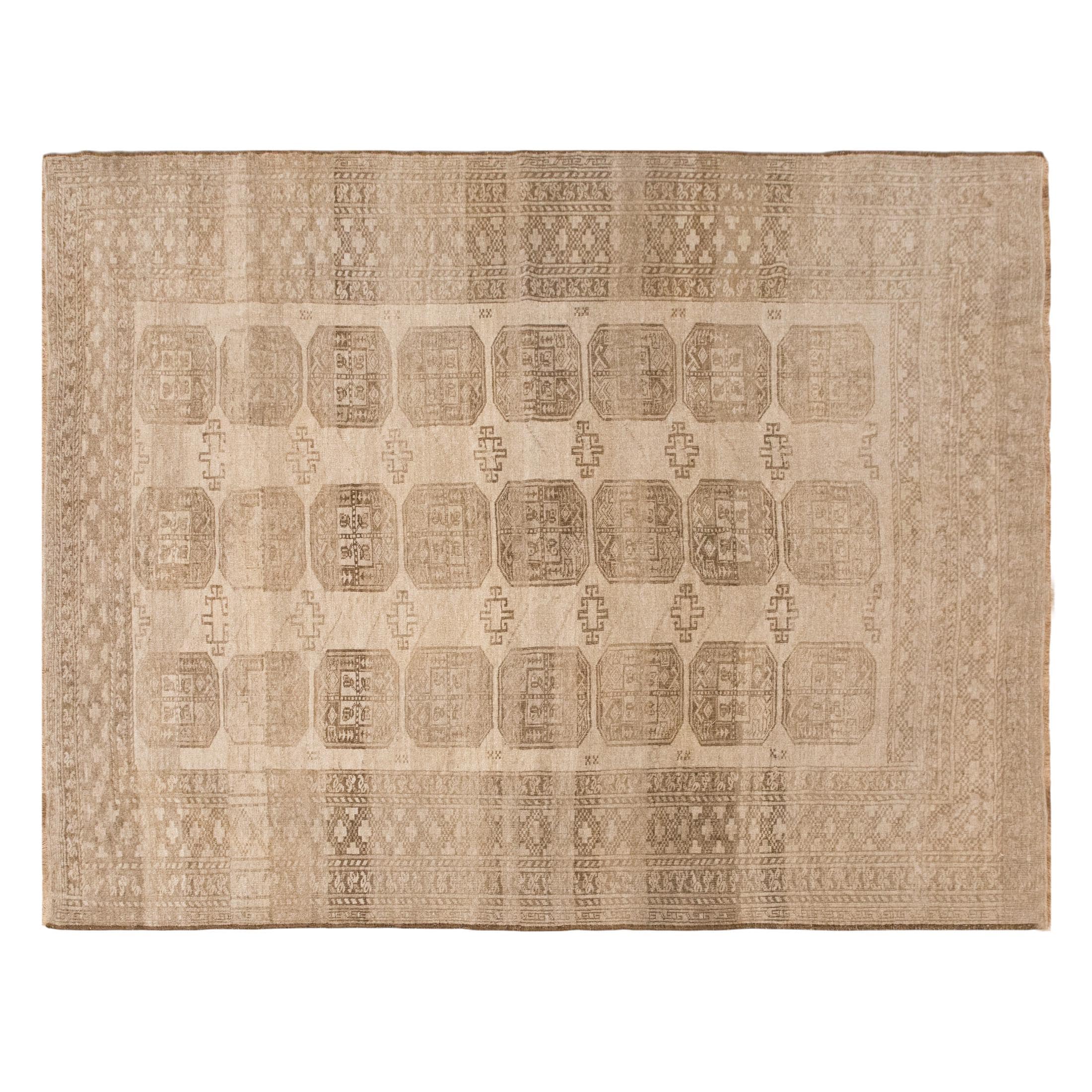A rare 60+ year-old handwoven Turkish Oushak rug, crafted by nomadic artisans from 100% hand-spun wool. Naturally dyed with muted earthy tones, this rug features traditional Caucasian & Bohemian designs and a soft vintage patina. Professionally washed and ready to use.