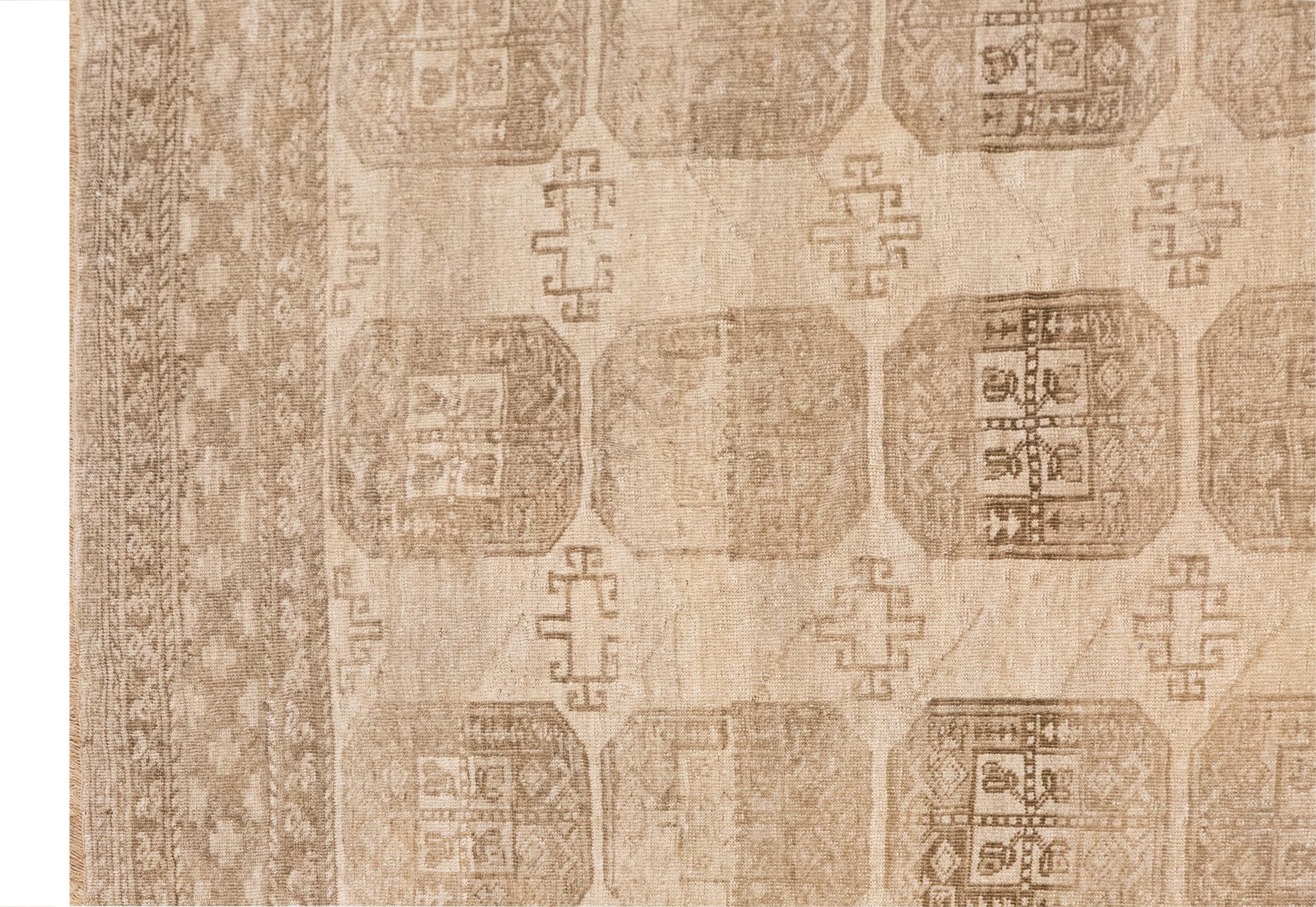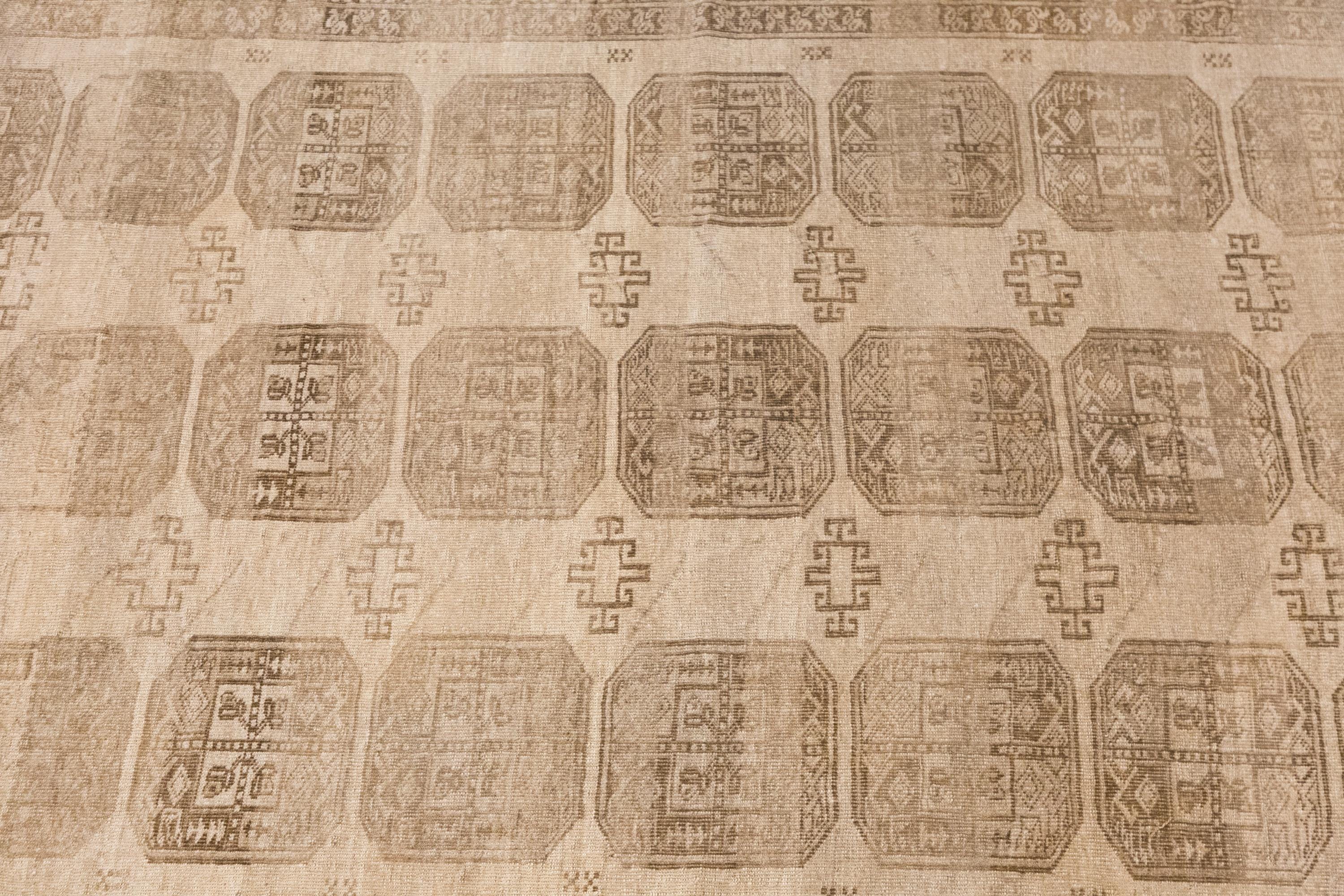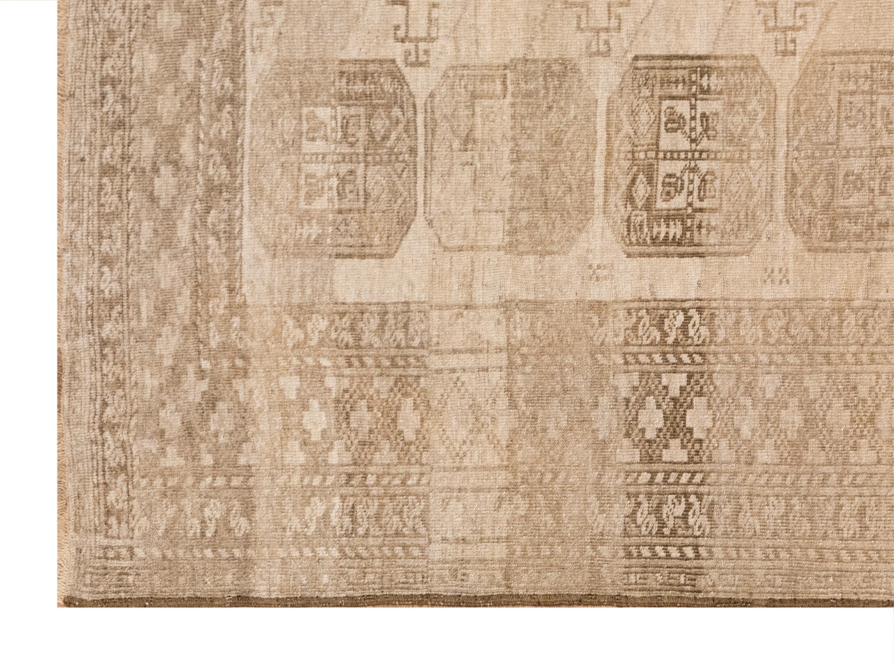 A rare 60+ year-old handwoven Turkish Oushak rug, crafted by nomadic artisans from 100% hand-spun wool. Naturally dyed with muted earthy tones, this rug features traditional Caucasian & Bohemian designs and a soft vintage patina. Professionally washed and ready to use.