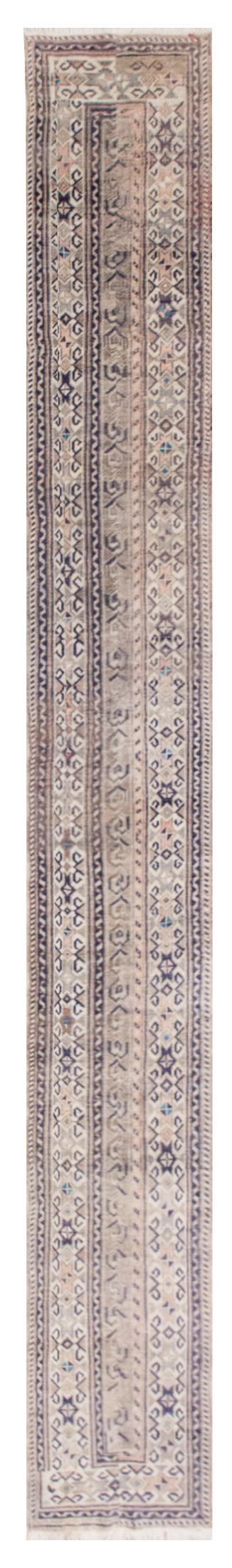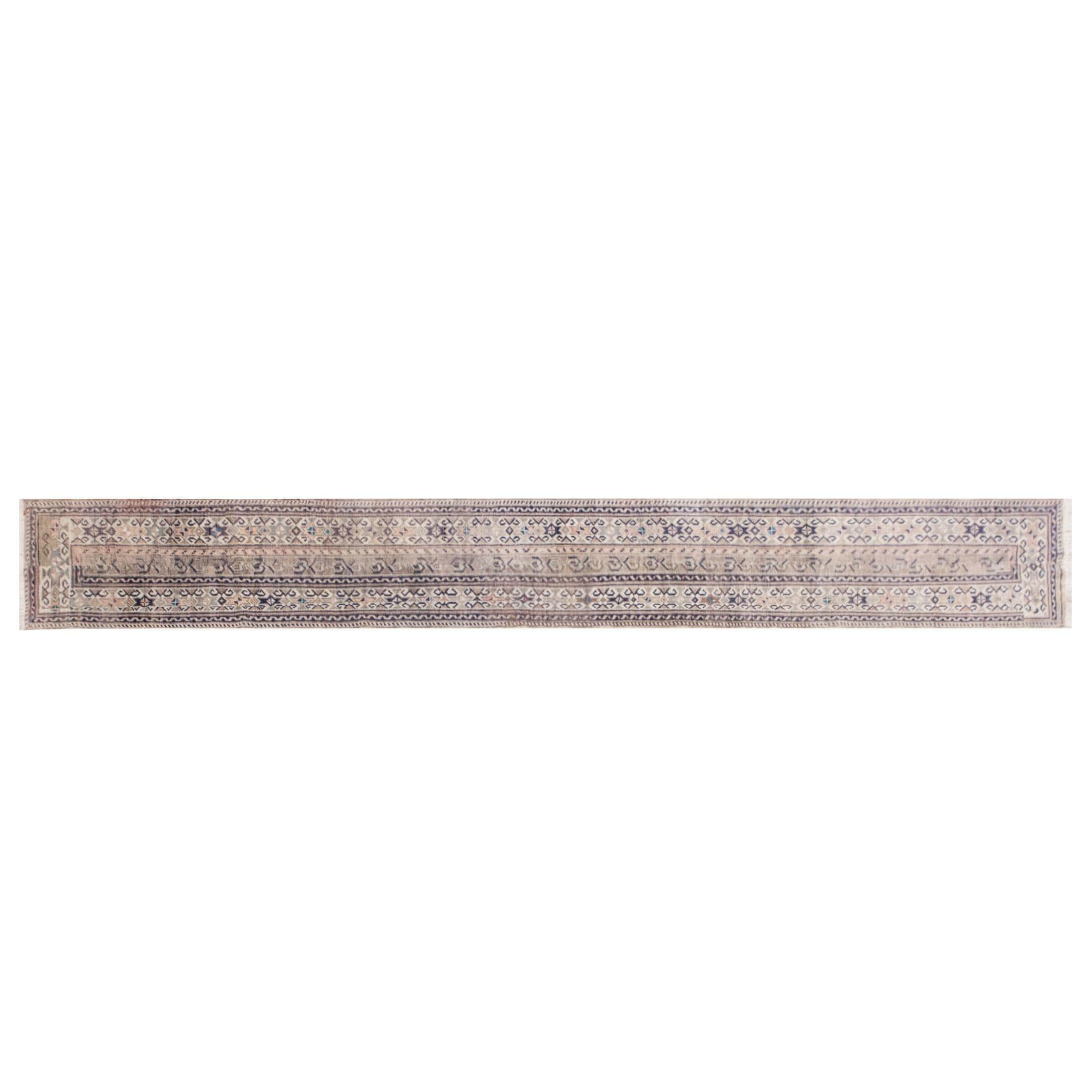 🏷️ Vintage Oushak Runner Rug | Handmade Wool Rug | 1'6" × 11'1" / 46 × 337 cm | Muted Colors | 1960s Turkish Hallway Runner