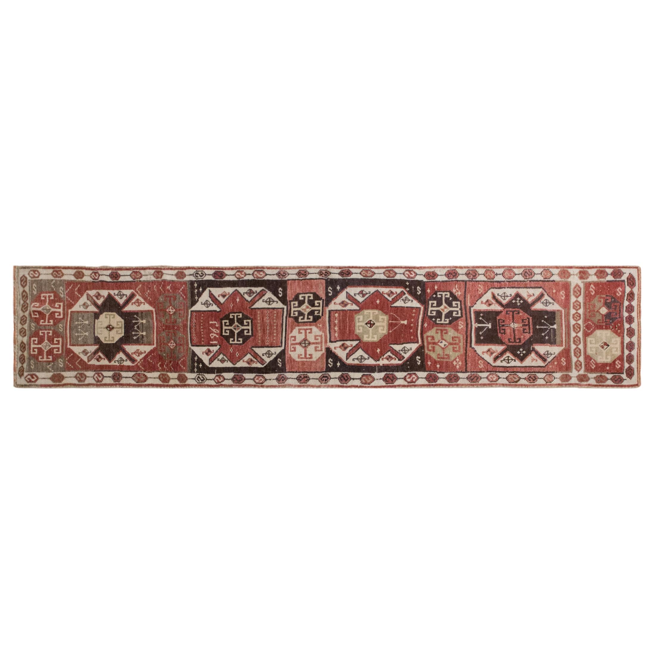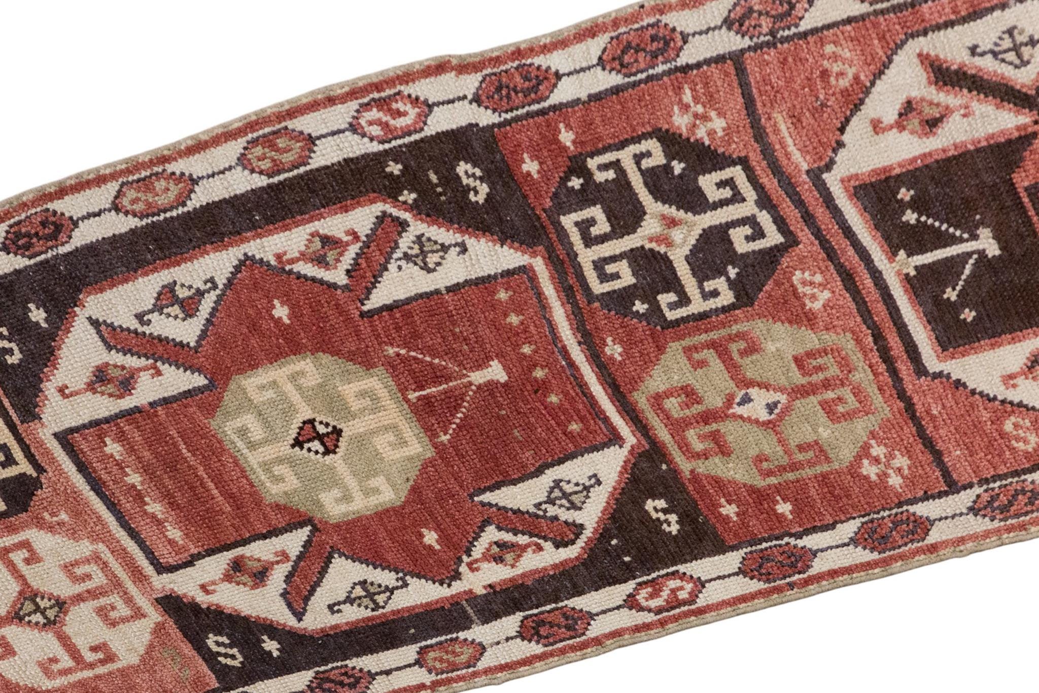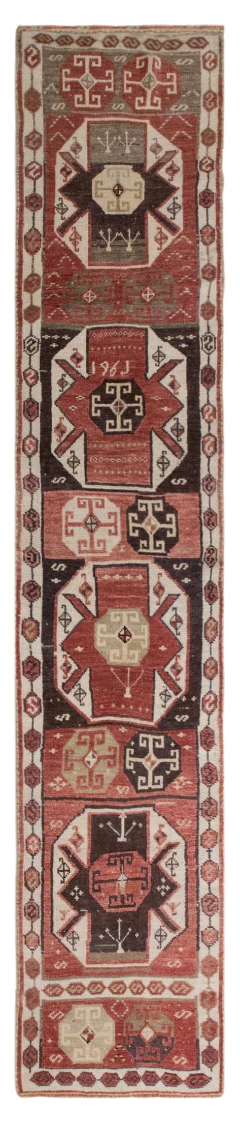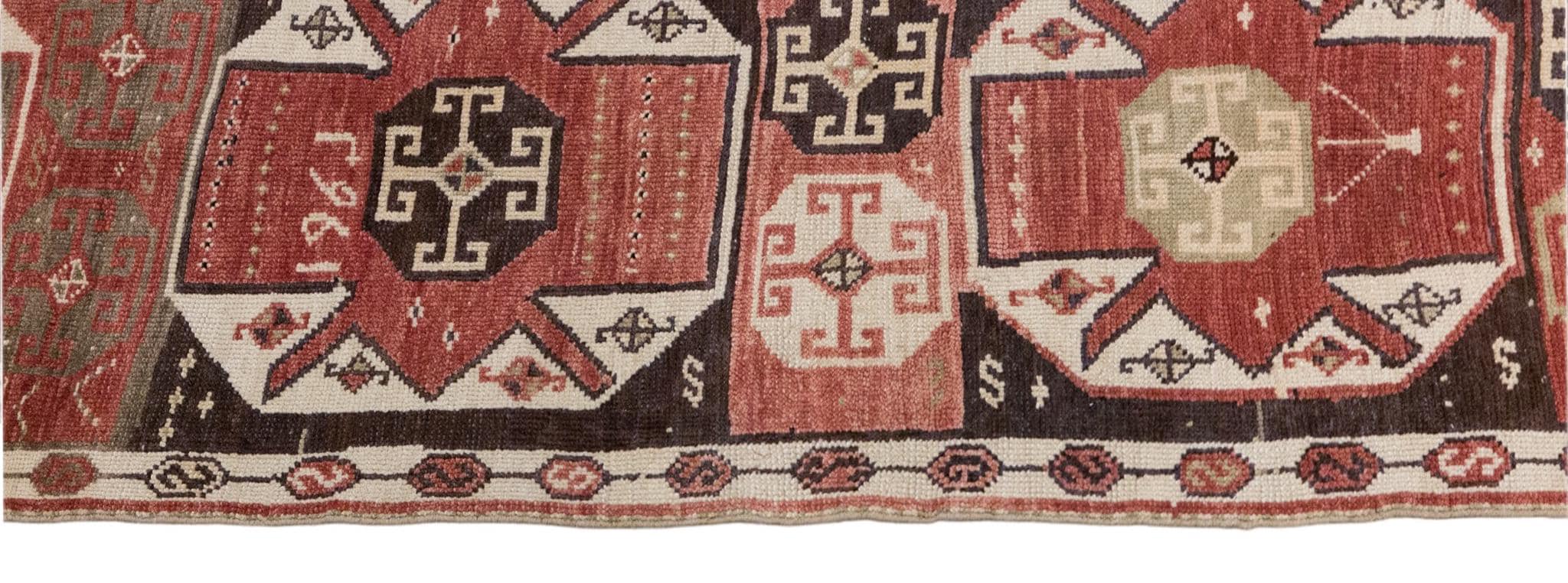 A one-of-a-kind Kurdish Herki handmade wool runner rug, naturally dyed with plants, woven in the 1960s in rural Turkey.