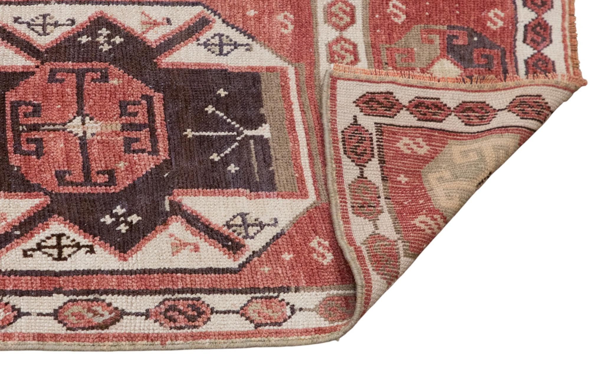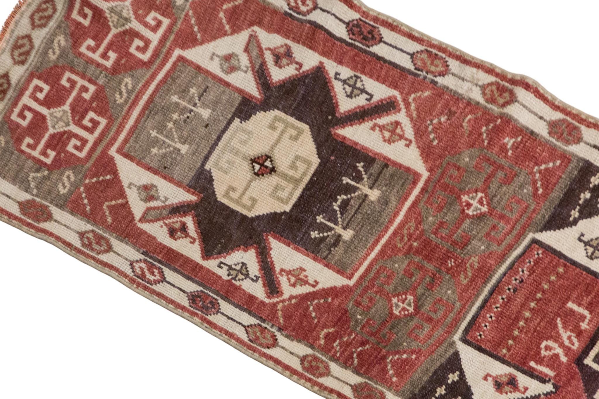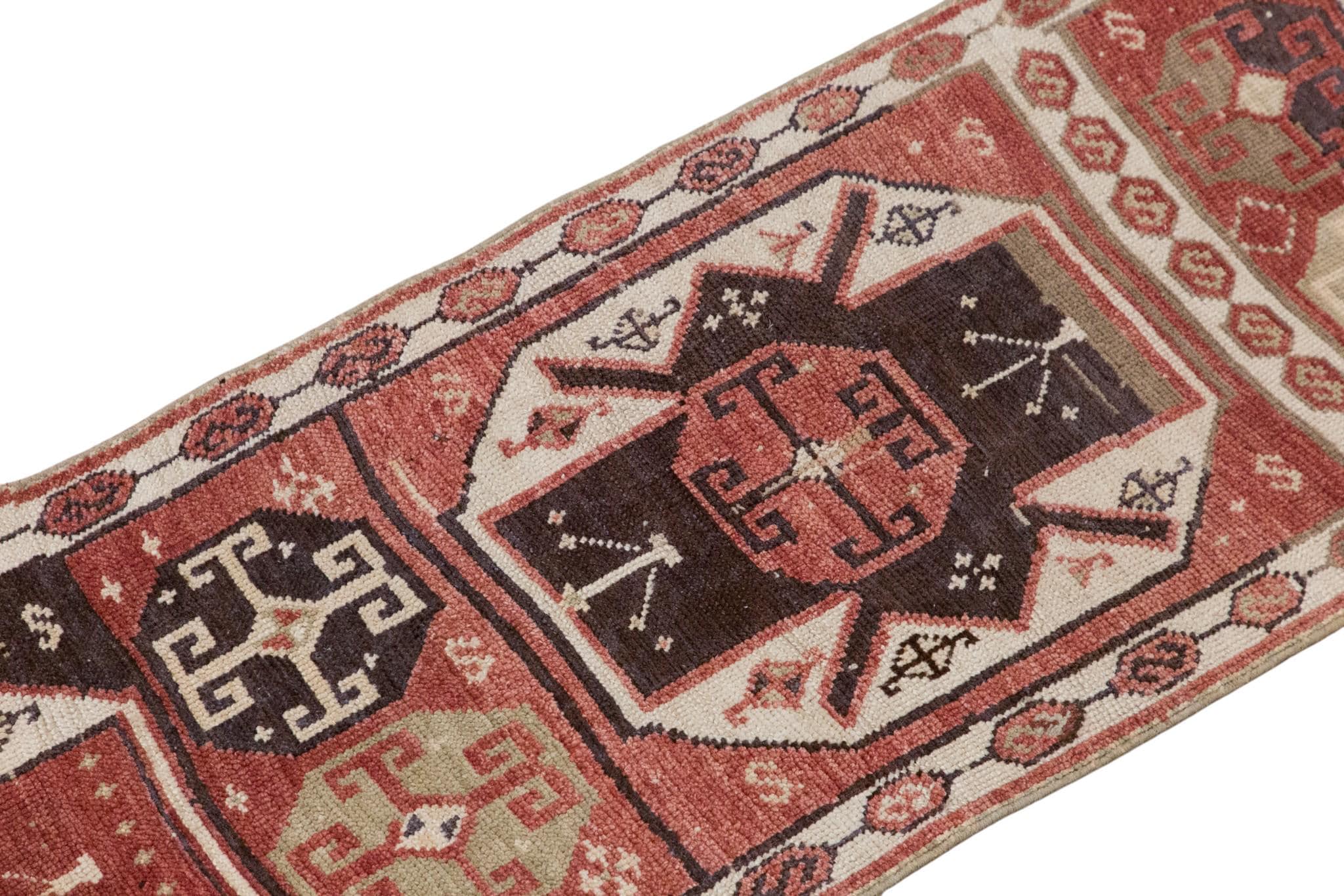 A one-of-a-kind Kurdish Herki handmade wool runner rug, naturally dyed with plants, woven in the 1960s in rural Turkey.