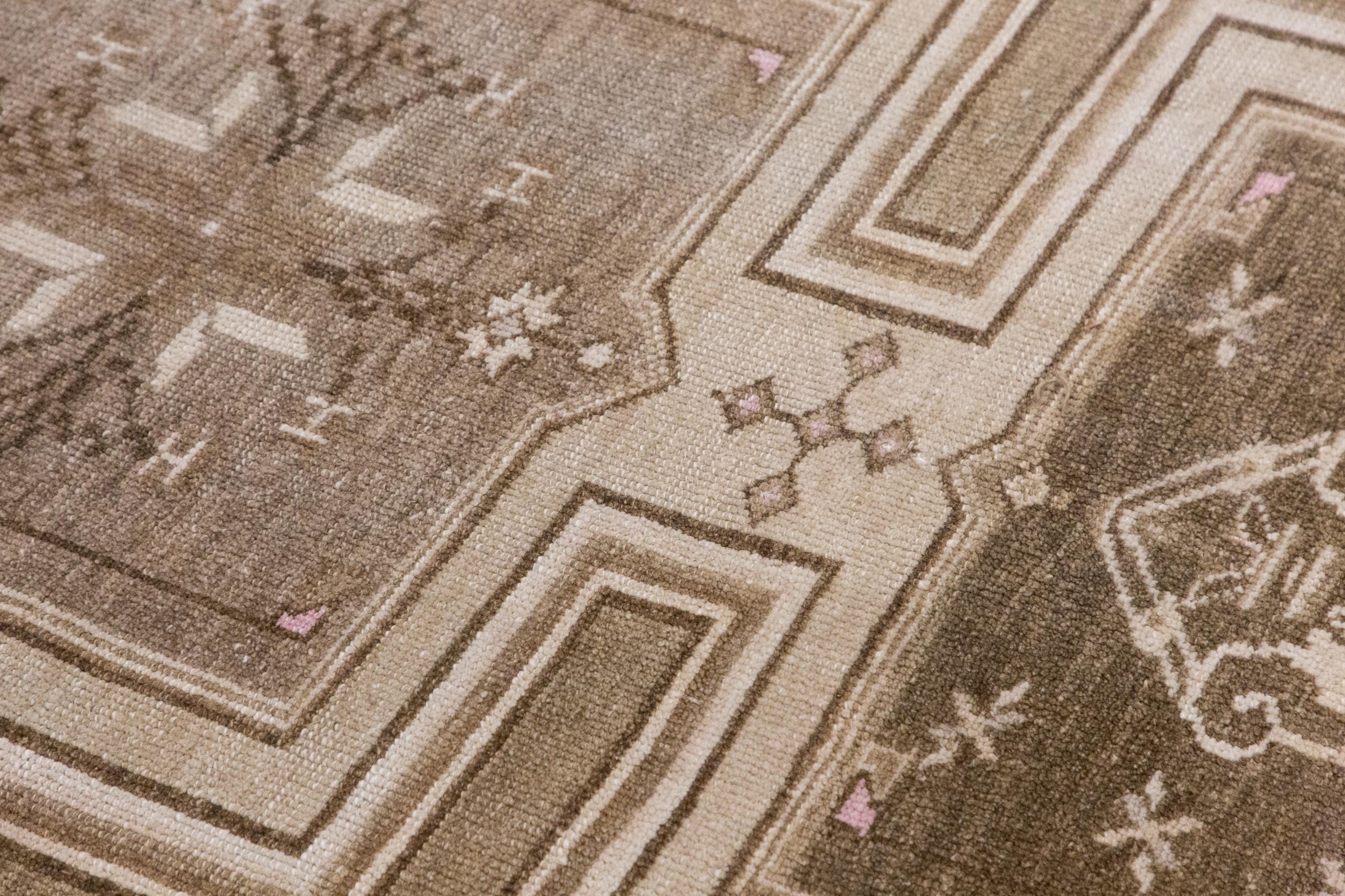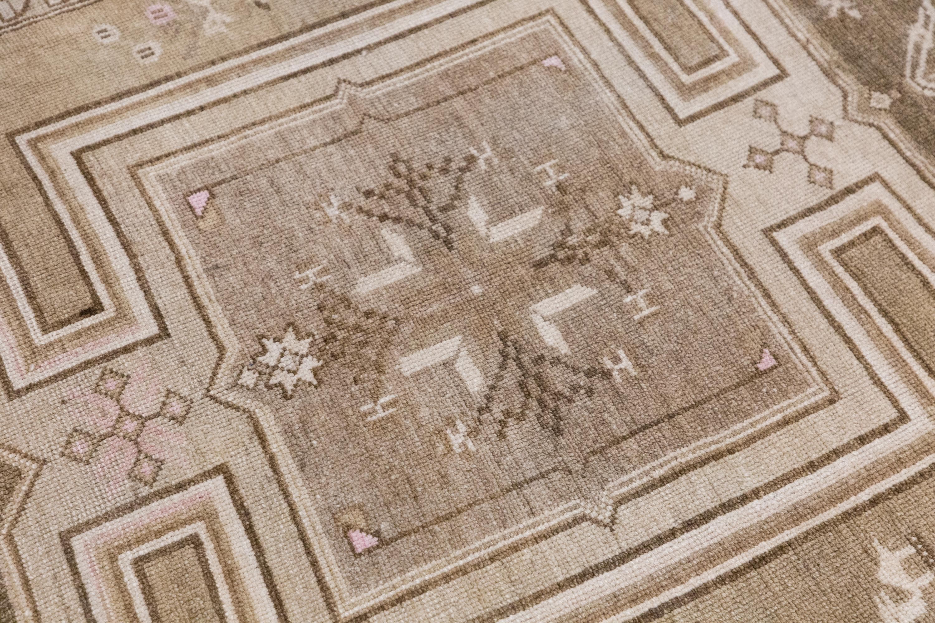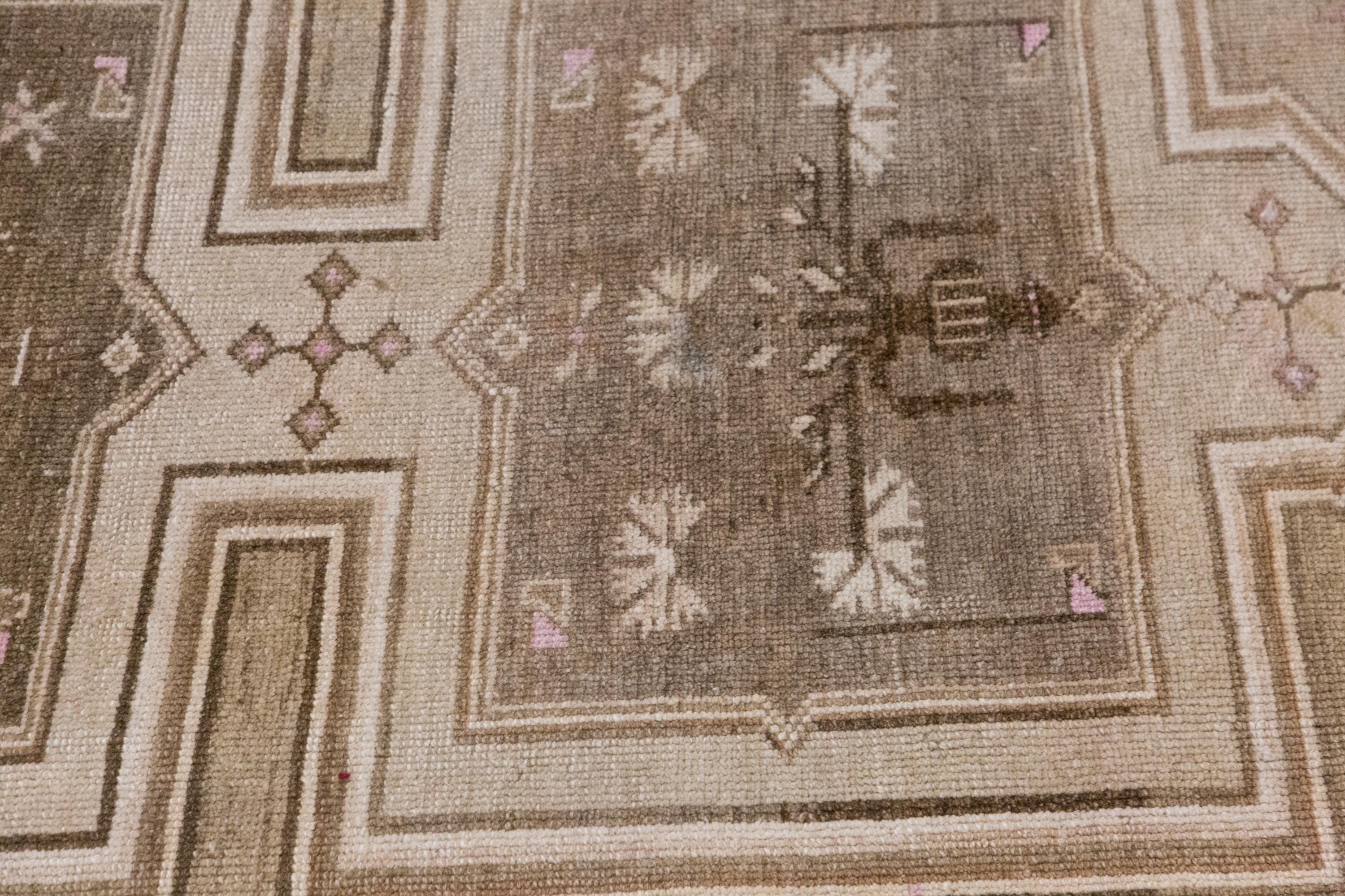 Bring timeless beauty and character to your space with this authentic handwoven Kurdish Kars vintage runner rug. Crafted approximately 60–65 years ago by nomadic villagers, this 100% hand-spun wool on wool piece features an exquisite blend of bohemian charm and traditional Caucasian and Oushak-style design motifs.