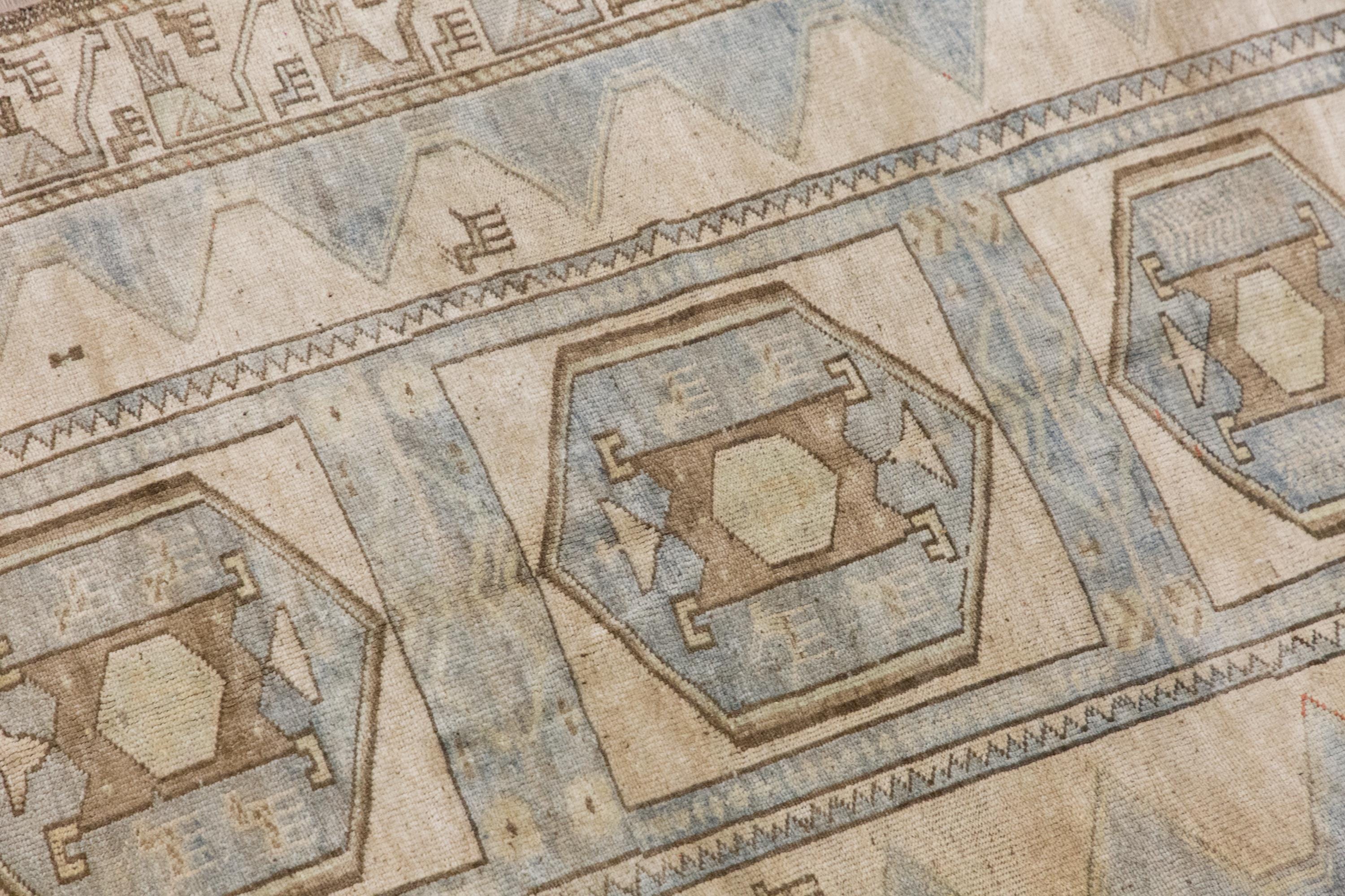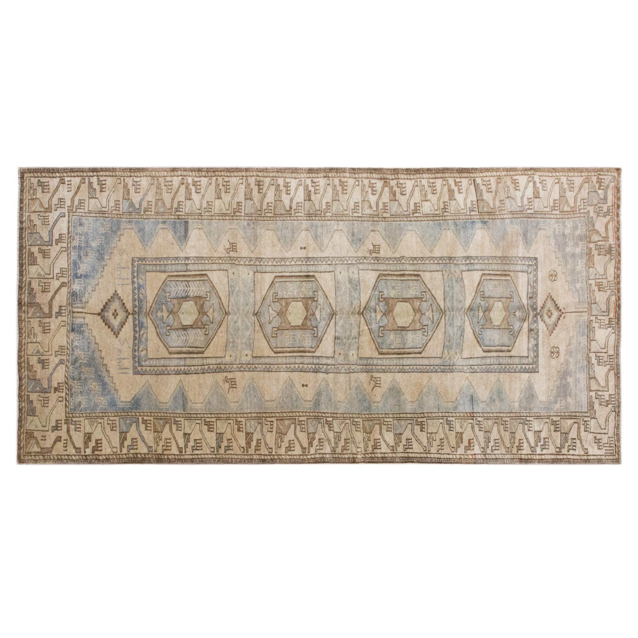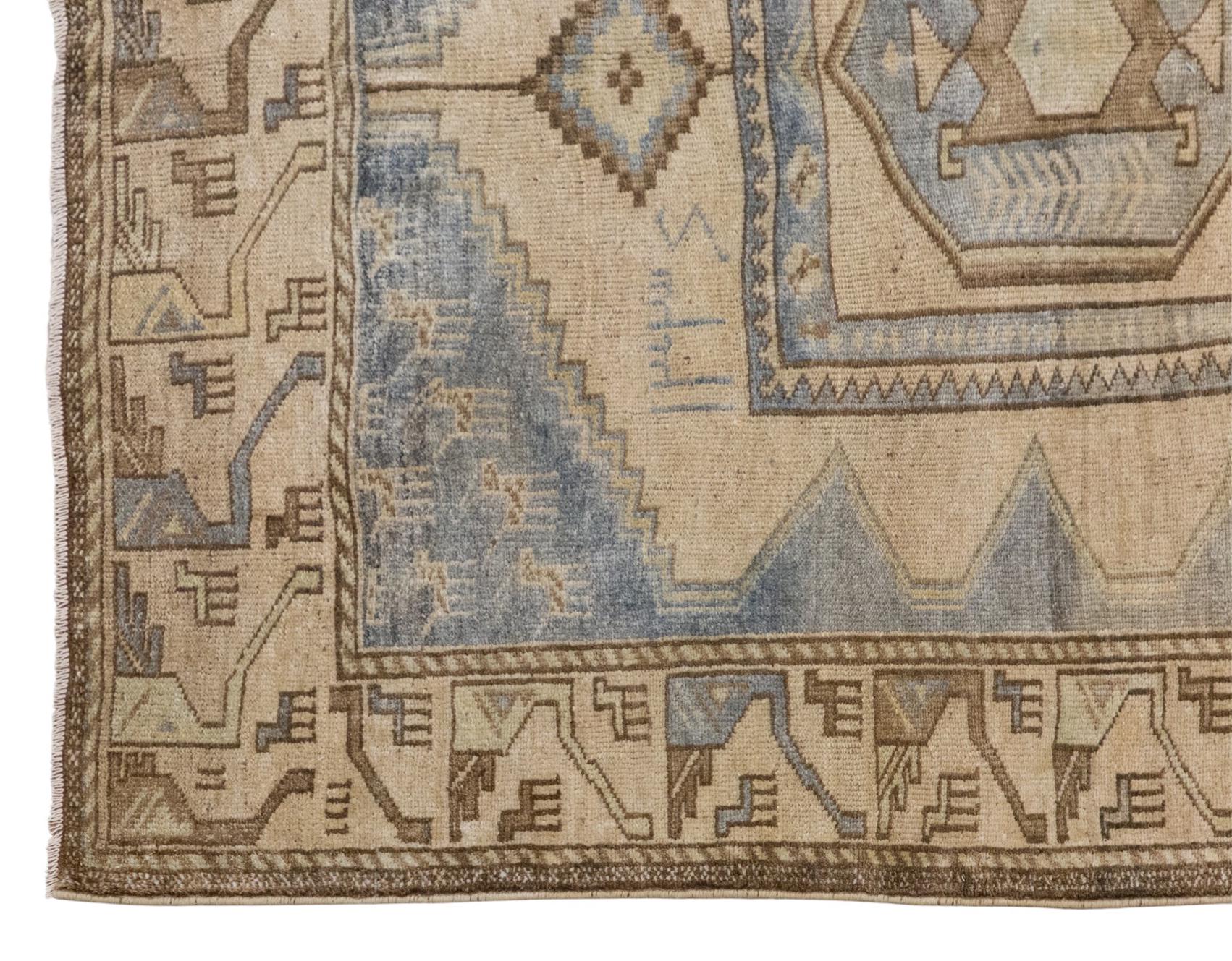 Bring timeless charm and character to your space with this authentic vintage Oushak rug. Handwoven by nomadic villagers, this piece features a beautiful combination of bohemian and traditional Caucasian design motifs.