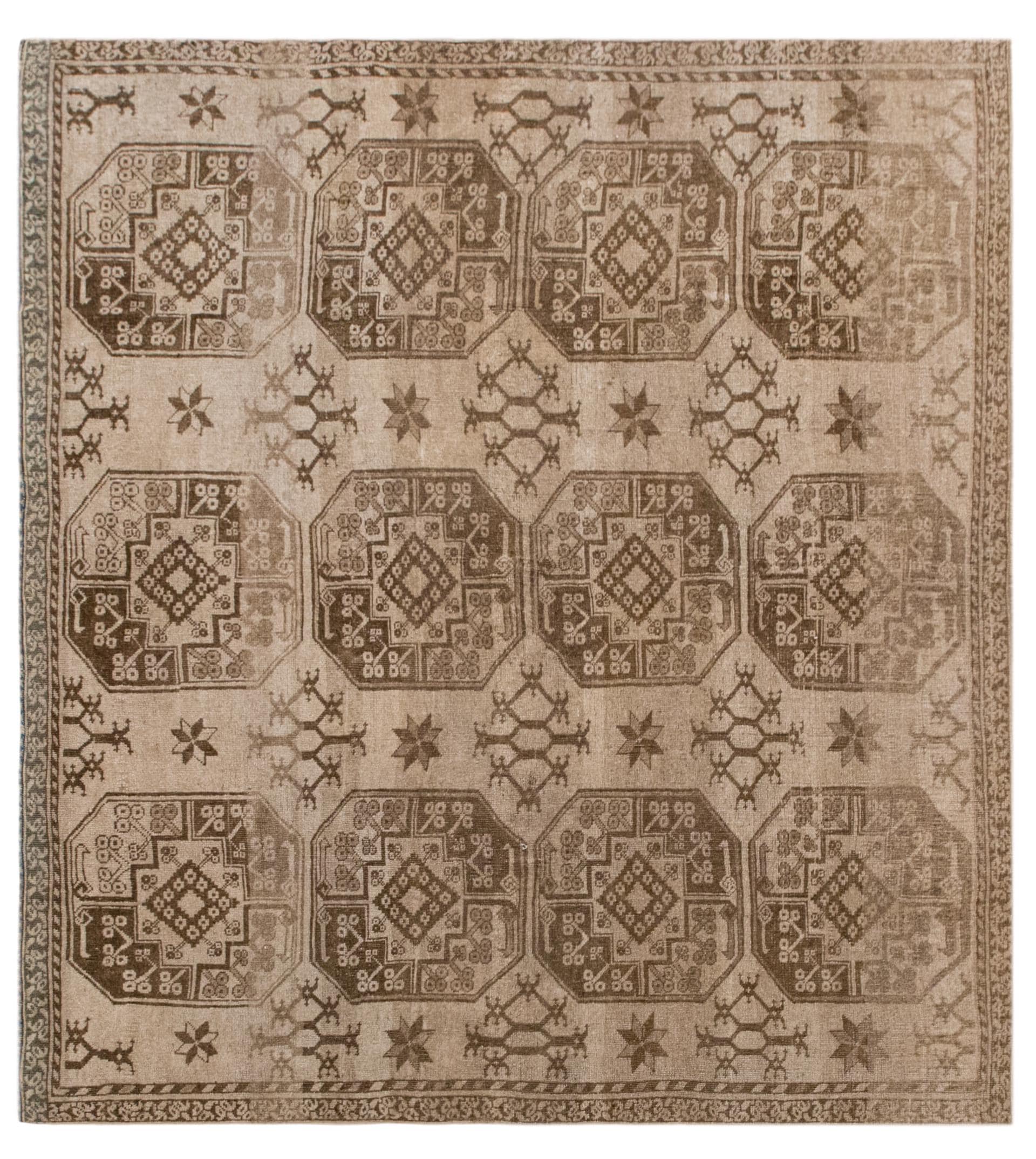 ✨ Large Vintage Oushak Rug – 226 x 242 cm / 7'5" x 7'11" – 60+ yrs Old Handmade Area Rug – Bohemian & Traditional Caucasian Design