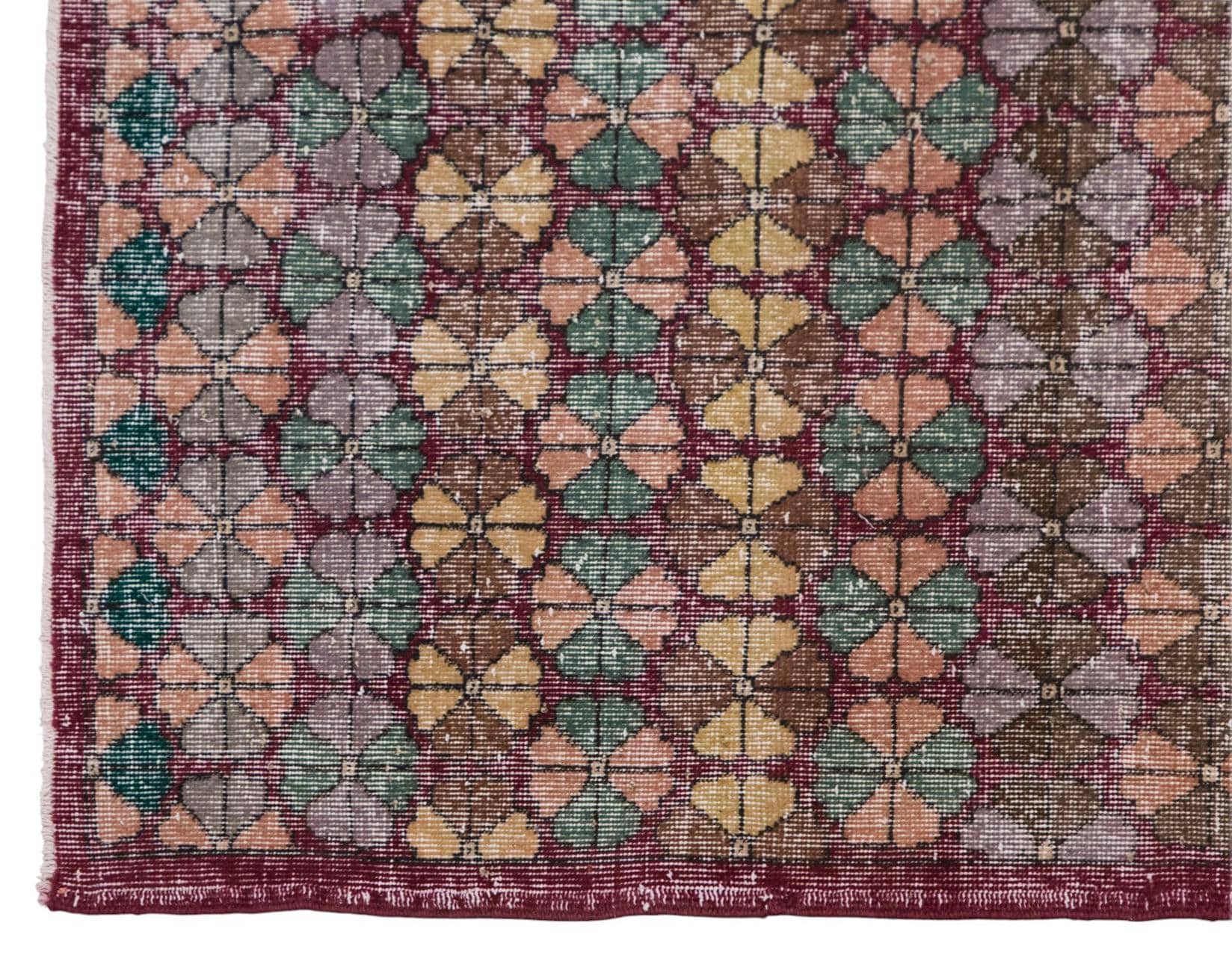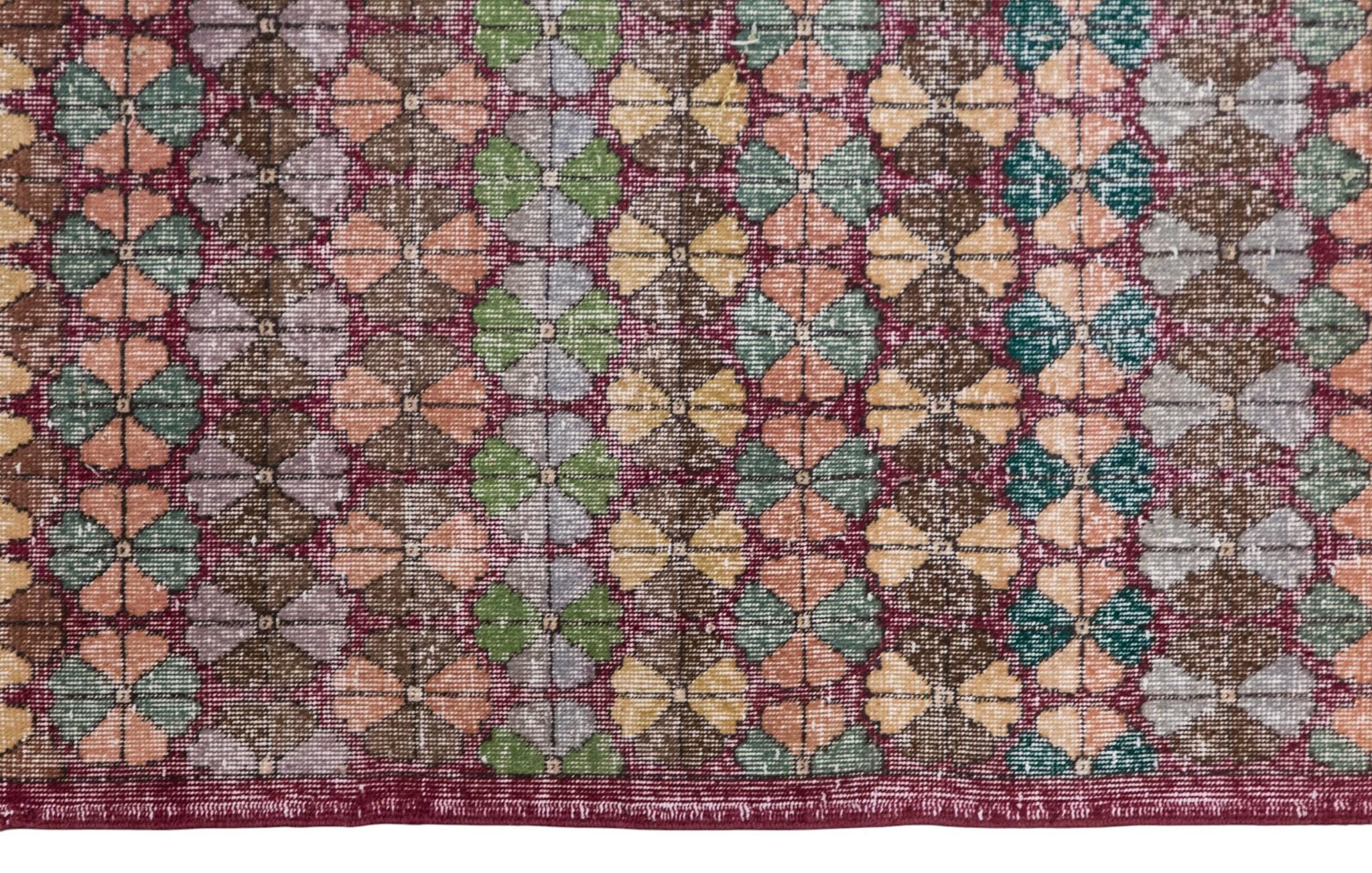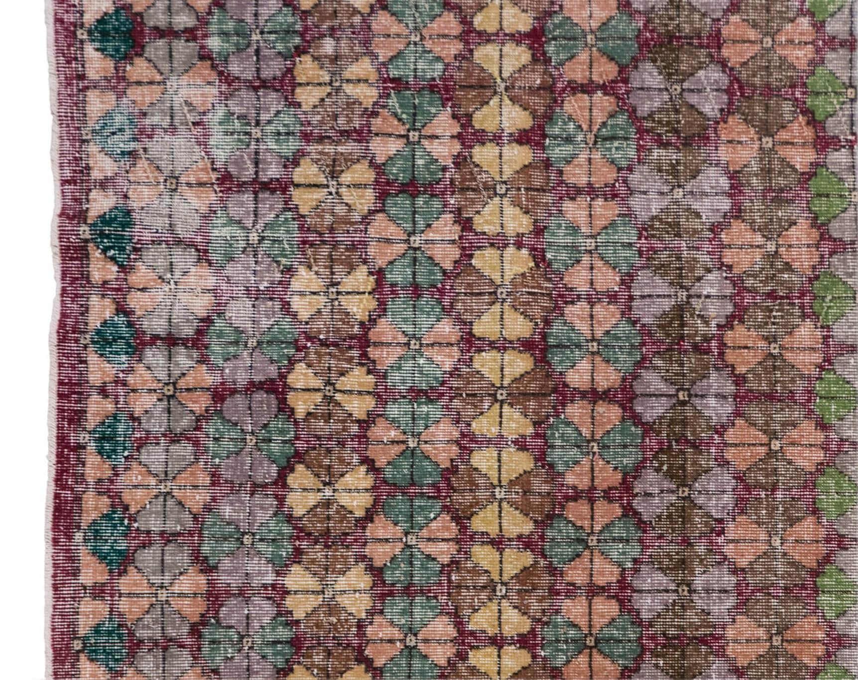 Bring timeless charm and character to your space with this authentic vintage Oushak rug. Handwoven by nomadic villagers, this 60+ years old piece features a beautiful combination of bohemian and traditional Caucasian design motifs.