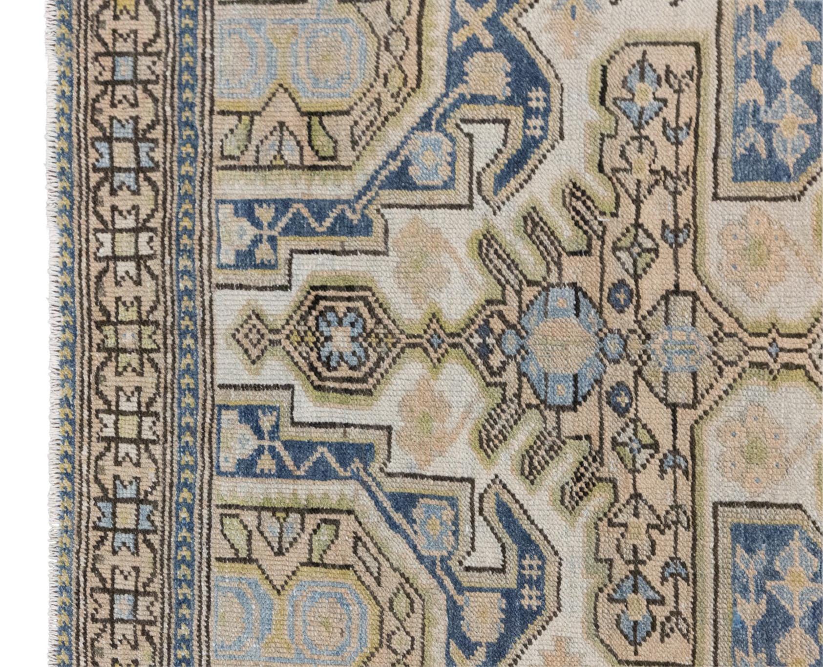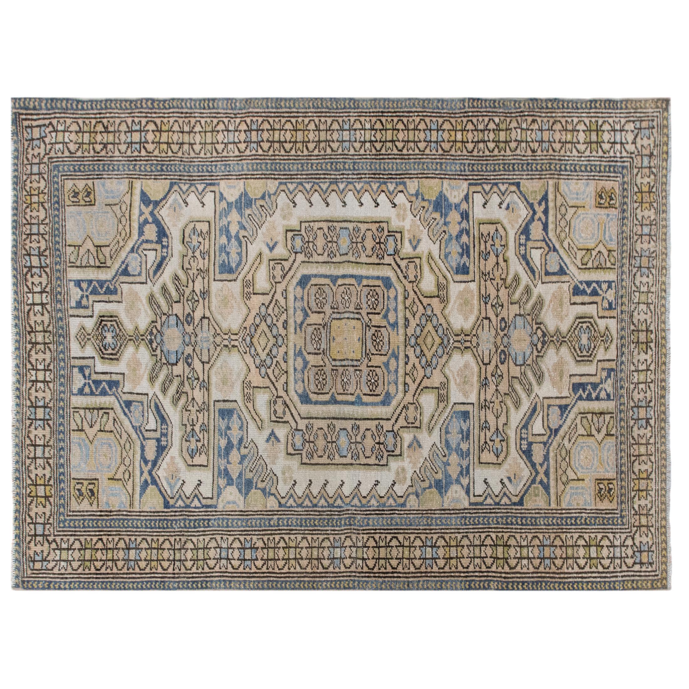 Bring timeless charm and character to your space with this authentic vintage Oushak rug. Handwoven by nomadic villagers, this 60+ years old piece features a beautiful combination of bohemian and traditional Caucasian design motifs.