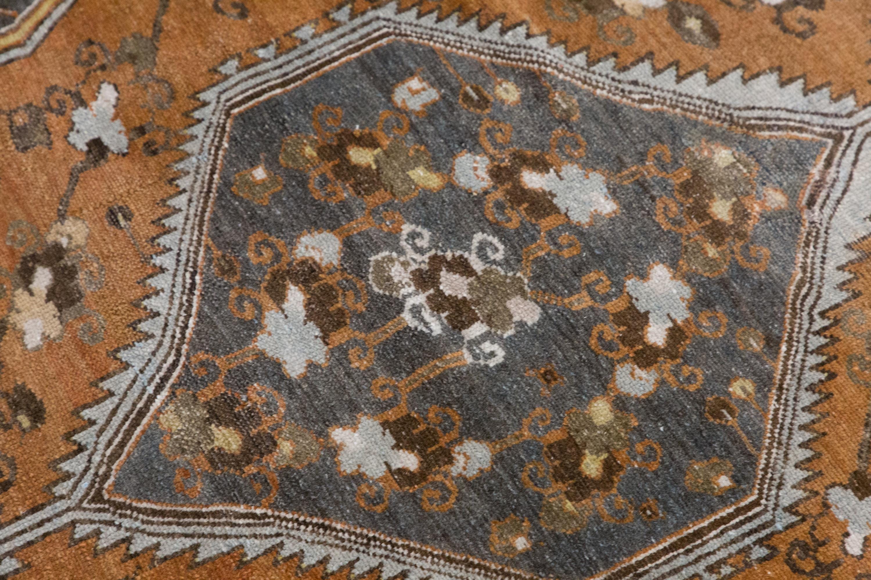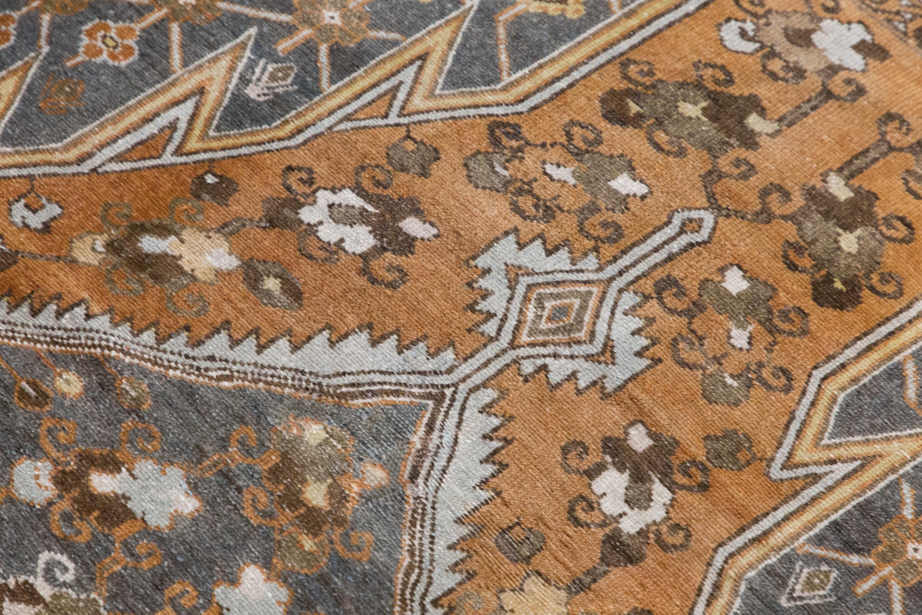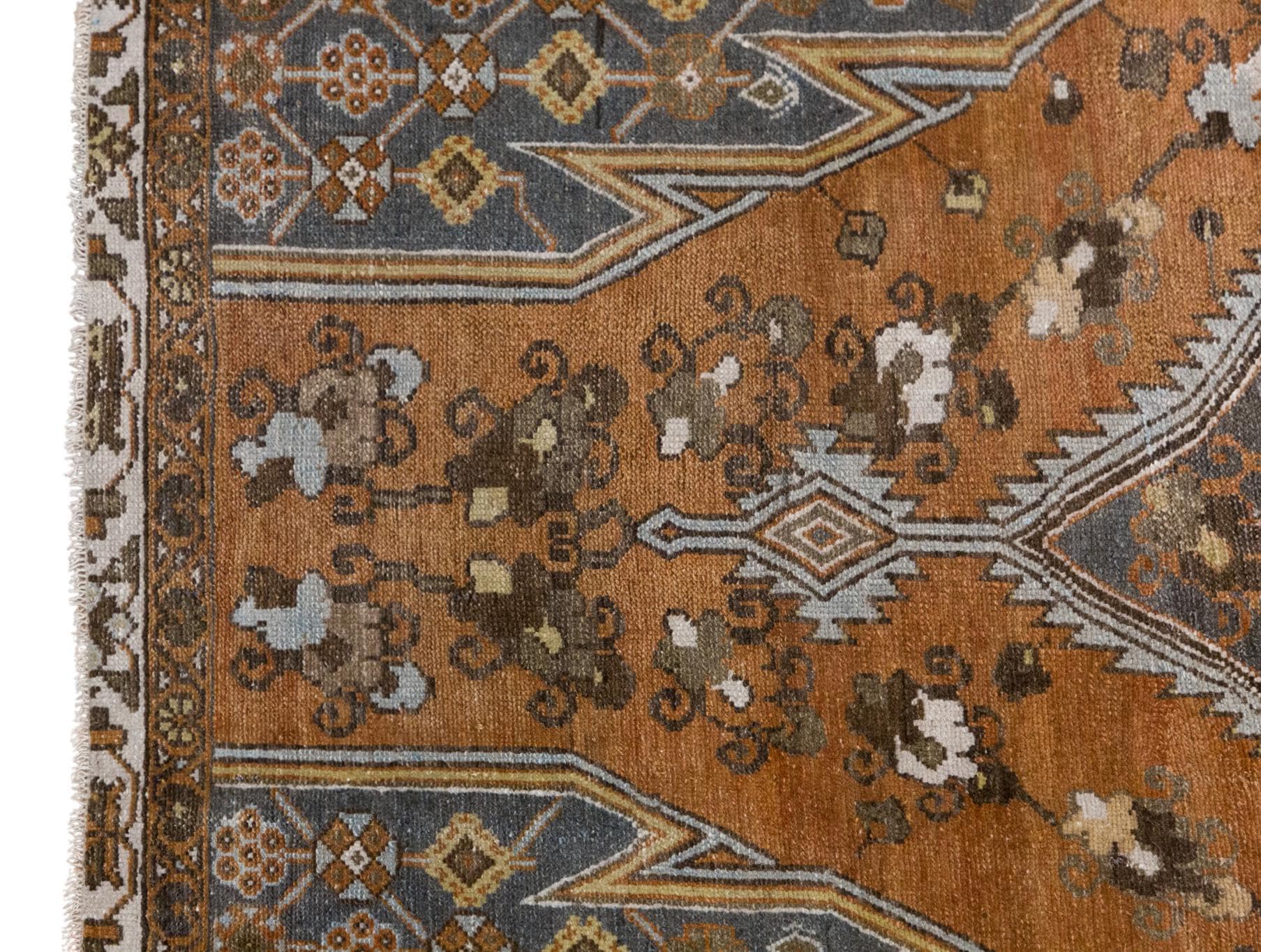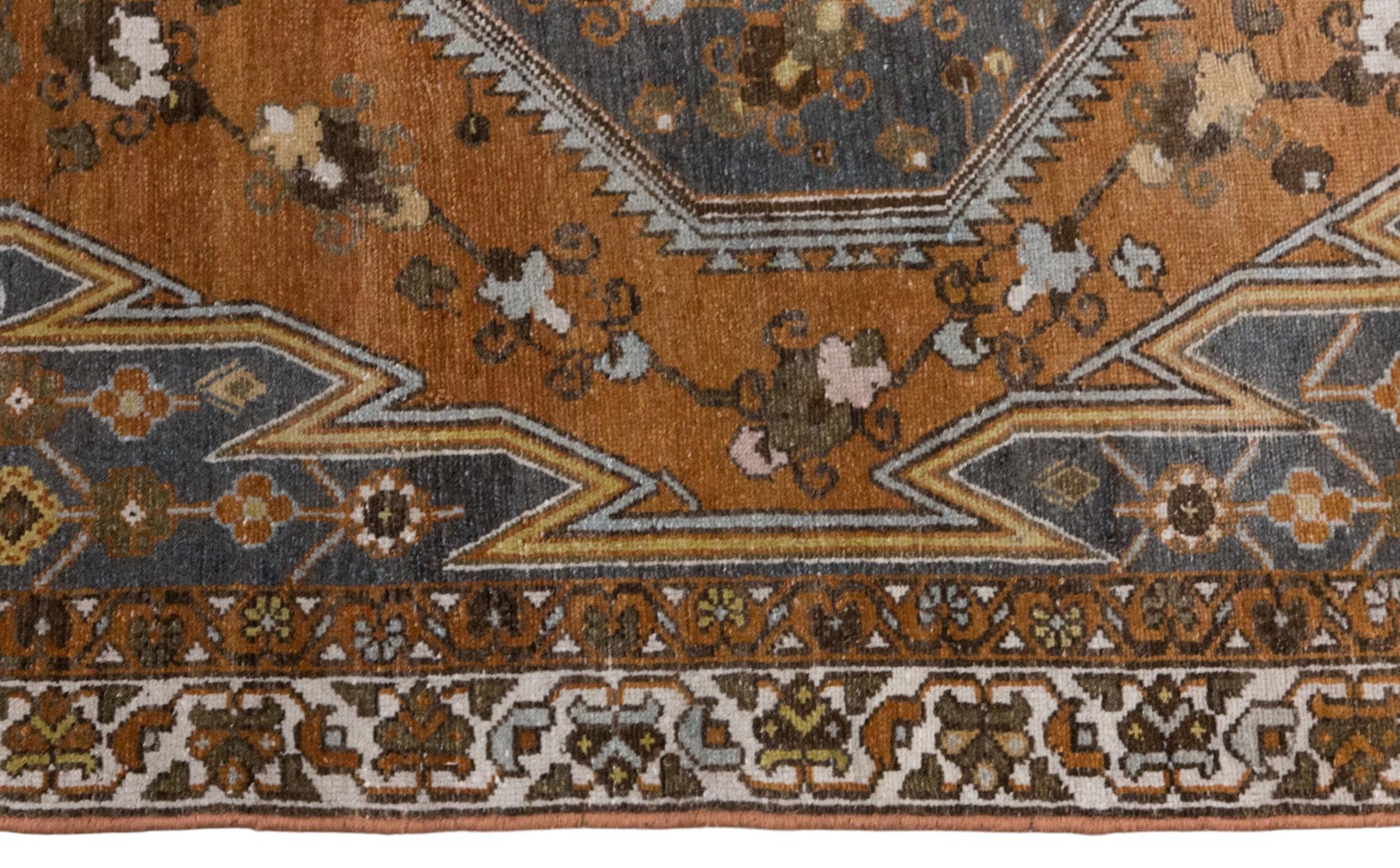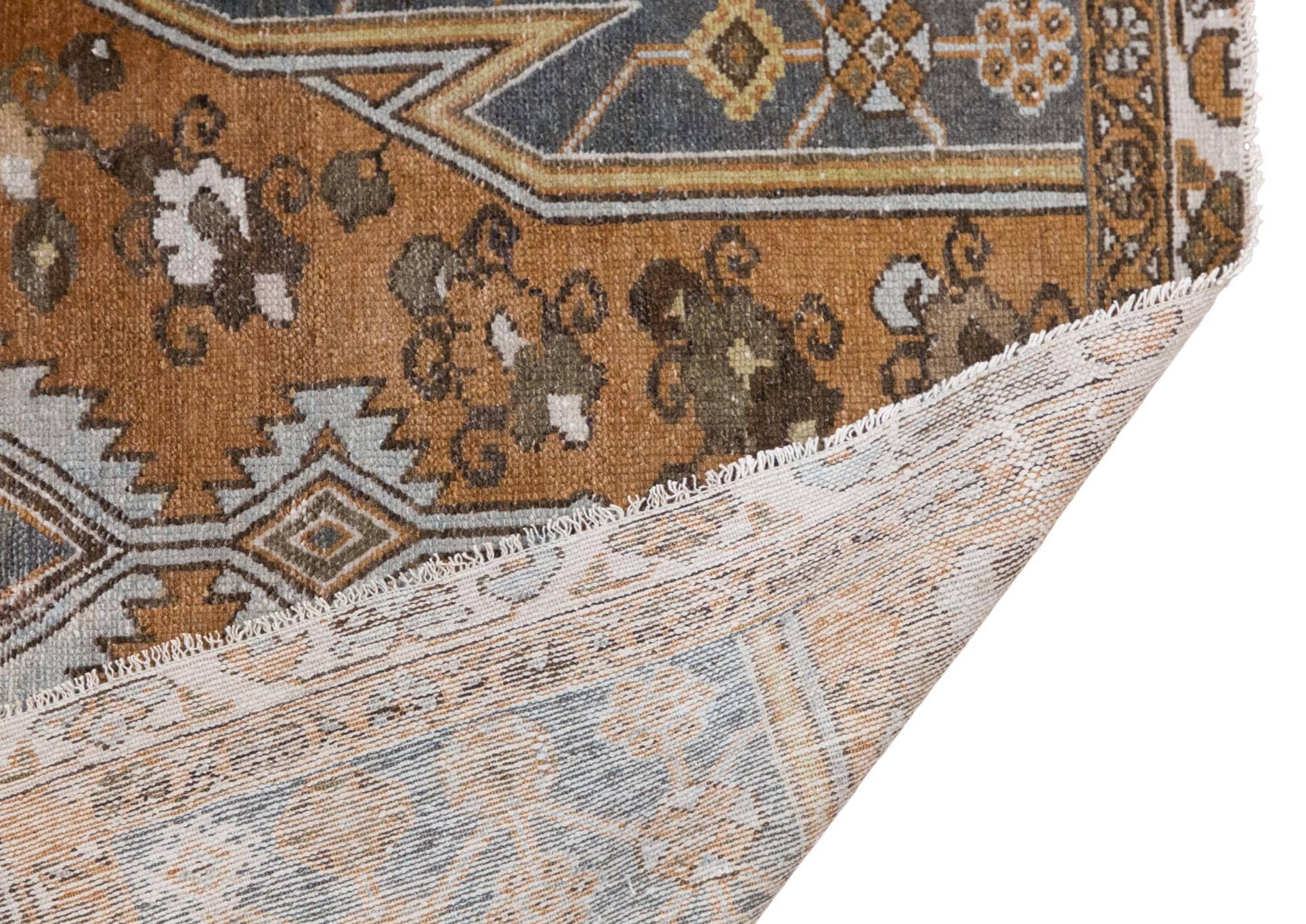 Bring timeless charm and character to your space with this authentic vintage Oushak rug. Handwoven by nomadic villagers, this 60+ years old piece features a beautiful combination of bohemian and traditional Caucasian design motifs.