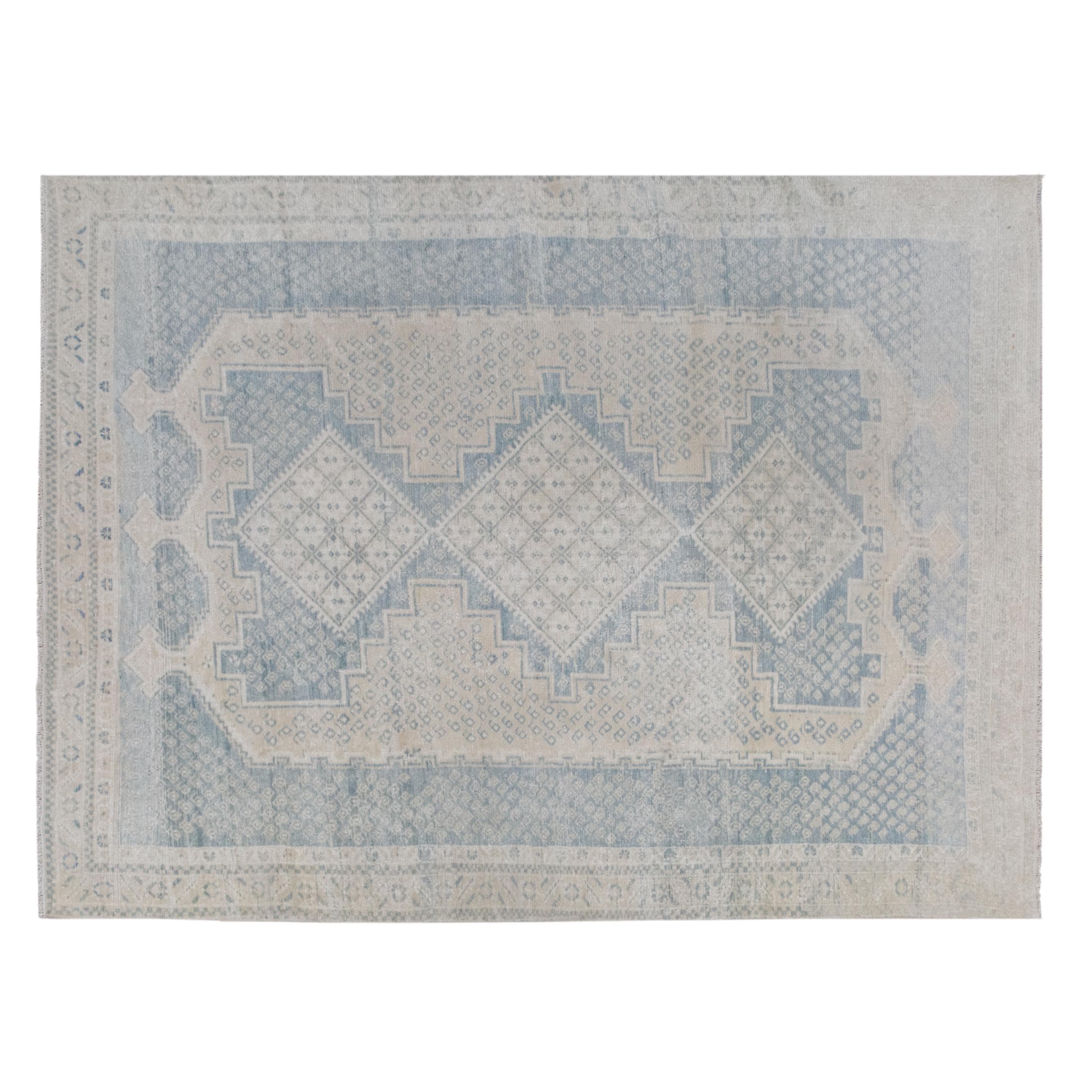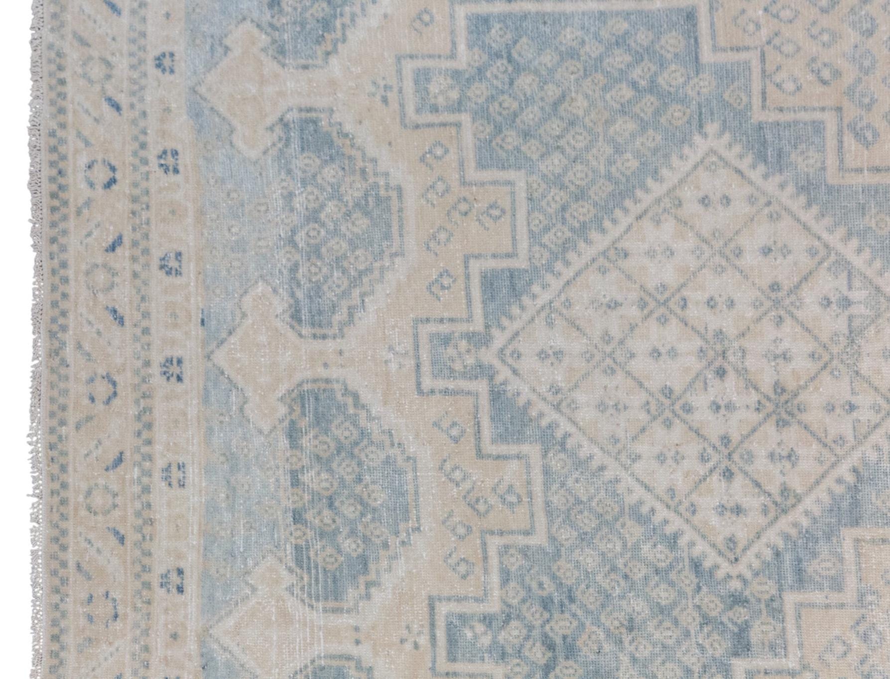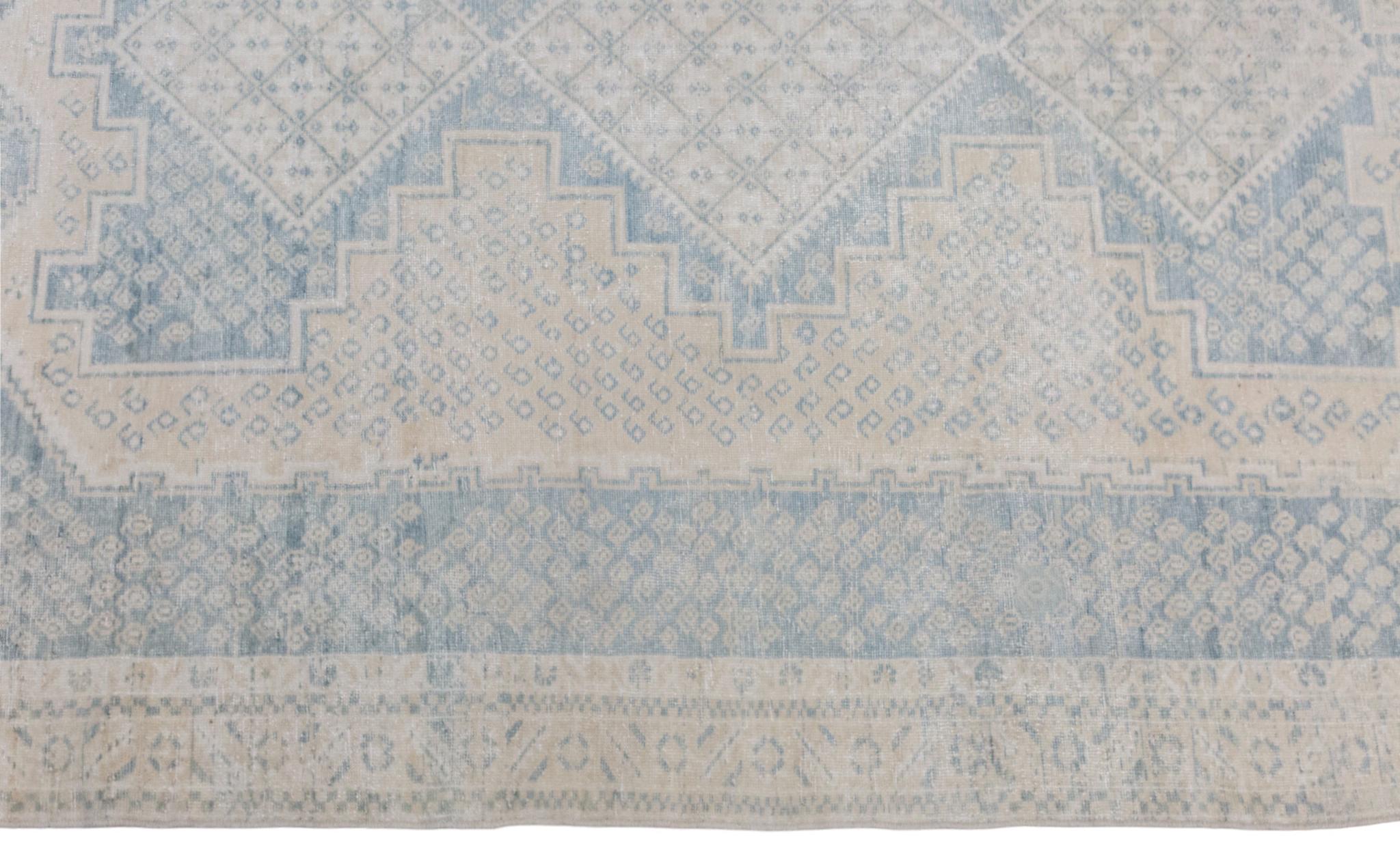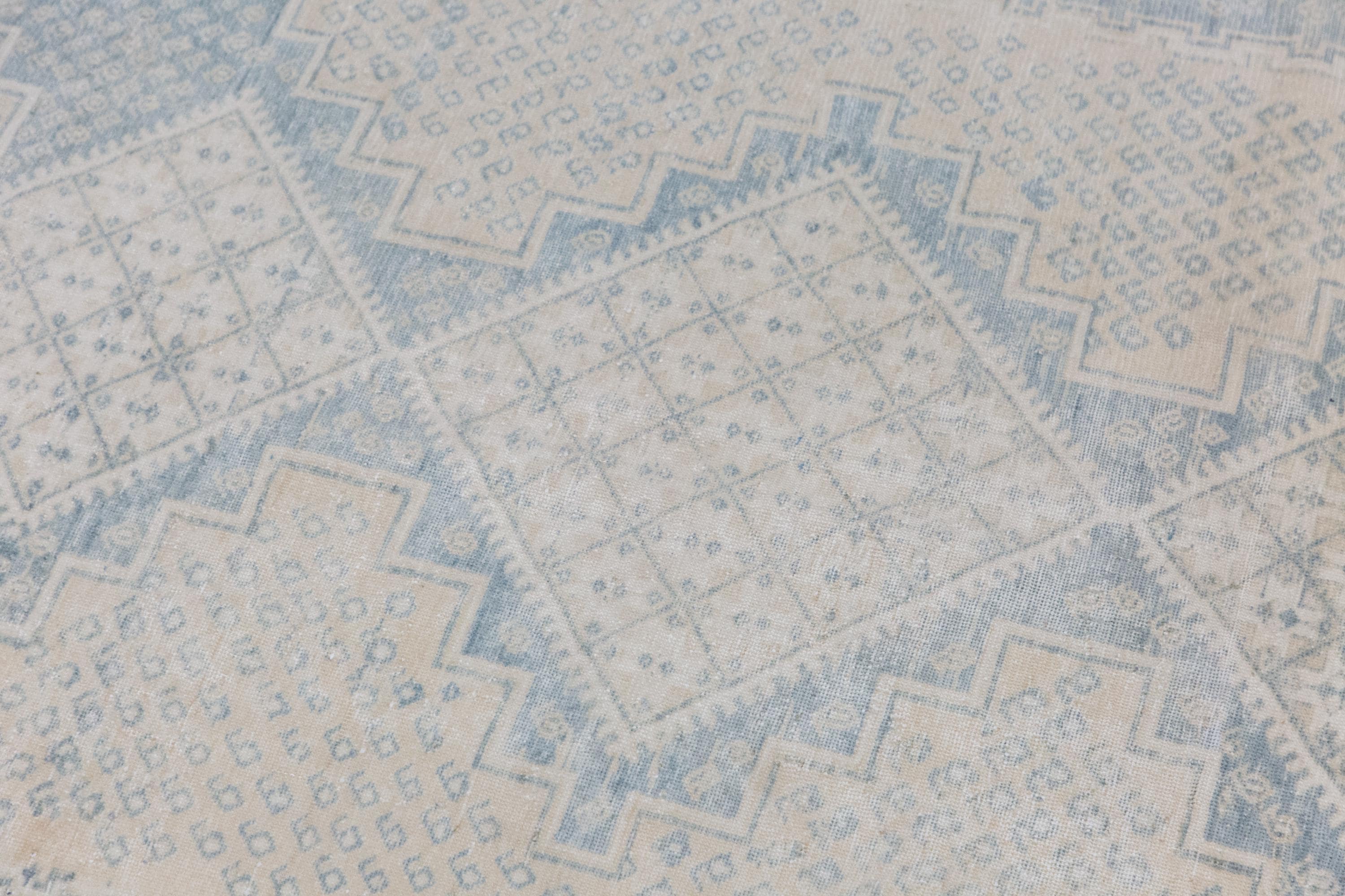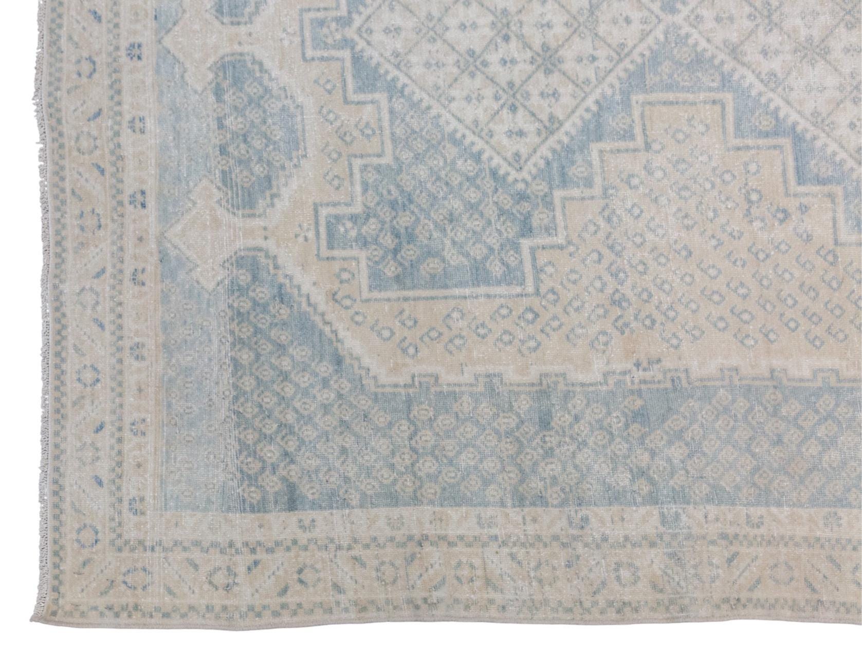 Bring timeless charm and character to your space with this authentic vintage Oushak rug. Handwoven by nomadic villagers, this 60+ years old piece features a beautiful combination of bohemian and traditional Caucasian design motifs.