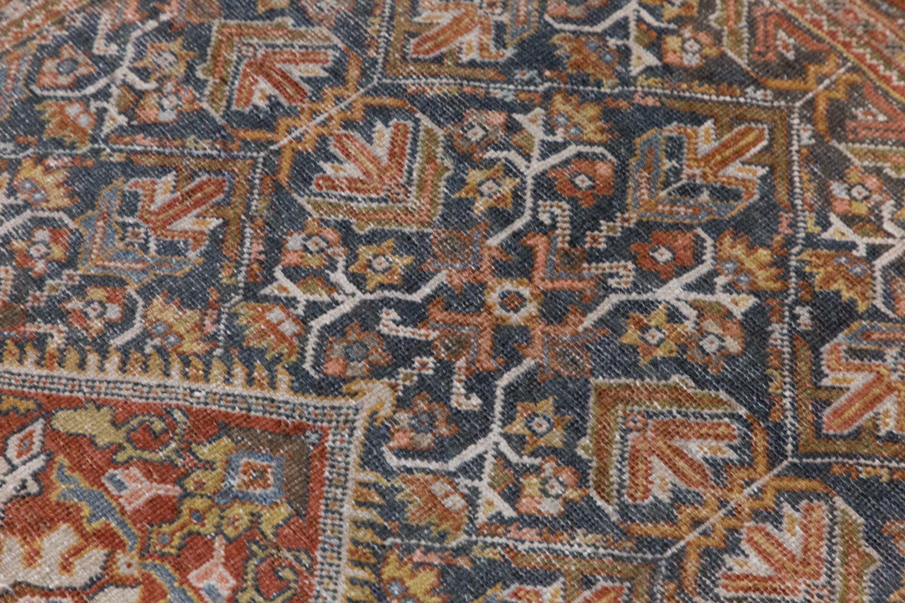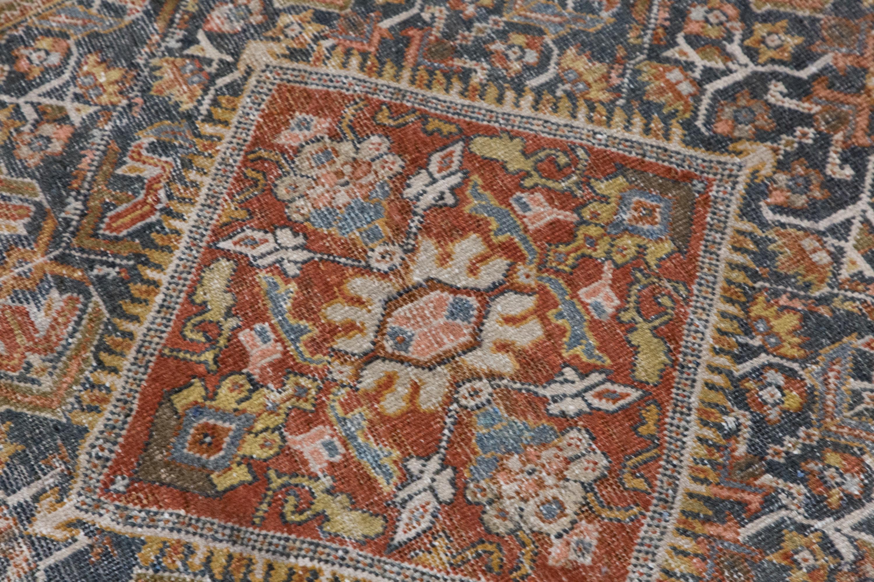 Bring timeless charm and character to your space with this authentic vintage Oushak rug. Handwoven by nomadic villagers, this 60+ years old piece features a beautiful combination of bohemian and traditional Caucasian design motifs.