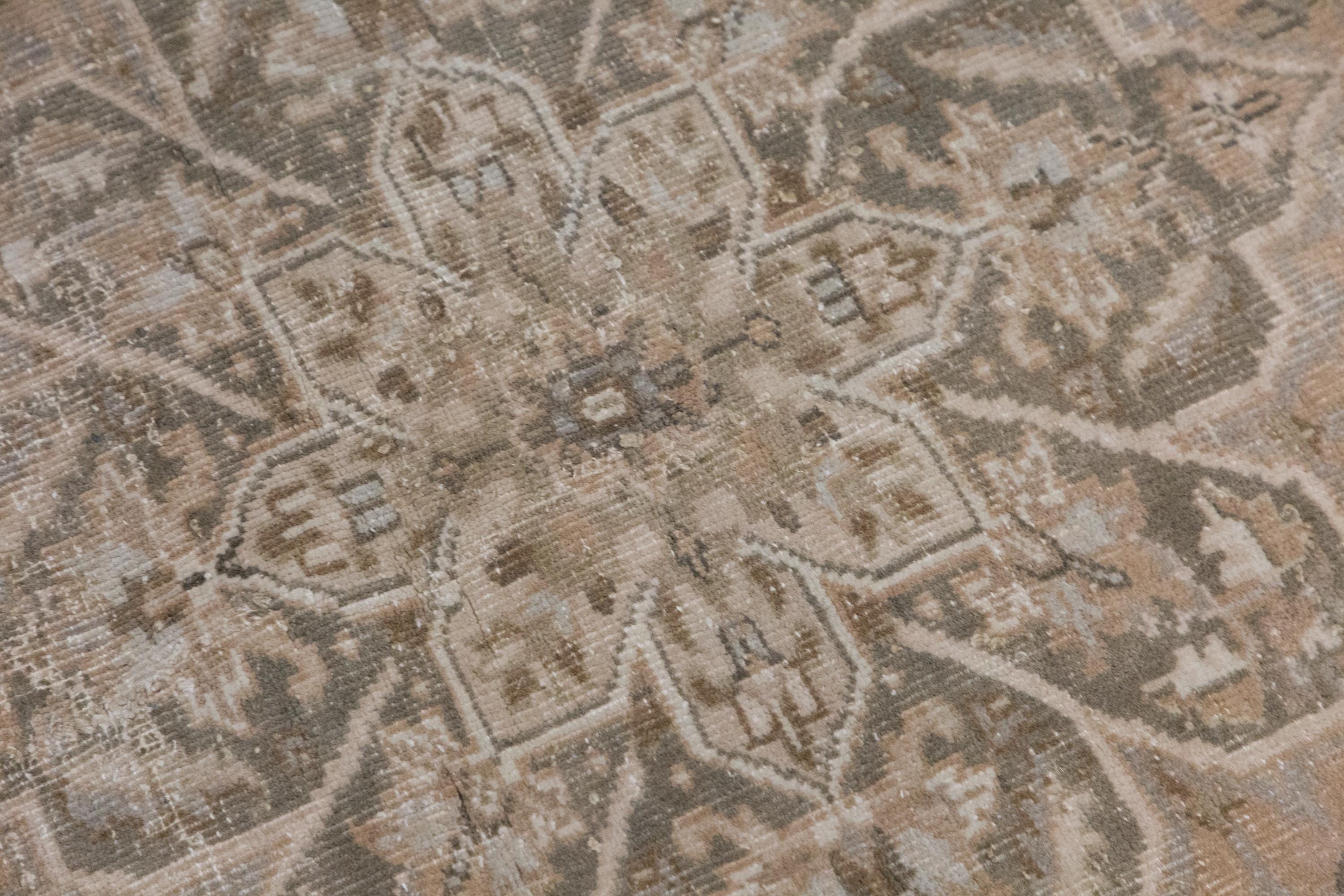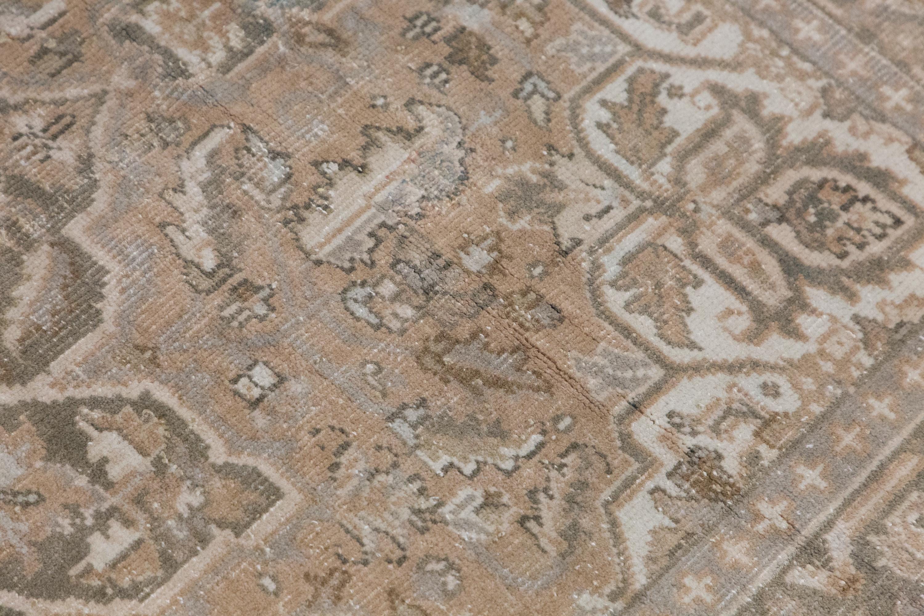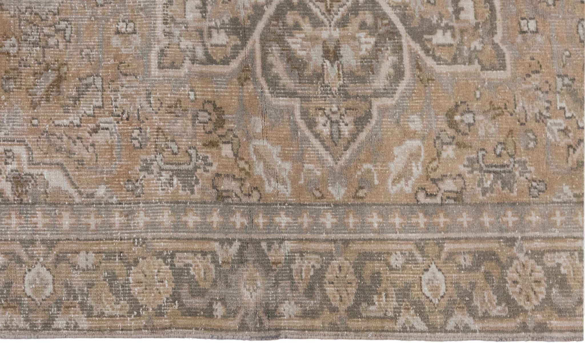 Bring timeless charm and character to your space with this authentic vintage Oushak rug. Handwoven by nomadic villagers, this 60+ years old piece features a beautiful combination of bohemian and traditional Caucasian design motifs.