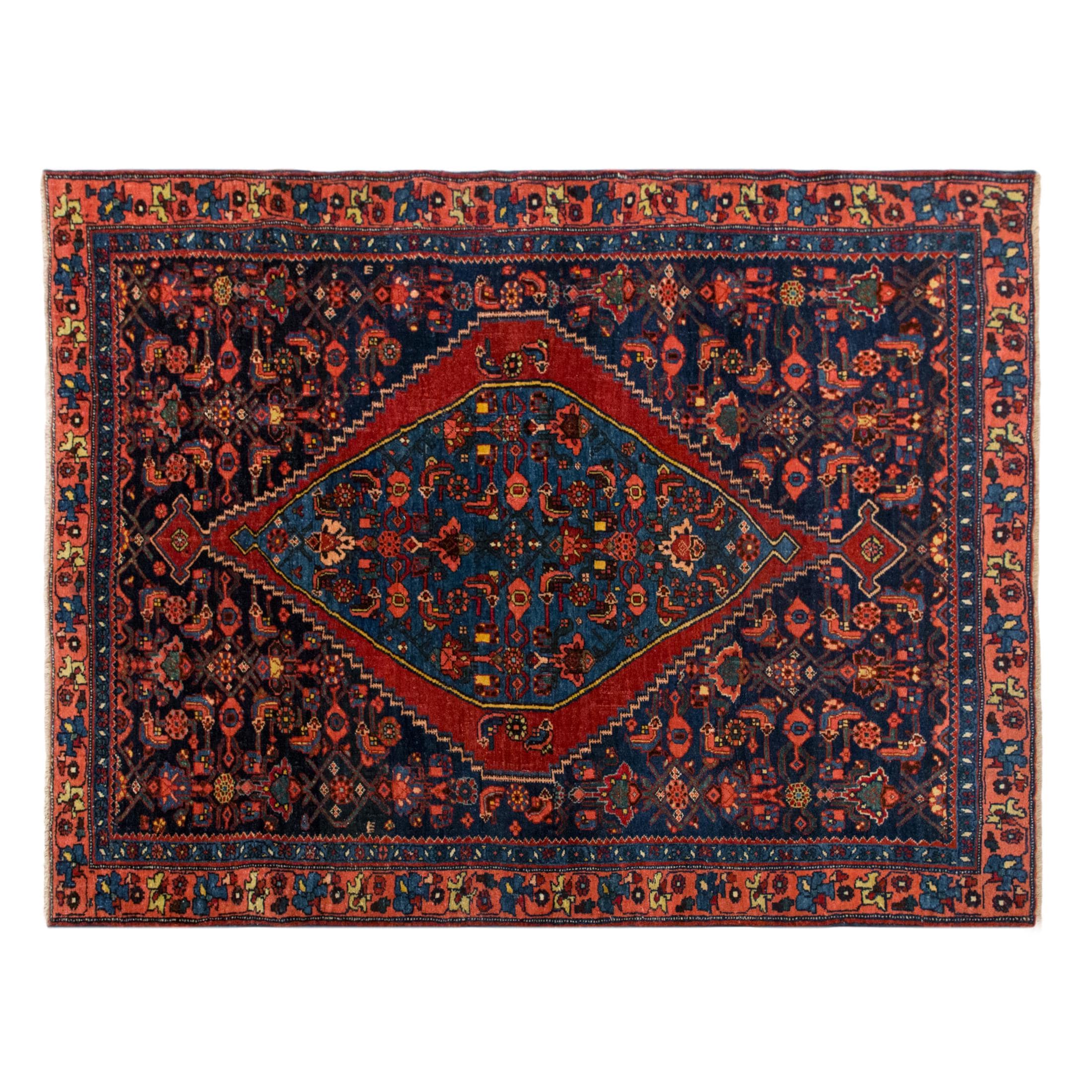 ✨ Vintage Oushak Rug – 108 x 148 cm / 3'6" x 4'10" – 60+ yrs Old Handmade Area Rug – Bohemian & Traditional Caucasian Design