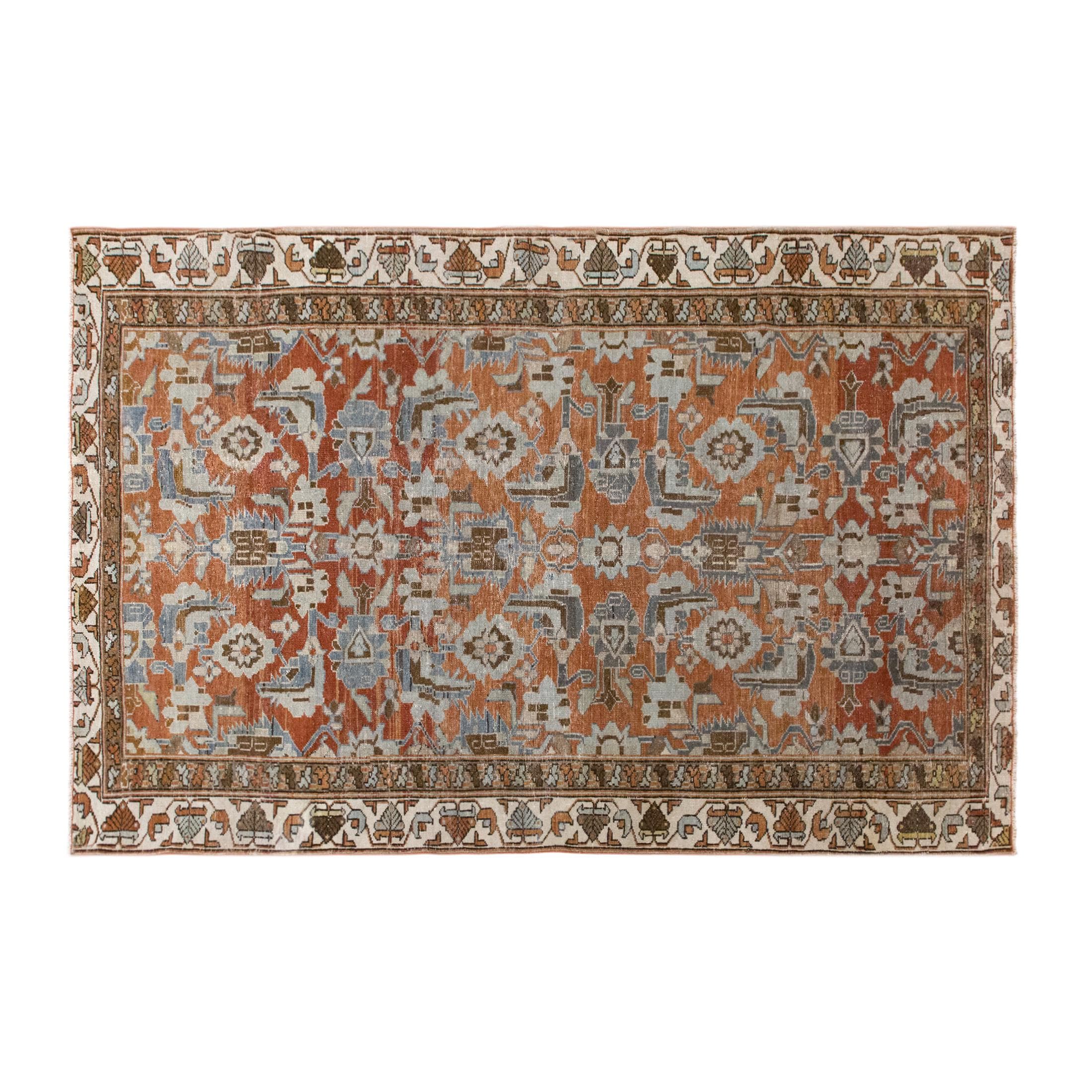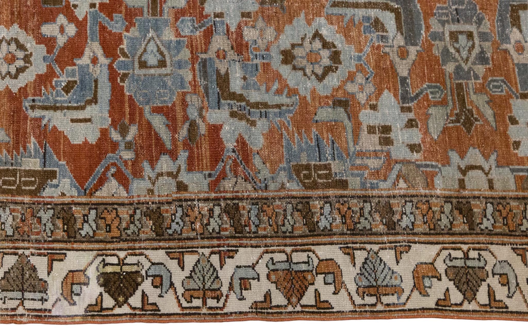 Bring timeless charm and character to your home with this authentic vintage Oushak rug. Handwoven by nomadic villagers, this 60+ years old piece showcases a beautiful blend of bohemian and traditional Caucasian motifs.
