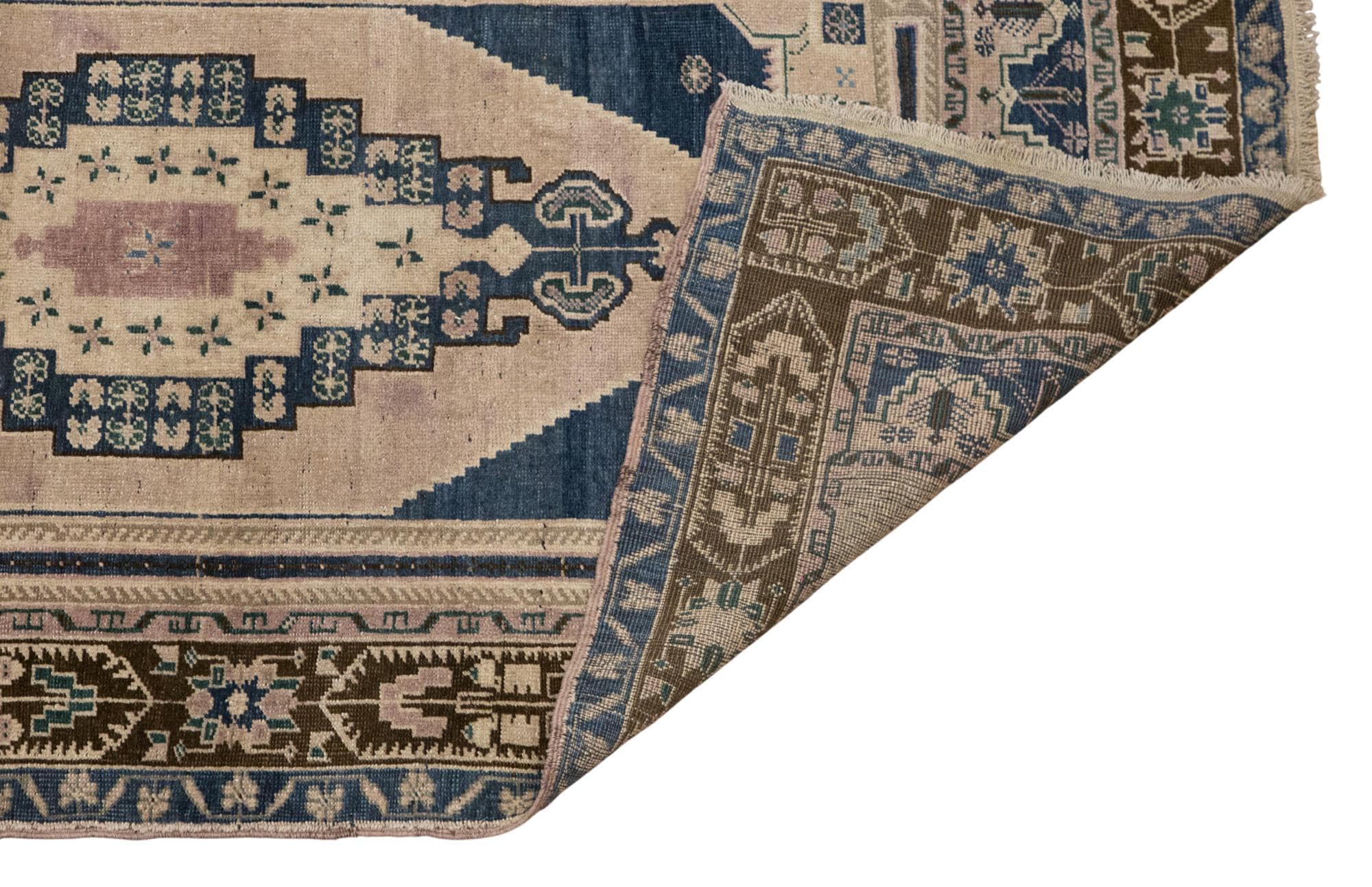 A beautiful handwoven vintage Oushak rug, reflecting traditional Turkish nomadic craftsmanship with a timeless bohemian and oriental design. Perfect for interior design lovers seeking character, warmth, and authenticity.