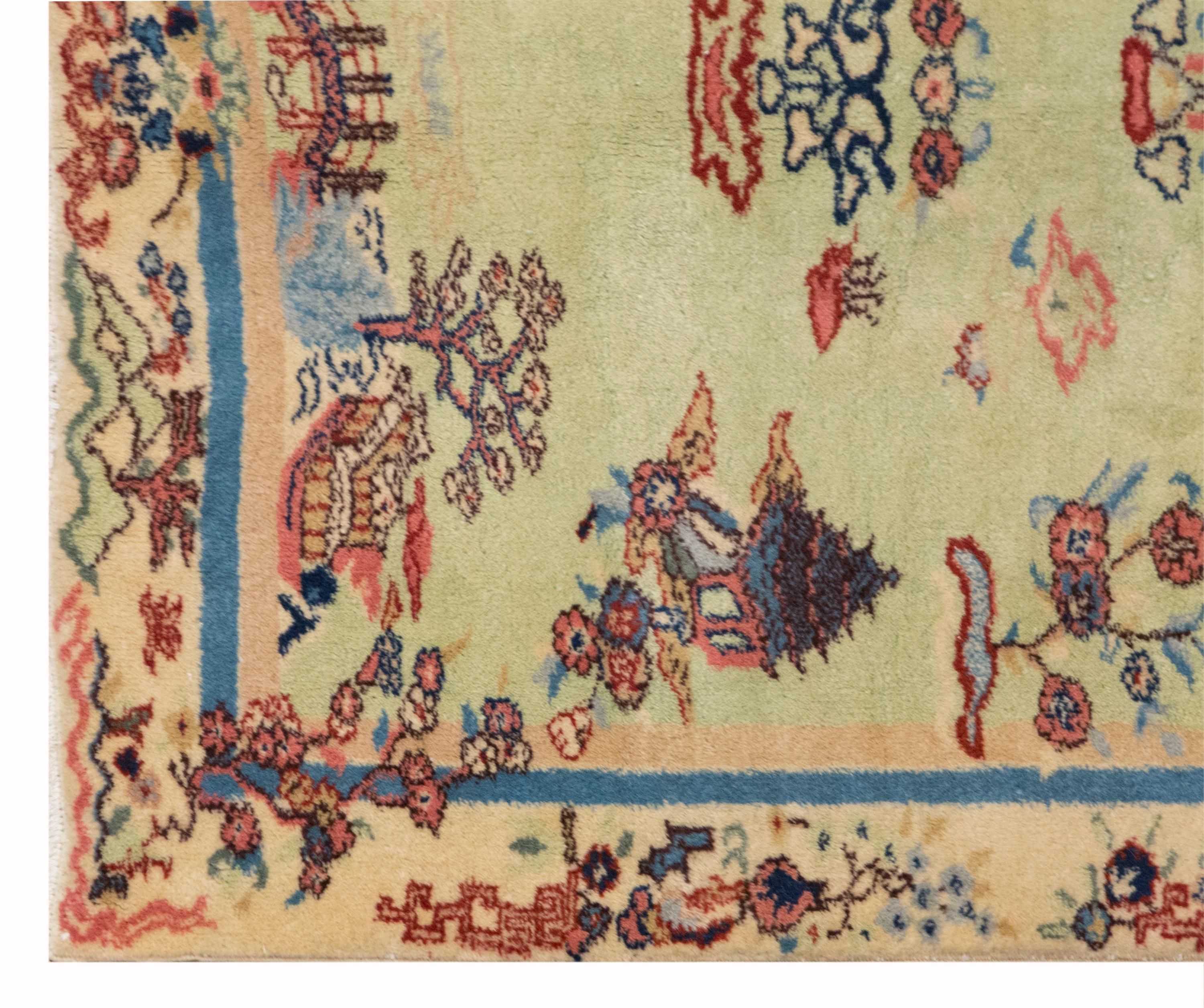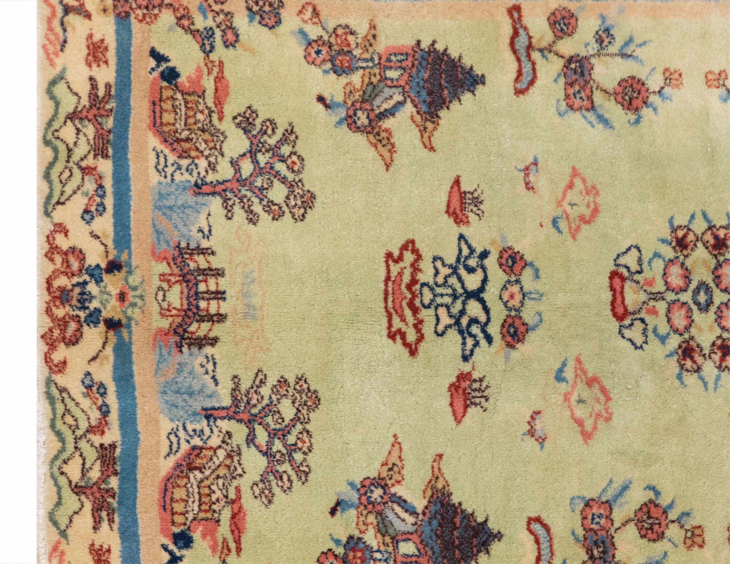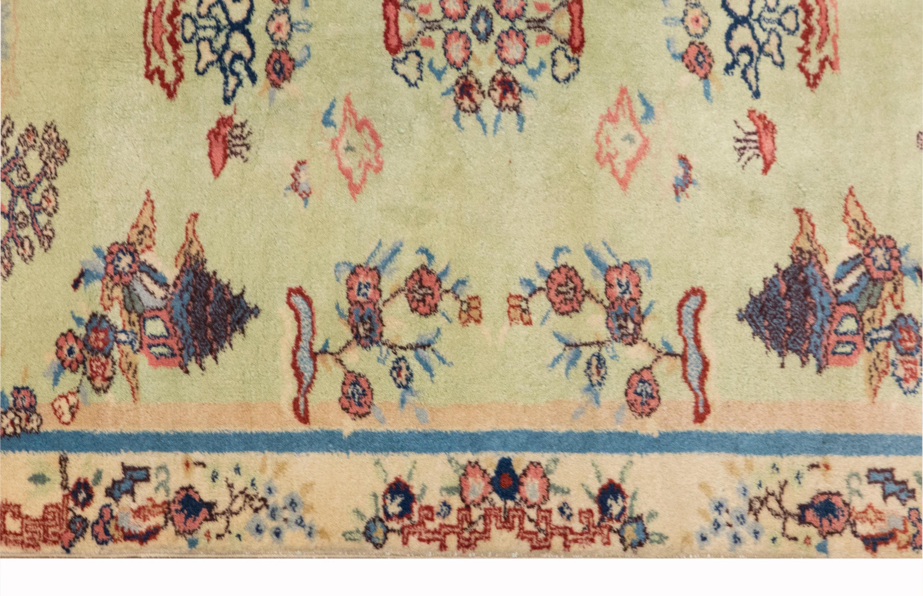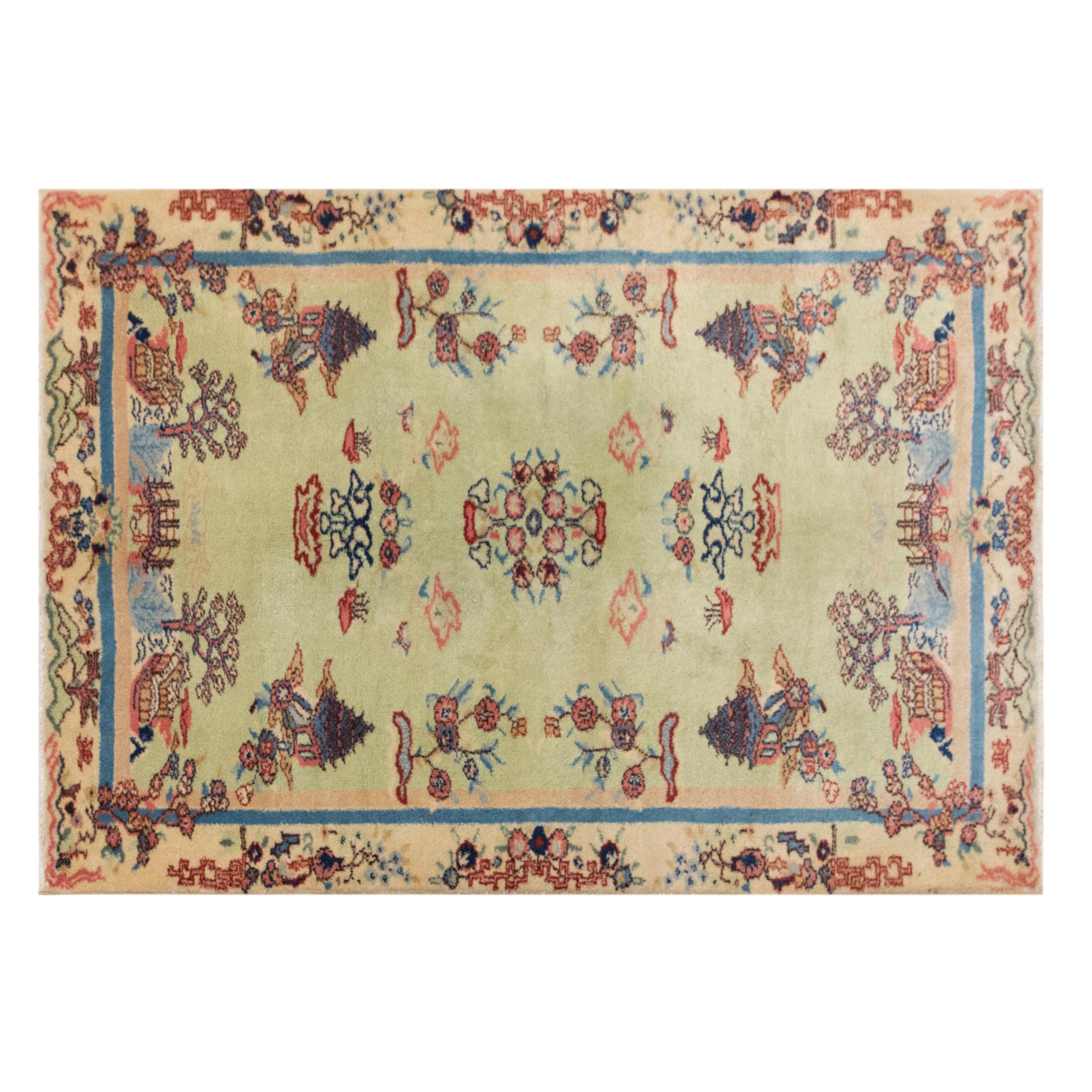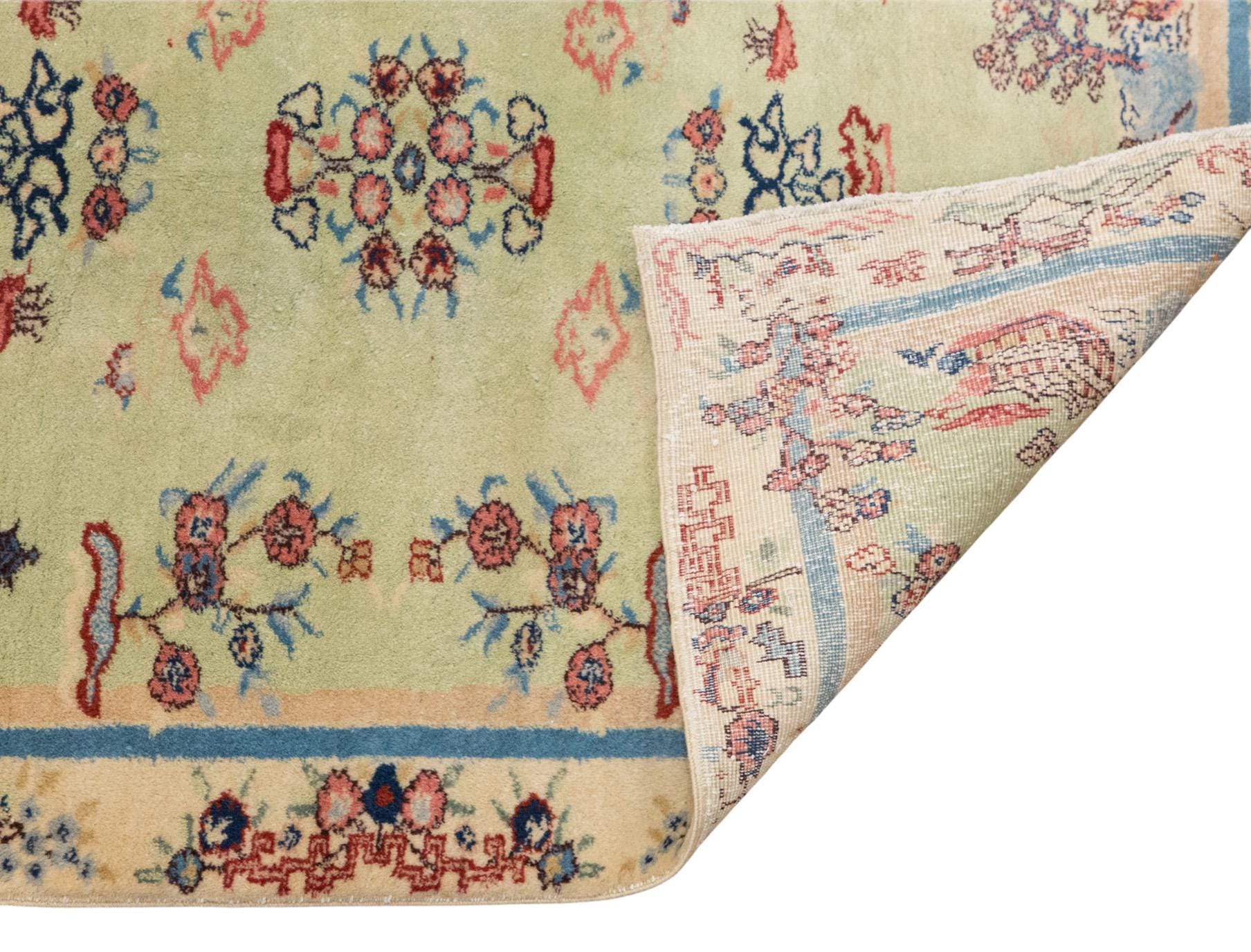 Due to the vintage nature of this rug, colors may appear slightly different under artificial or indoor lighting. The most accurate tones are best observed under natural daylight.