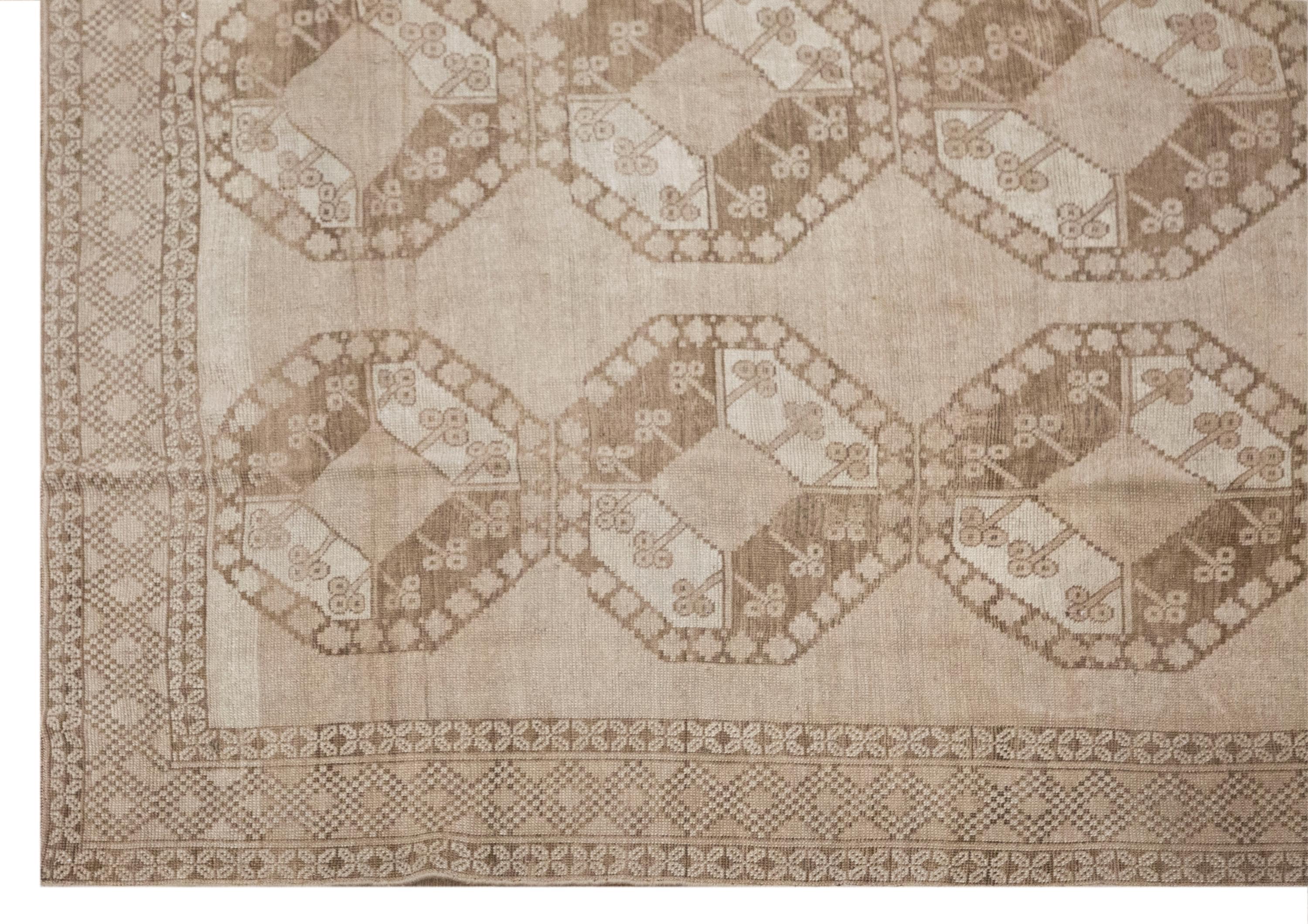 This is an authentic 60+ year old vintage Turkish rug, preserved in very good vintage condition with light, natural age wear consistent with genuine handmade rugs.