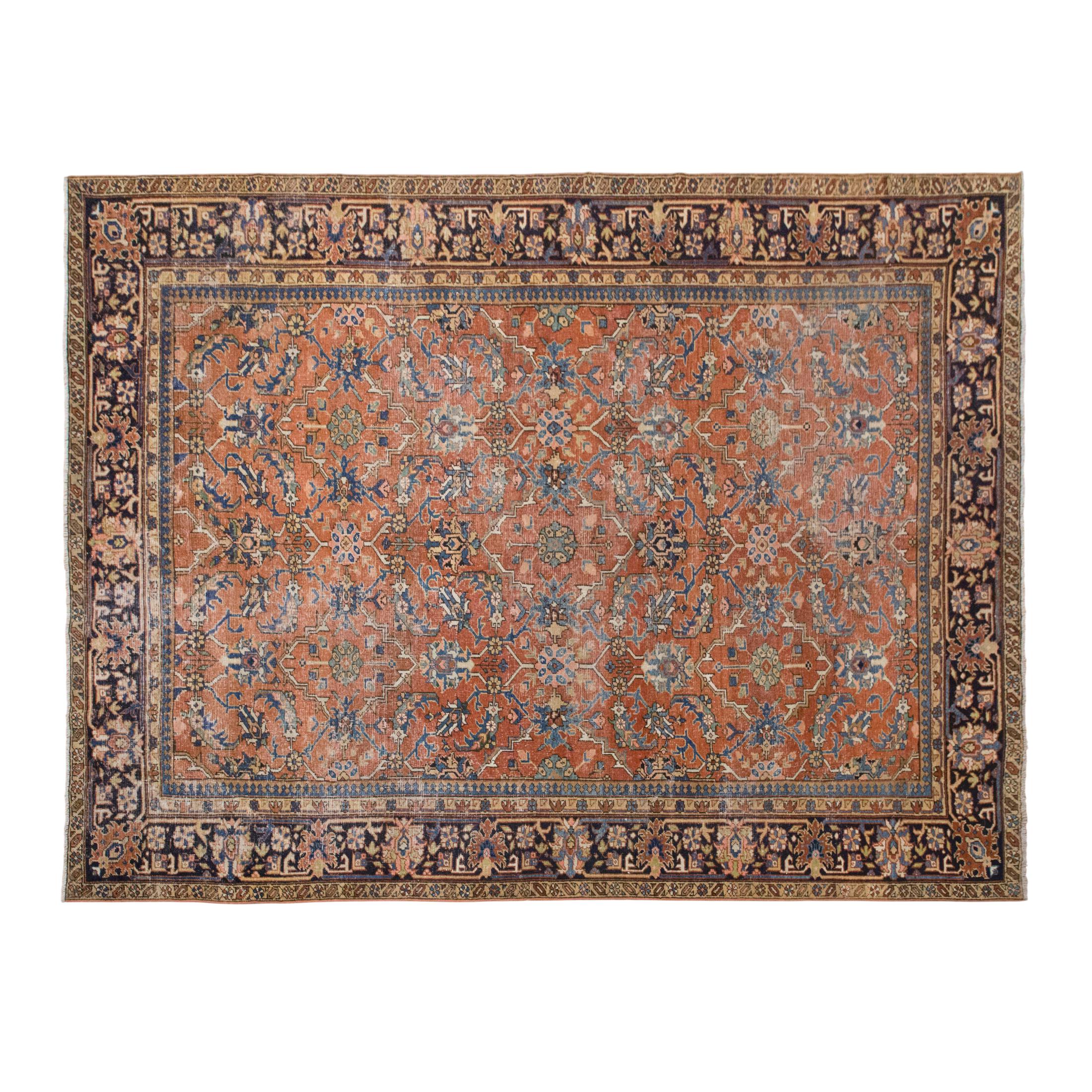 Due to the nature of vintage rugs, colors may appear slightly different depending on lighting conditions, especially indoors versus daylight.
