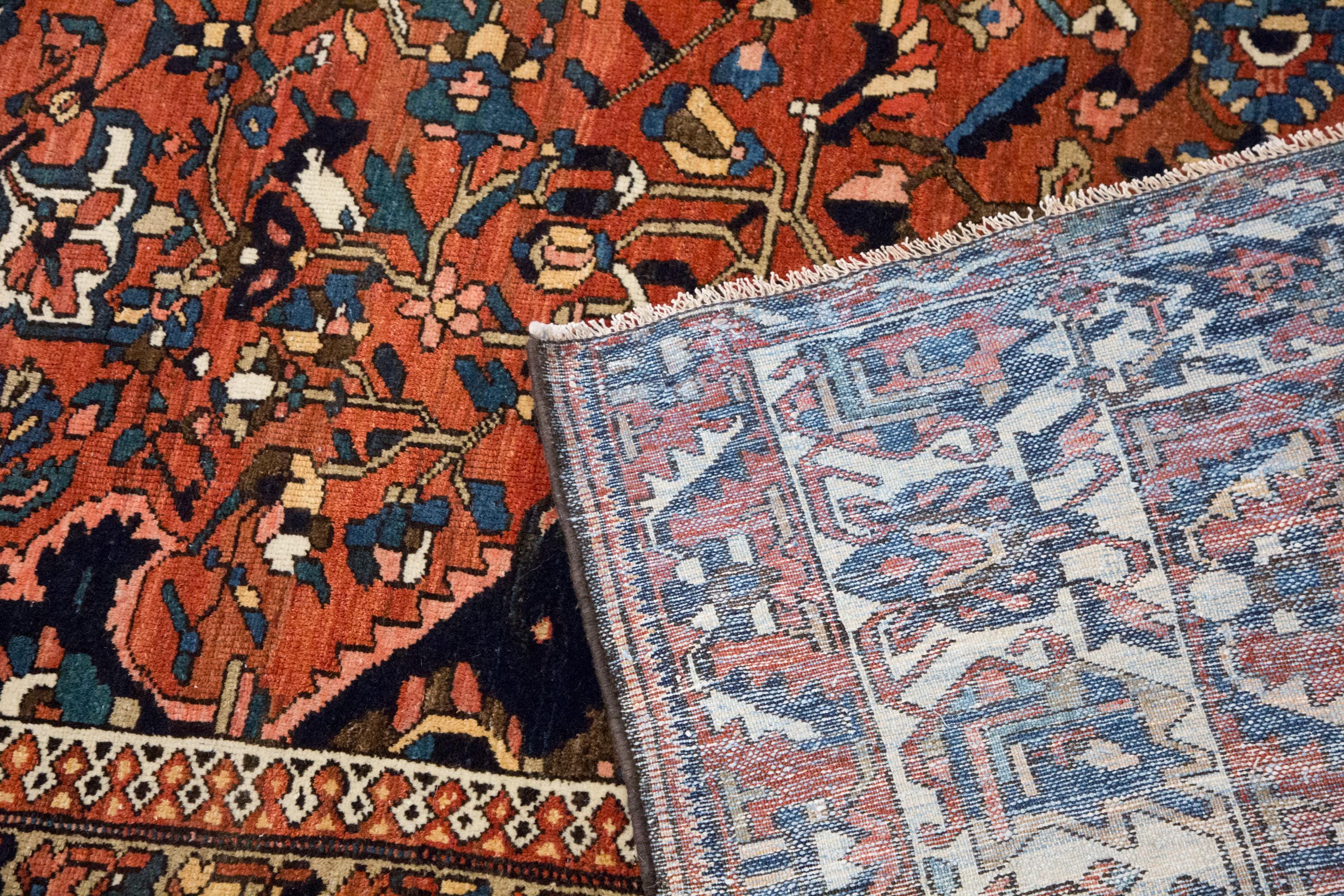 Due to the nature of vintage rugs, colors may appear slightly different depending on lighting conditions, especially indoors versus daylight.