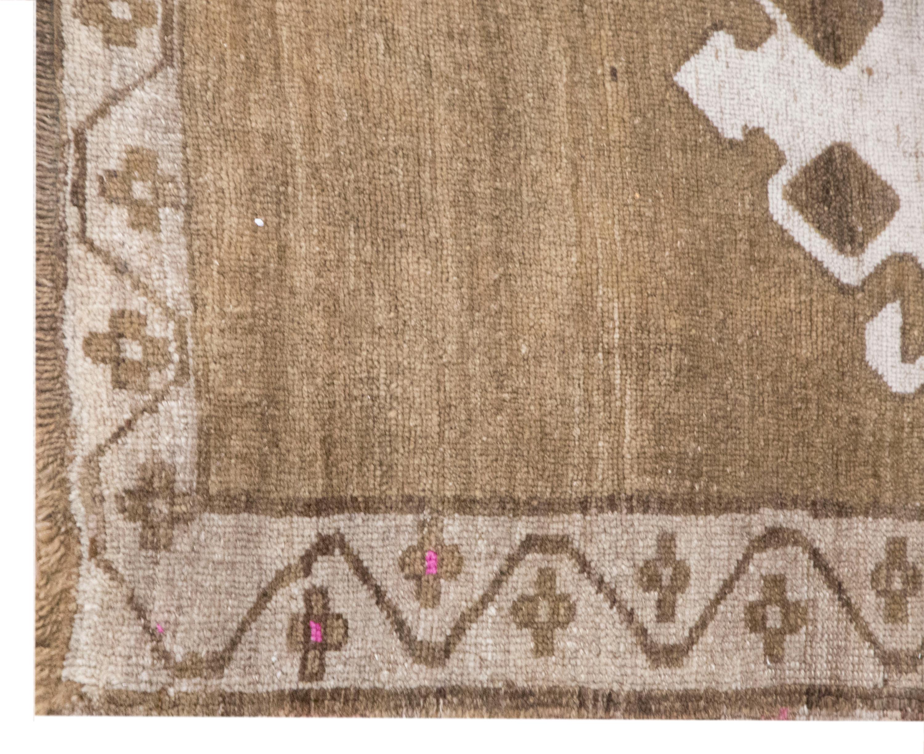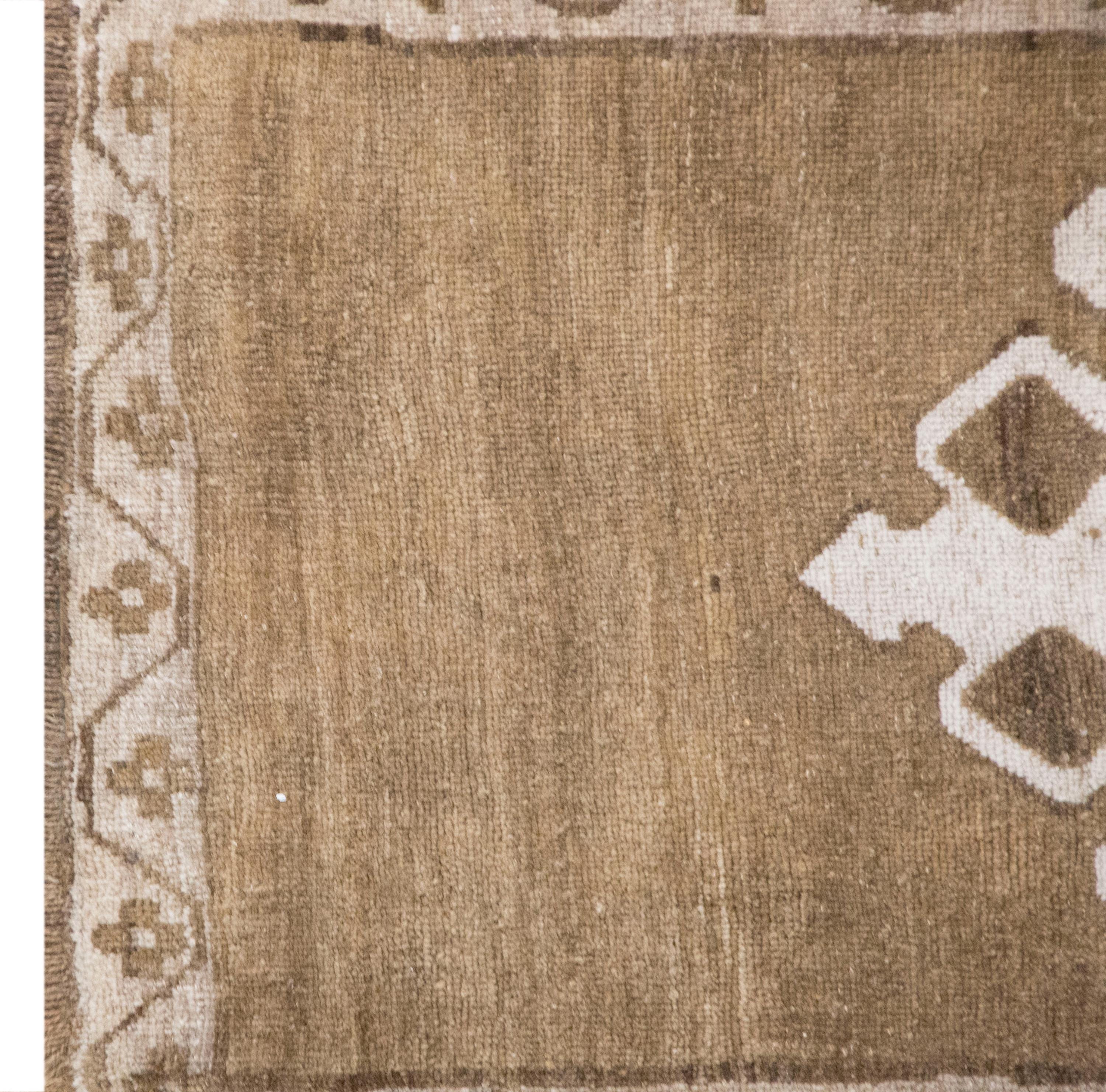 Classic Oushak design, perfect for boho, farmhouse, rustic, neutral, and modern interiors, or as a small accent rug.