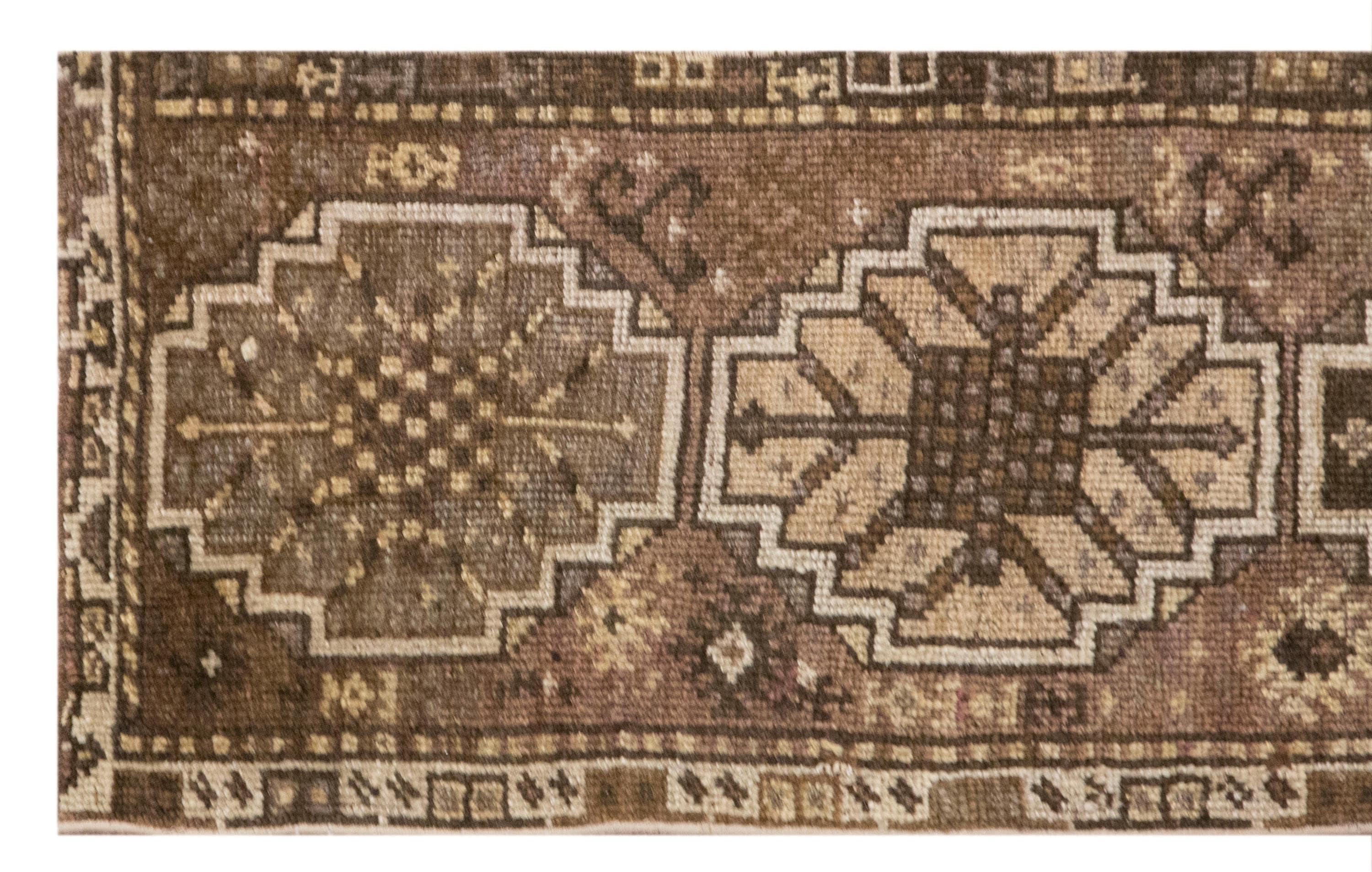 This is an authentic 60+ year old vintage Turkish runner rug, preserved in very good vintage condition with light, natural age wear consistent with genuine handmade rugs.