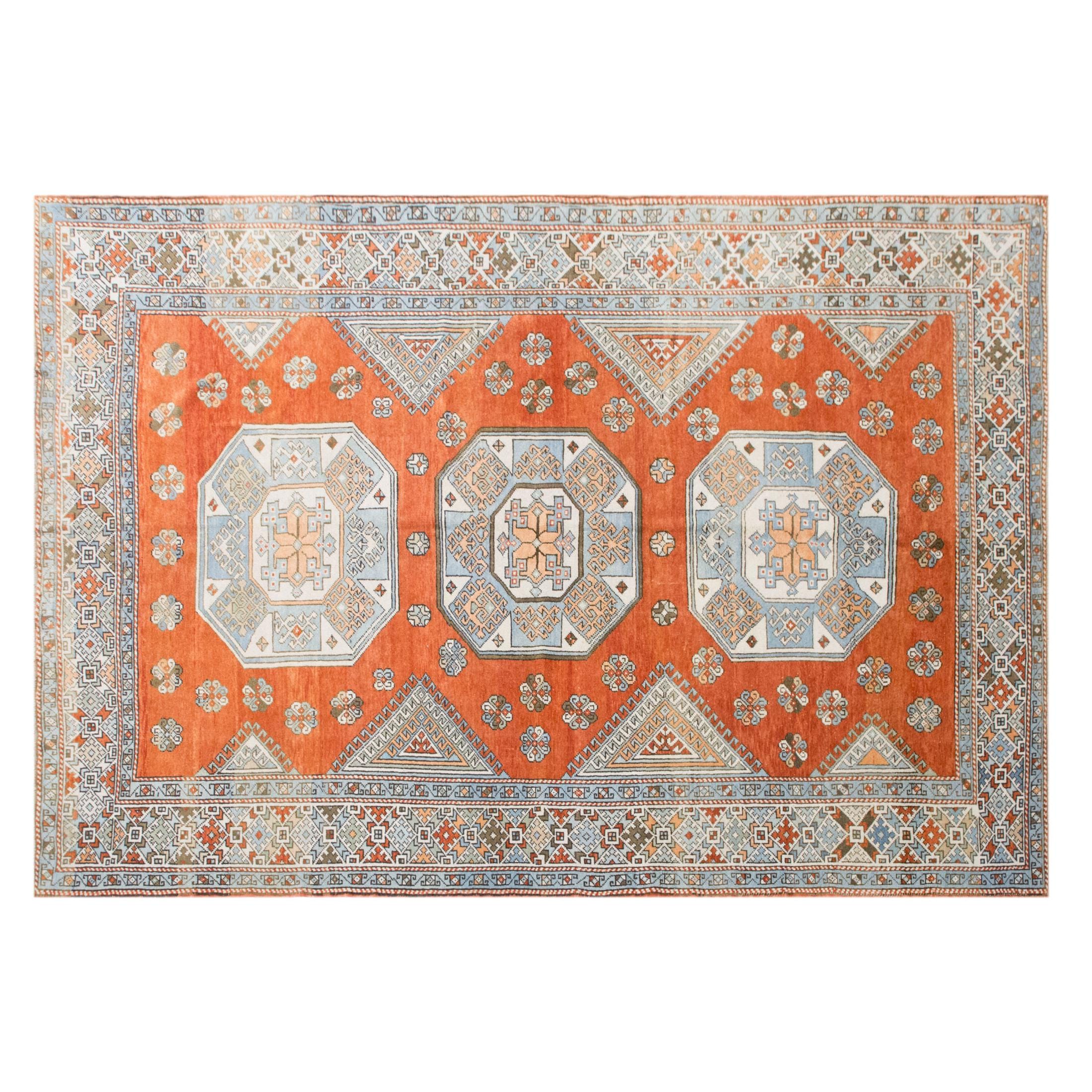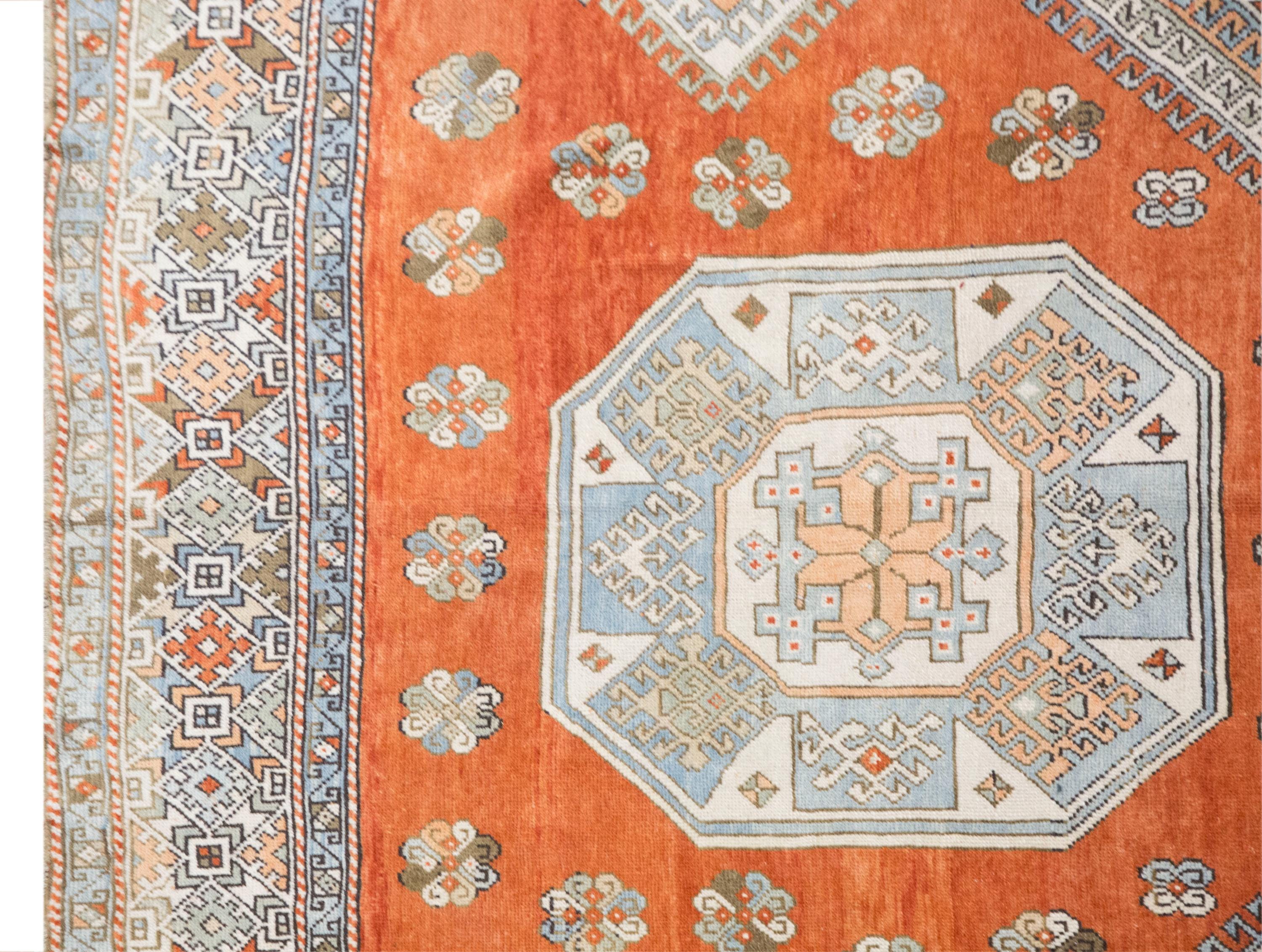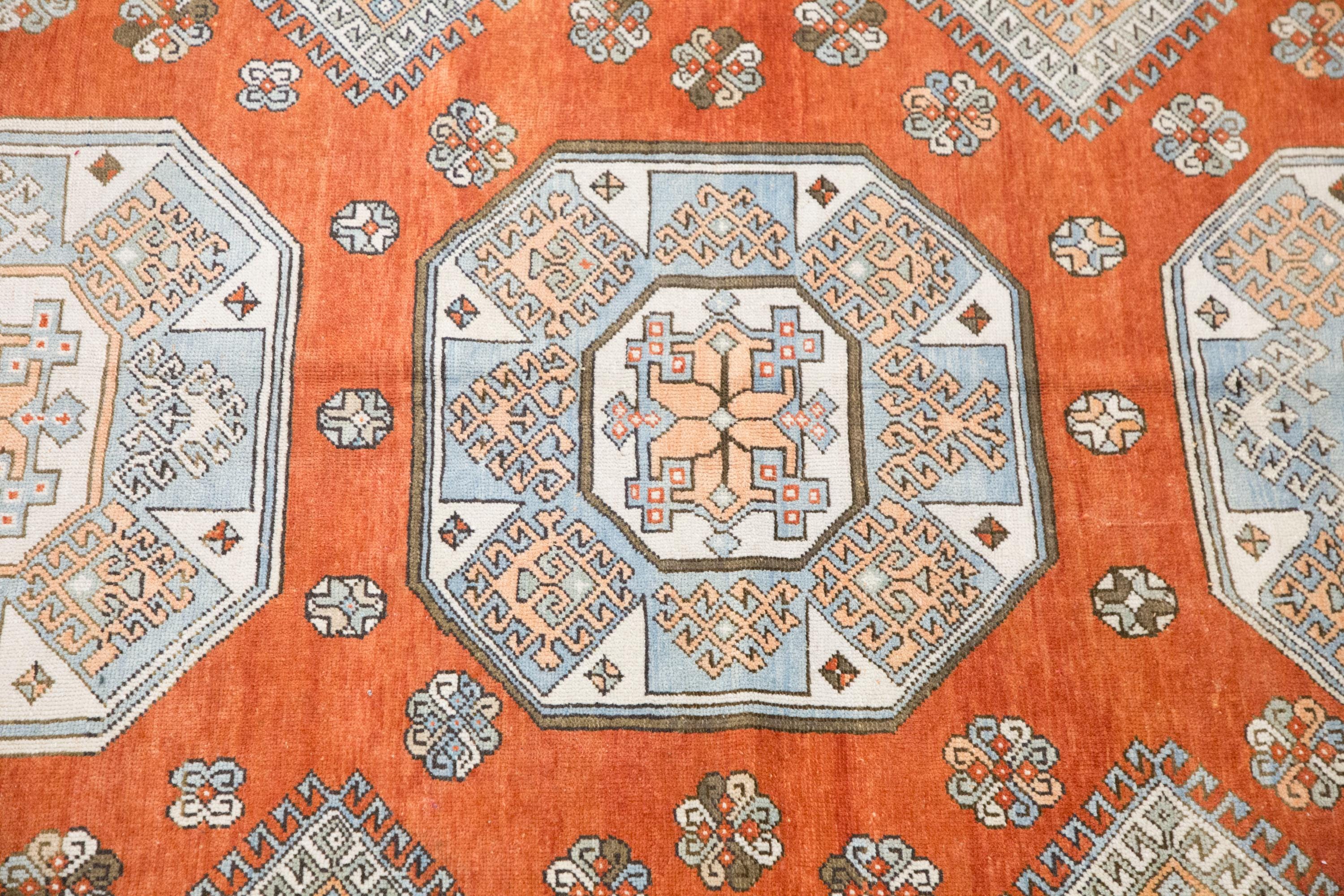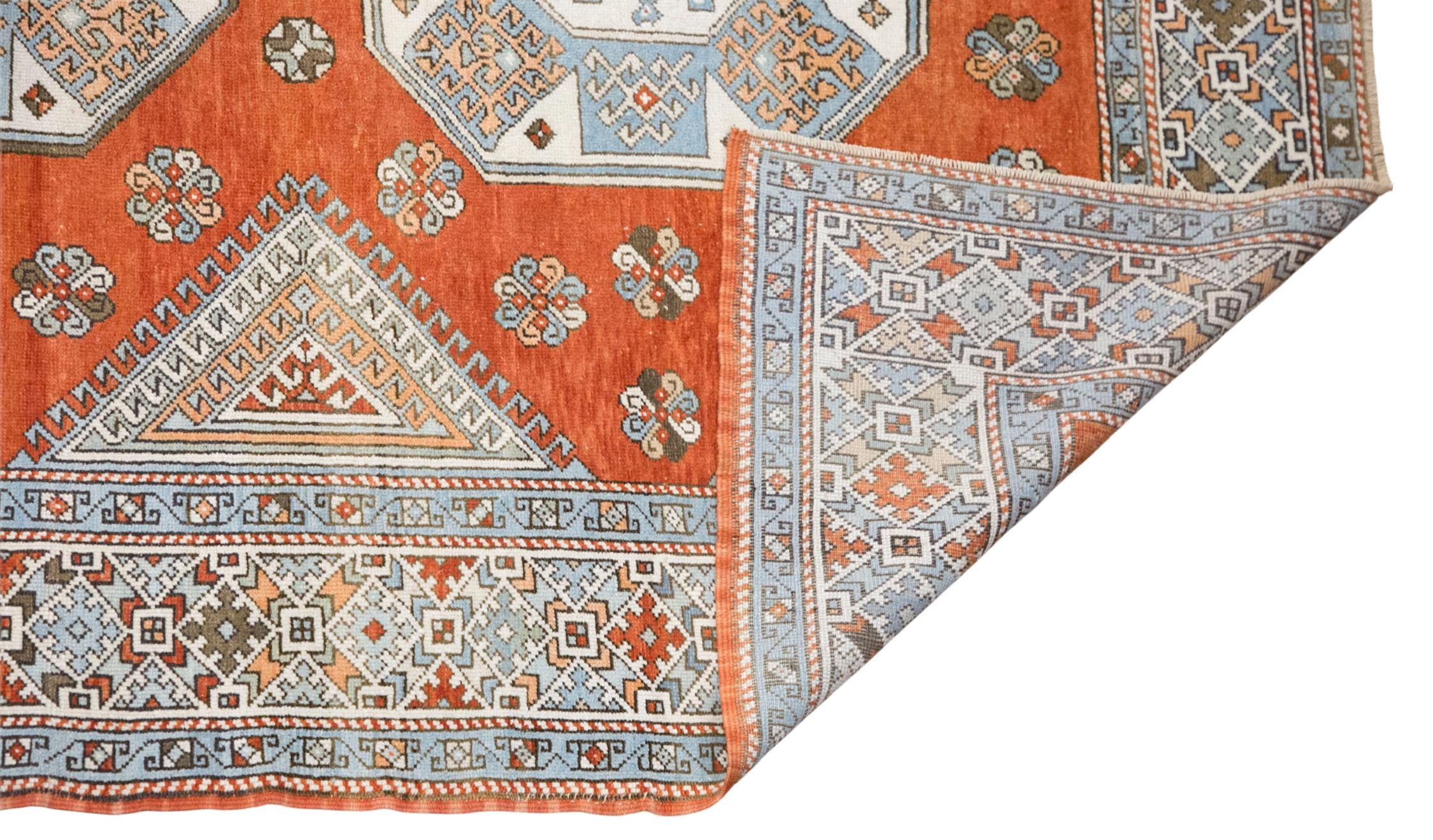 This is an authentic 60+ year old vintage Turkish rug, preserved in very good vintage condition with light, natural age wear consistent with genuine handmade rugs.