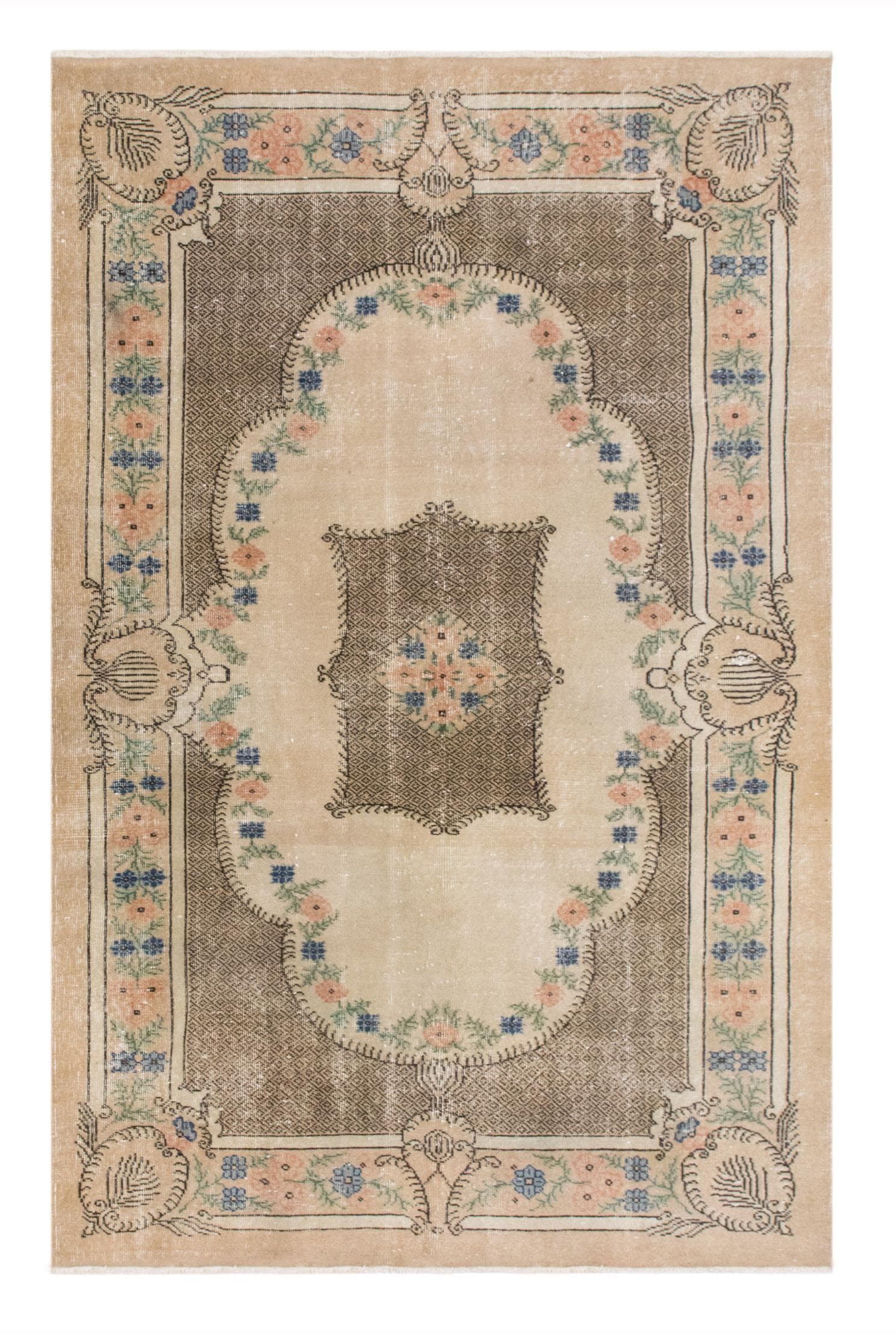 This authentic vintage Turkish Oushak rug is a beautiful 60+ year old handwoven piece, made using traditional Anatolian techniques. Its soft, muted tones and timeless design make it perfect for boho, modern, or classic interiors.