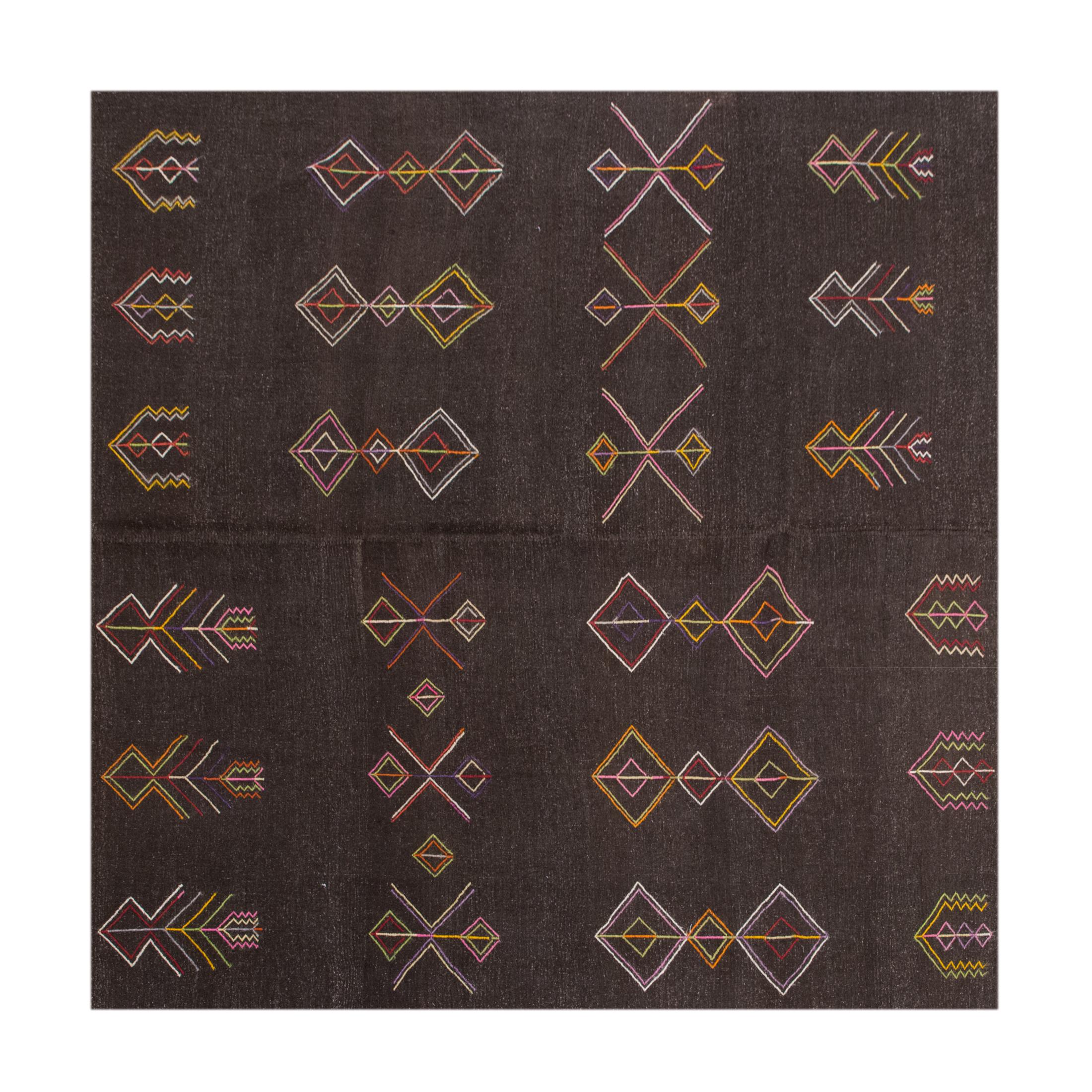 🧿 Minimalist Embroidery Light Kilim Rug – One of a Kind