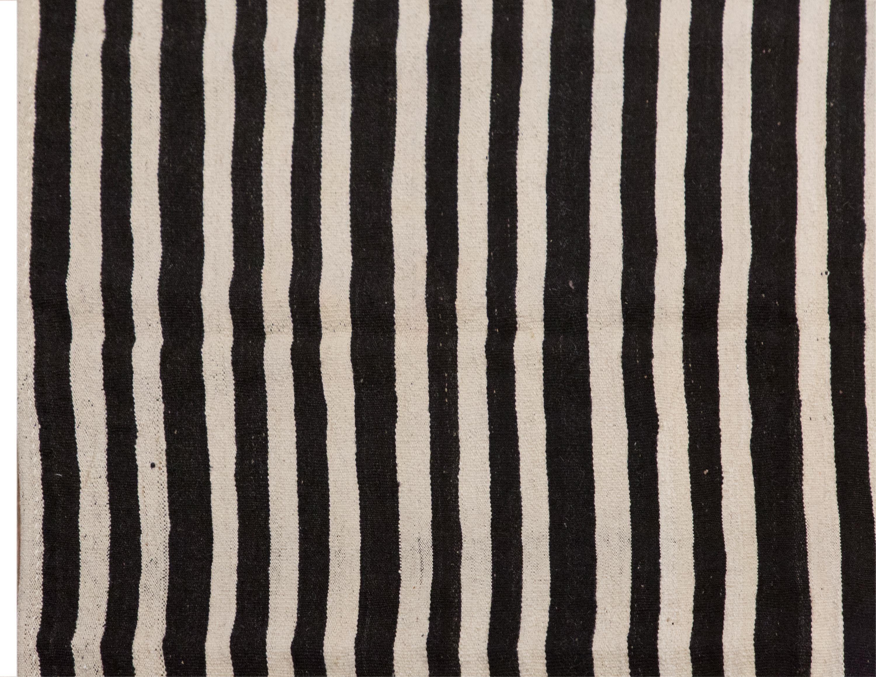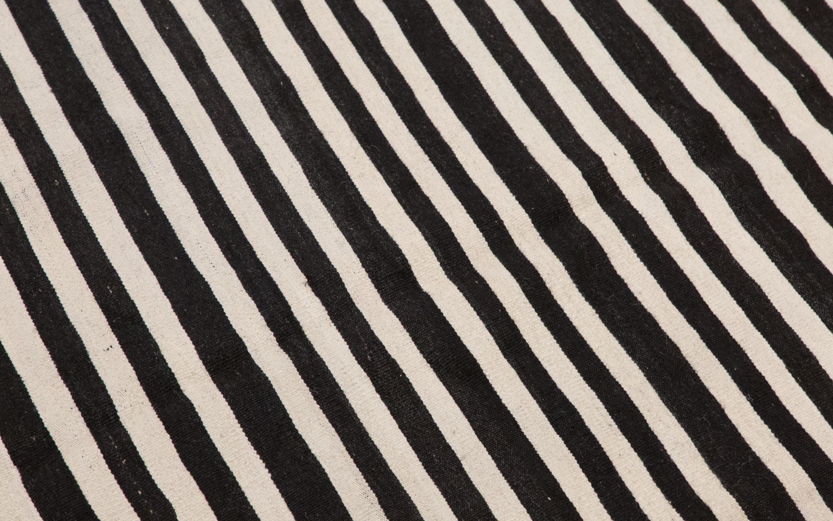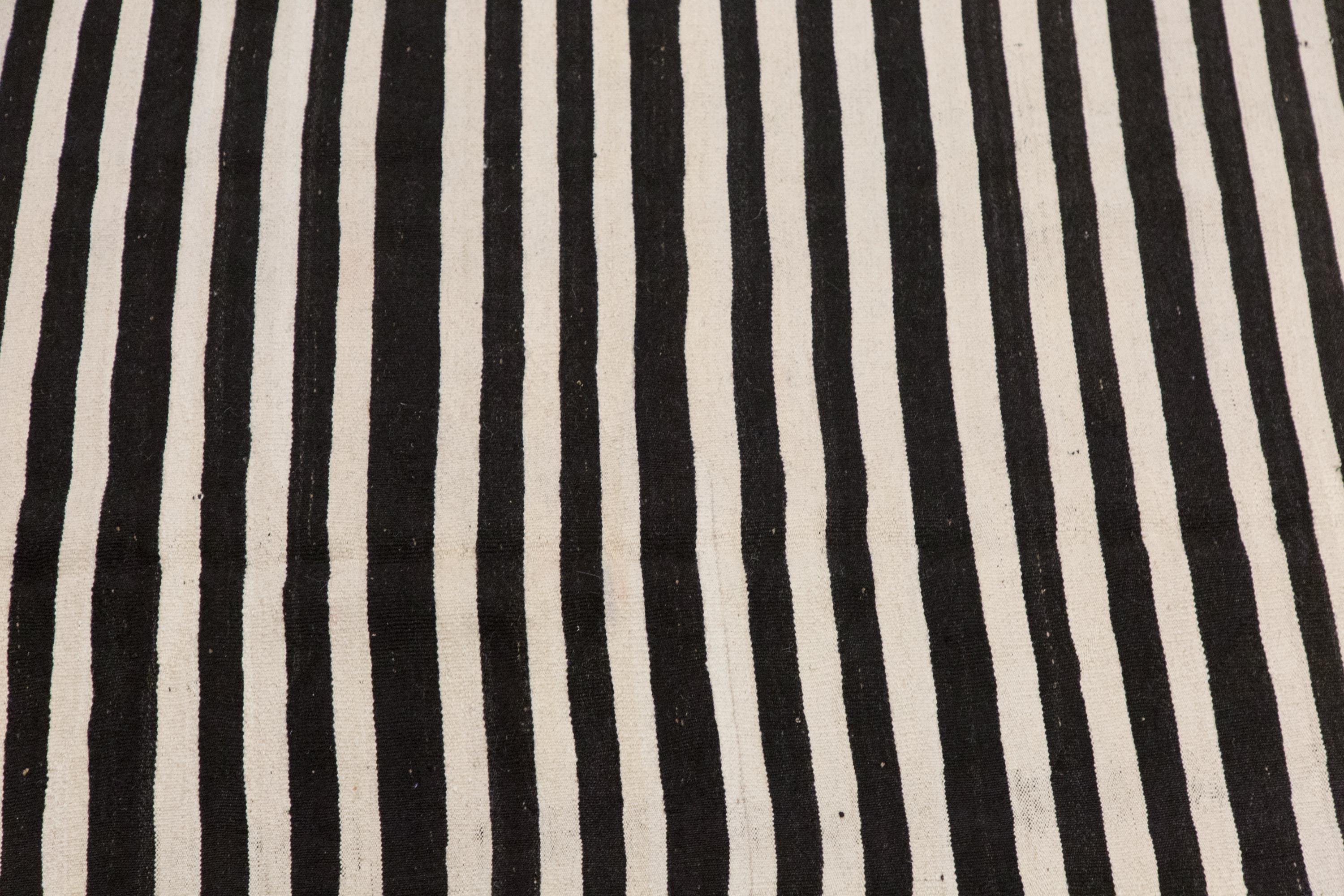 This authentic vintage Turkish Kilim rug is a handwoven piece from the 1960s, crafted with goat hair and naturally dyed using plants. Its minimalist striped design, soft muted tones, and balanced rectangular size make it a great fit for modern, boho, Scandinavian, or traditional interiors. The rug is in excellent condition and ready to use.
